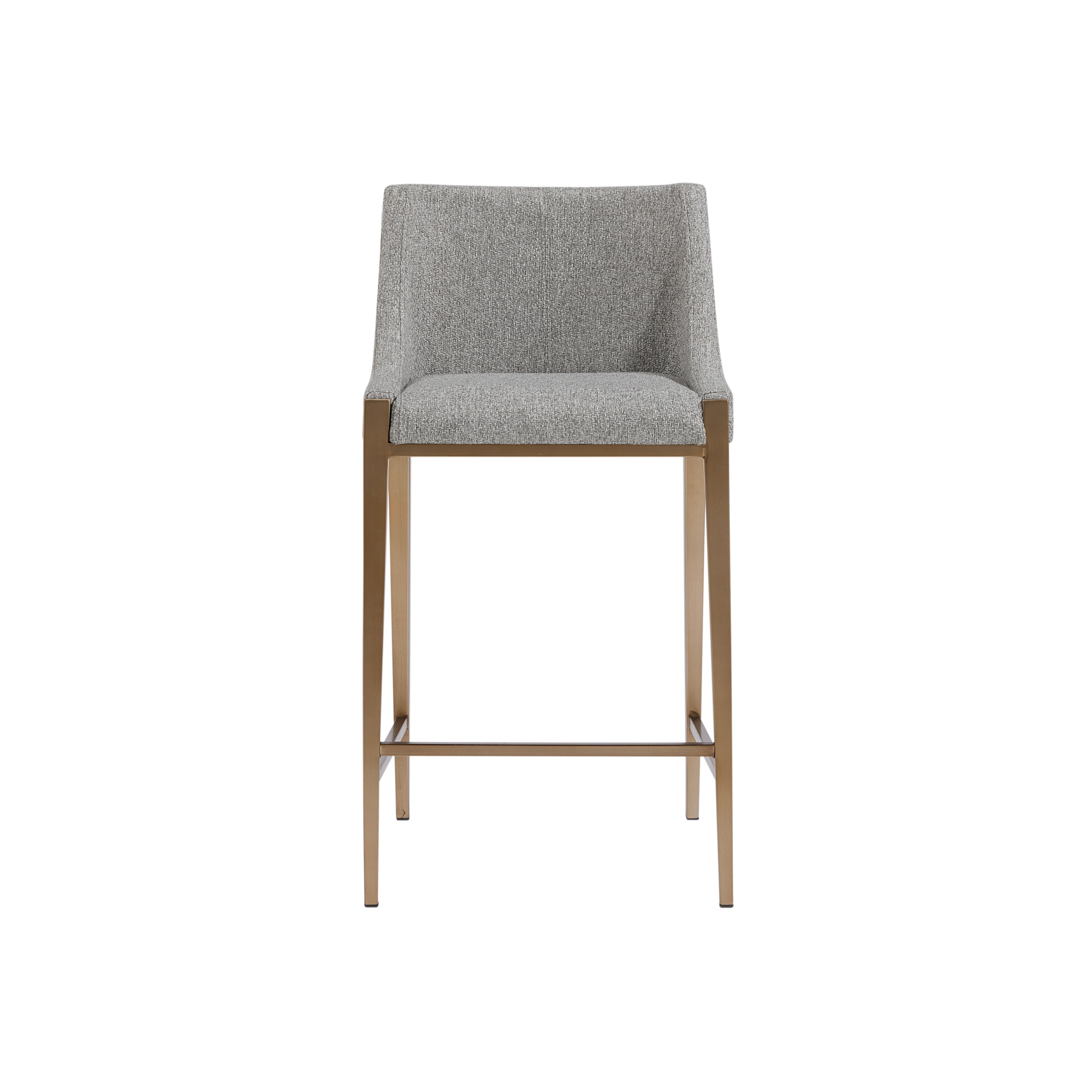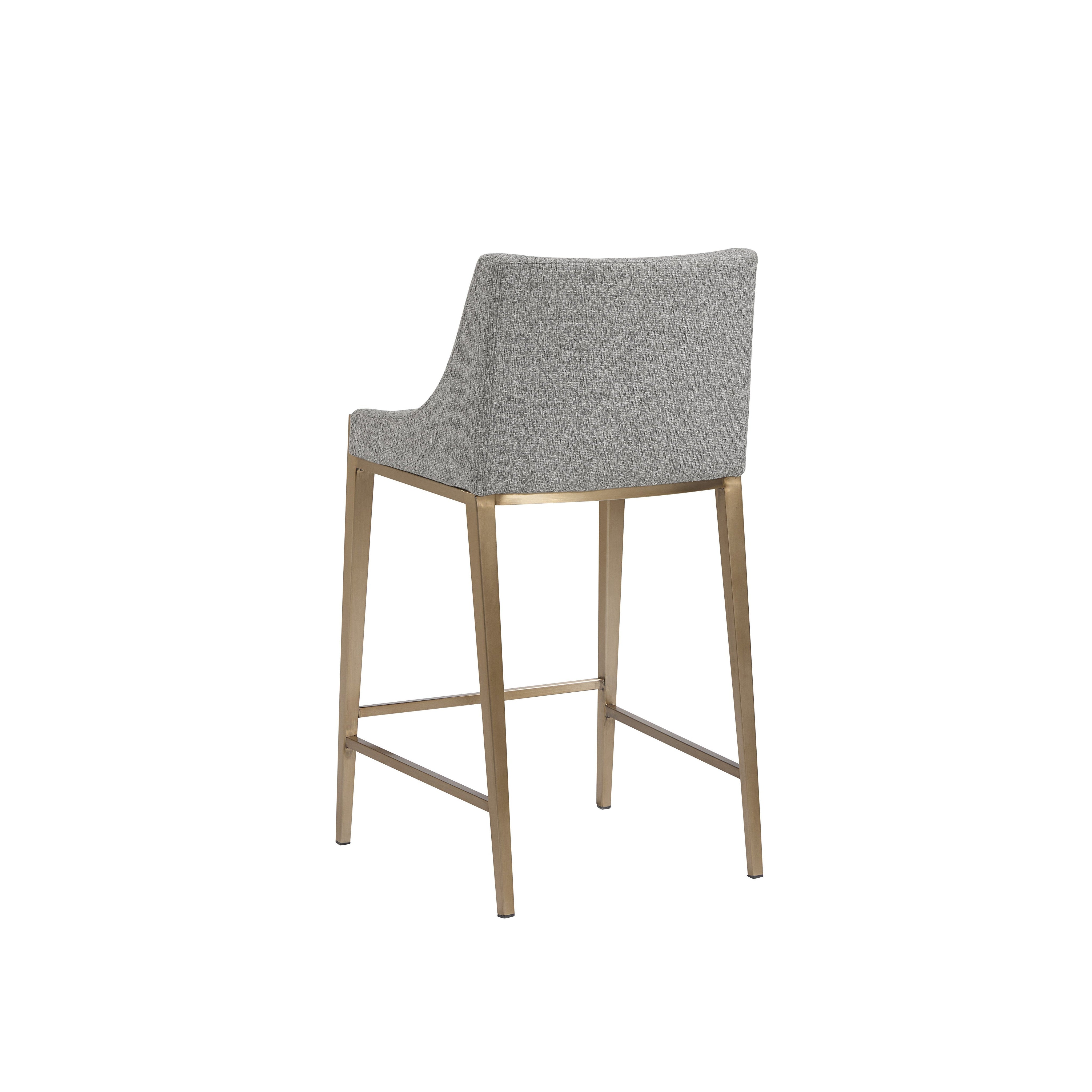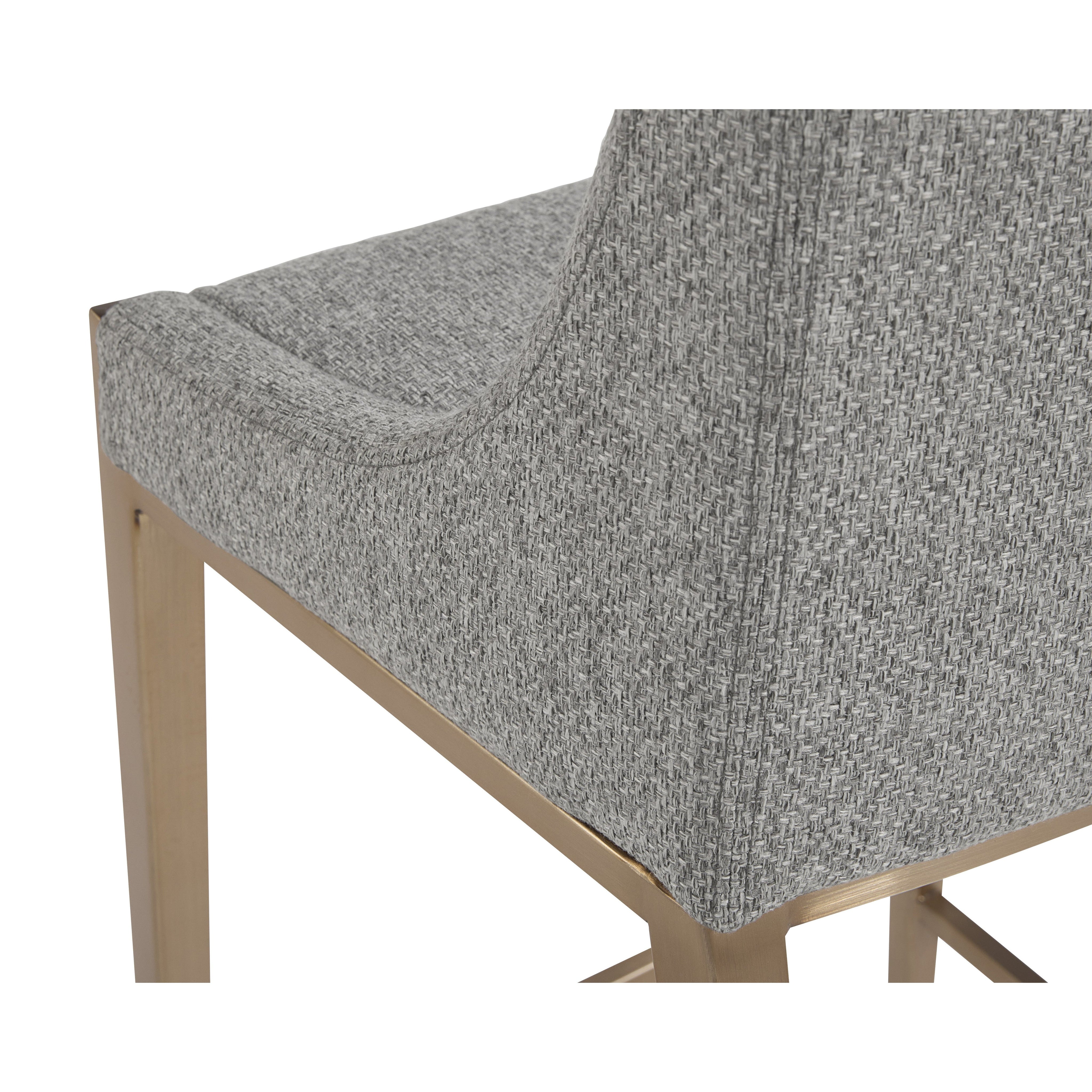 With its clean and modern design, this counter stool is a stunning addition to any dining or kitchen space. Stocked in our textured monument pebble fabric and completed with powder-coated stainless steel legs in an antique brass finish.