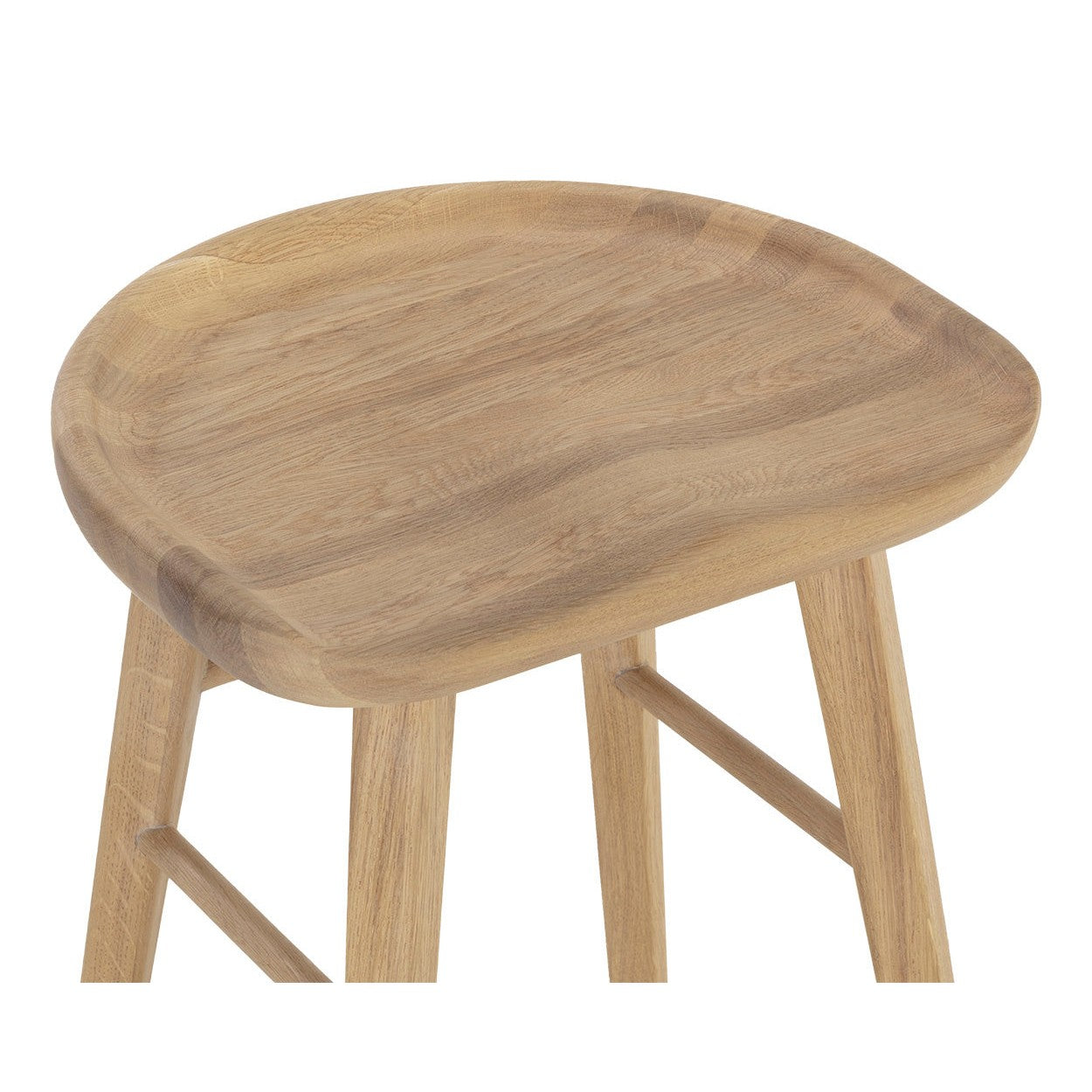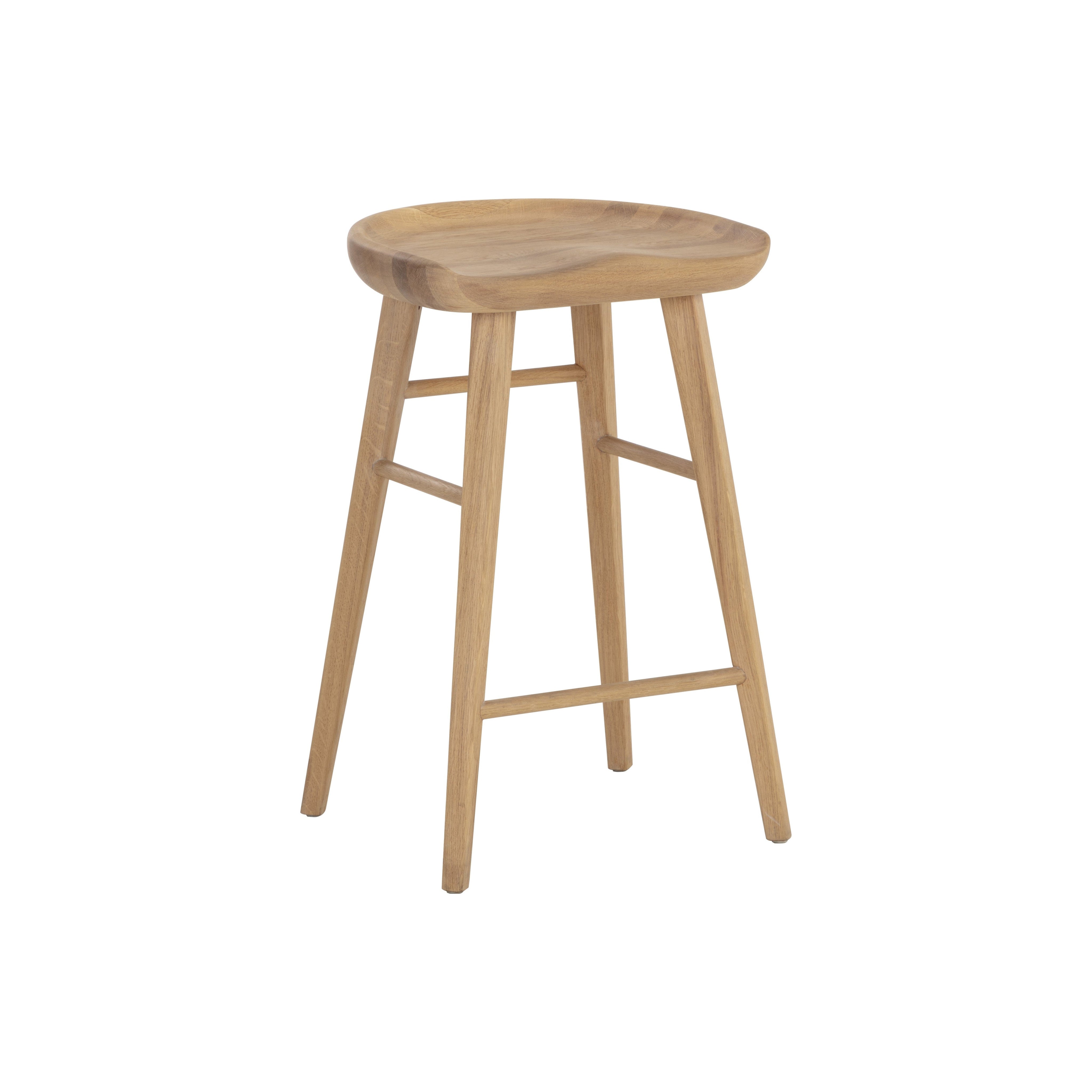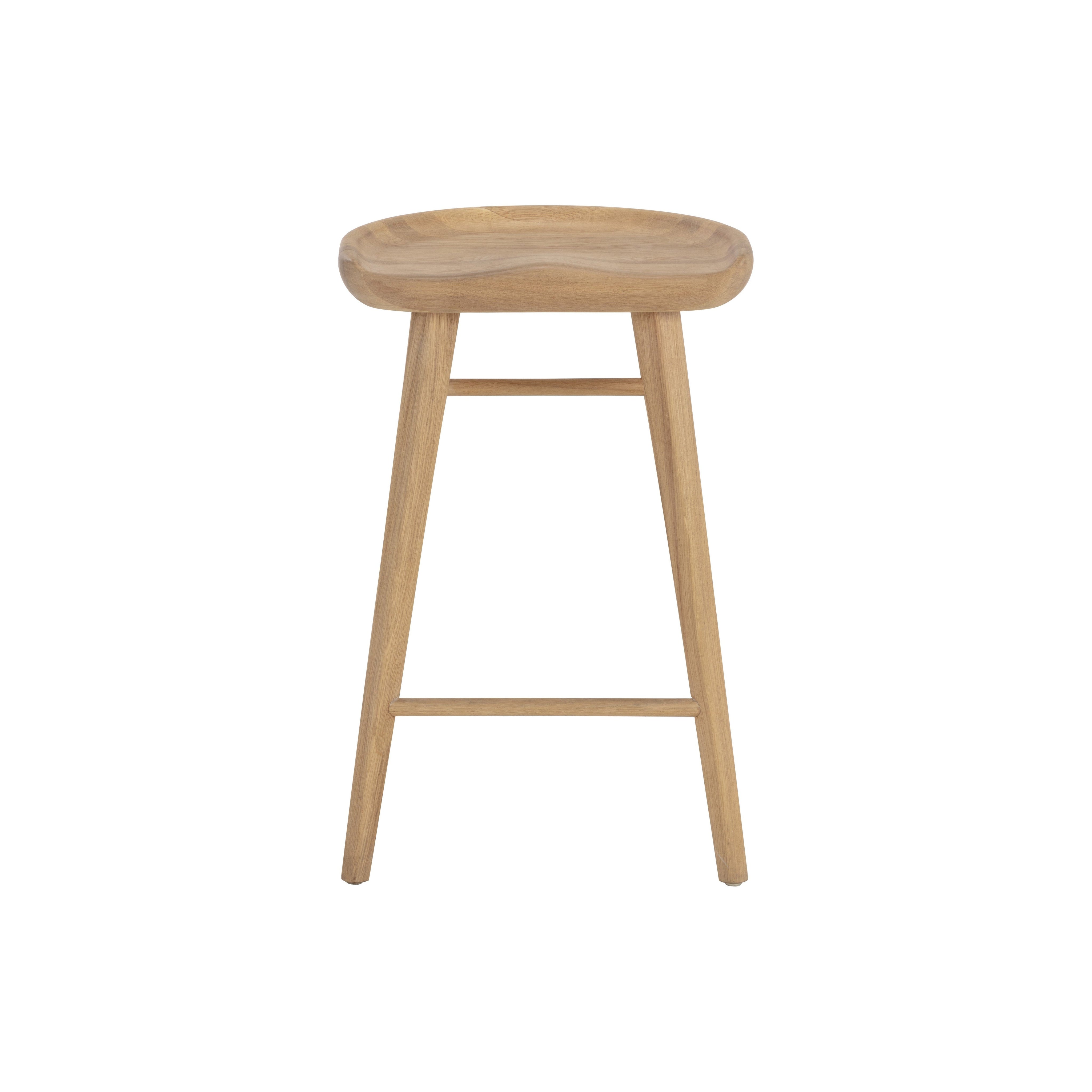 An impressive counter stool crafted from solid oak wood with a white wash finish. The sculpted seat and traditional design will complement transitional, contemporary and modern spaces of any size. As wood is an organic, porous material, these pieces will contain natural variation of texture and may also exhibit fine indentations and cracks. Wood pieces will also display a disparity of colour and grain, and visible knots and burls that add to the character of each piece.
