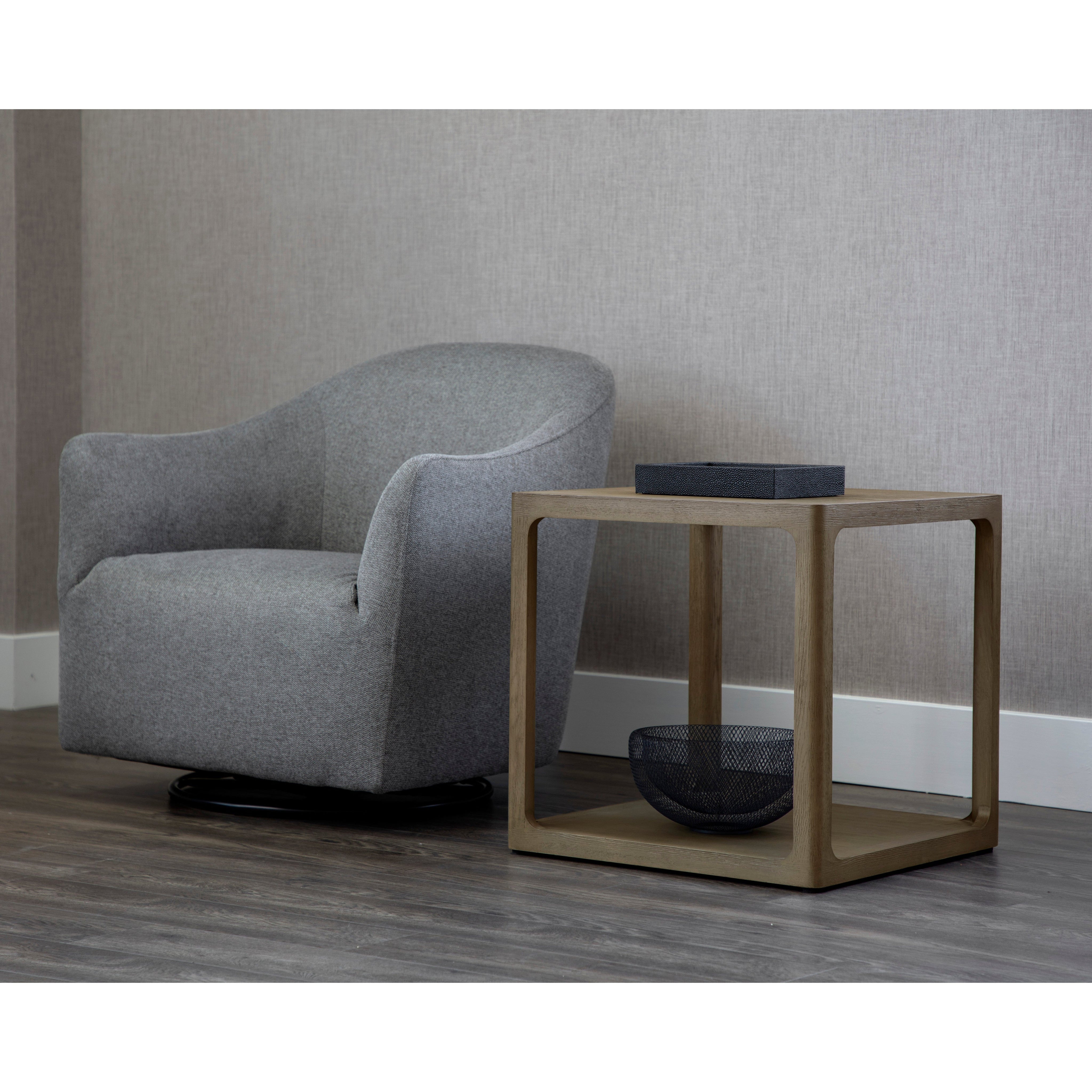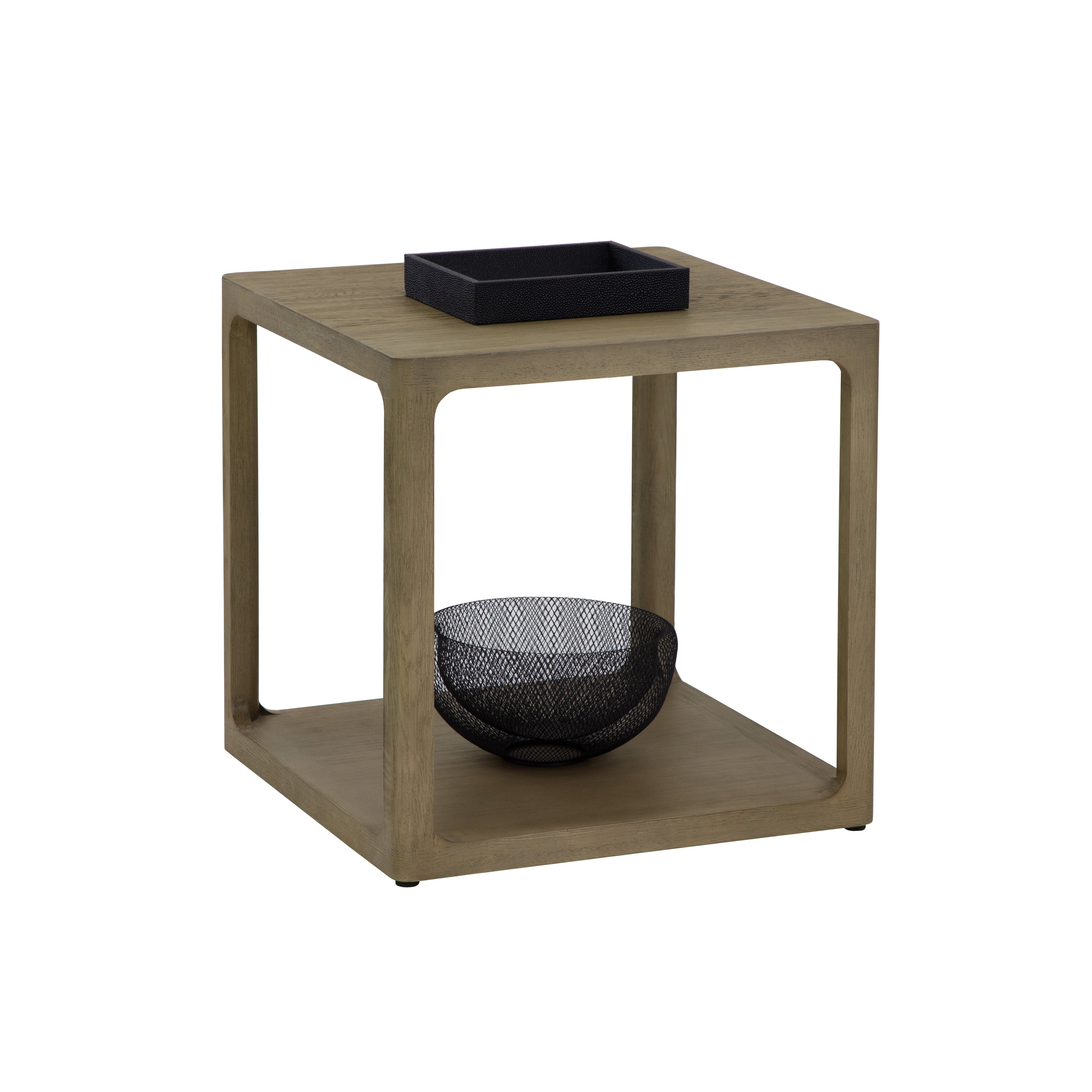 With a clean and modern composition, this side table will add minimalist style into any space. Crafted from a solid oak wood frame with a smoke grey oak veneer. Coordinating coffee and console tables also available. As wood is an organic, porous material, these pieces will contain natural variation of texture and may also exhibit fine indentations and cracks. Wood pieces will also display a disparity of colour and grain, and visible knots and burls that add to the character of each piece.