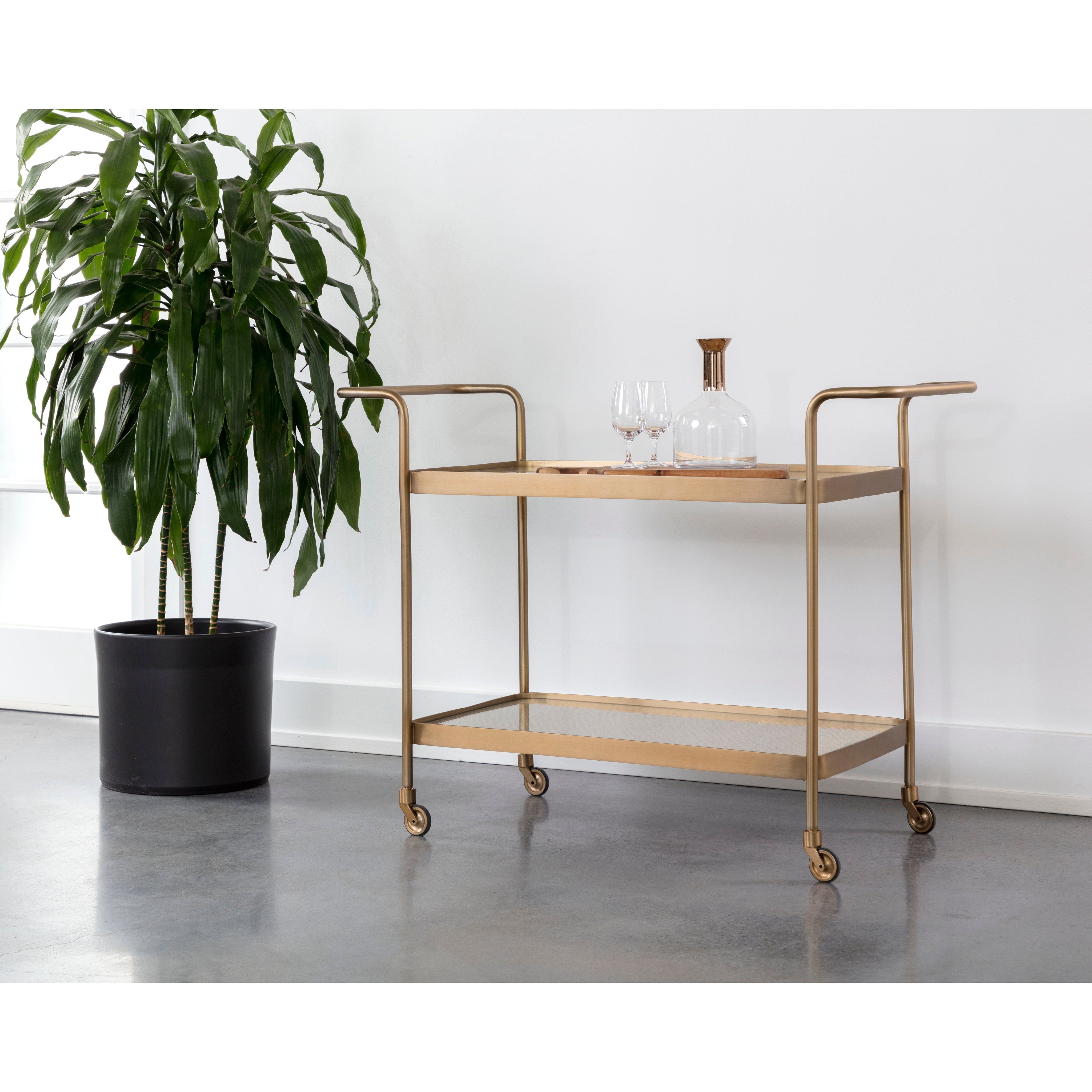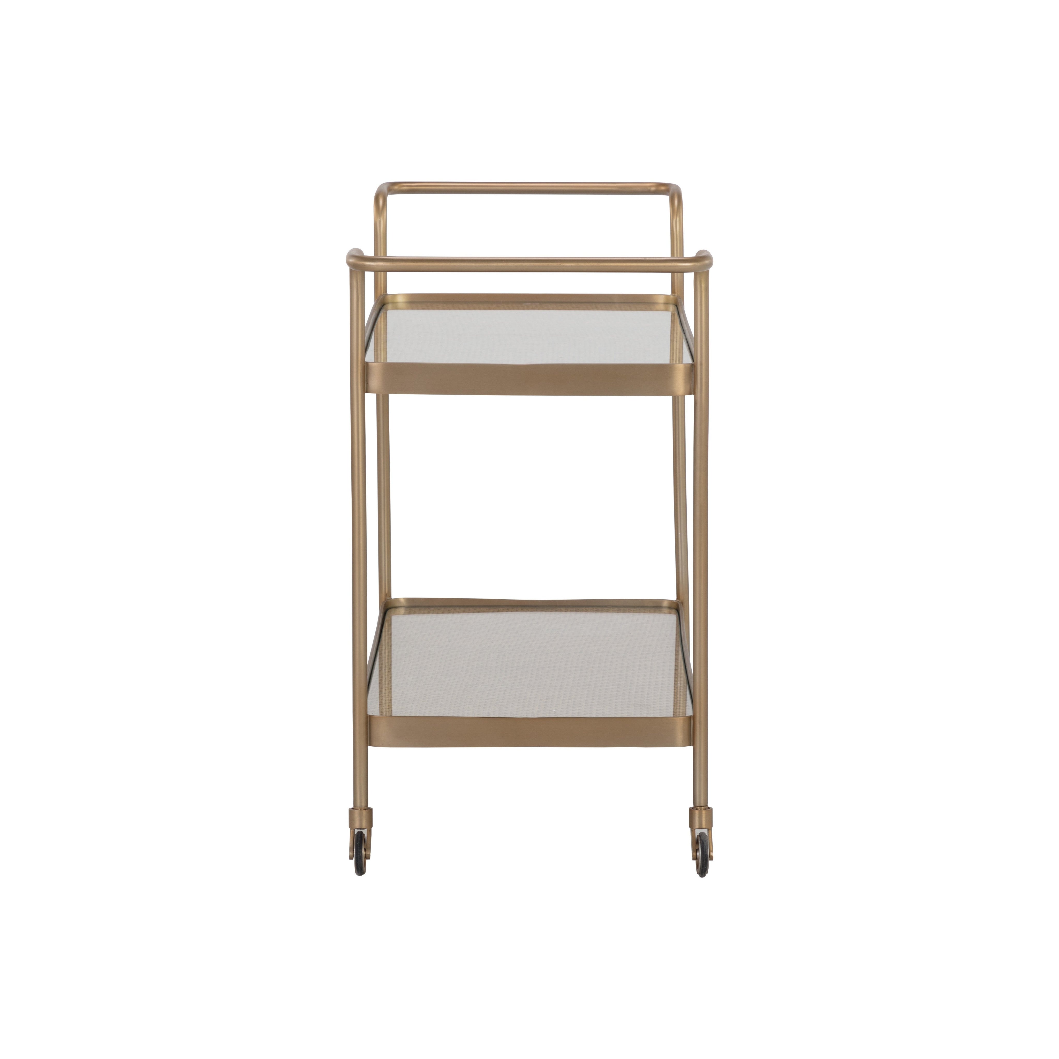 The Durva Bar Cart features a classic silhouette made from mixed materials. Clear tempered glass is placed on top of two natural rattan shelves to give the piece a relaxing coastal feel. Made in India. With refined craftsmanship, this design was brought to life by skilled local artisans. Due to the nature of handcraftsmanship, unique imperfections such as fissures, markings and variations in colour and shape are welcomed and appreciated characteristics for a truly one-of-a-kind piece.