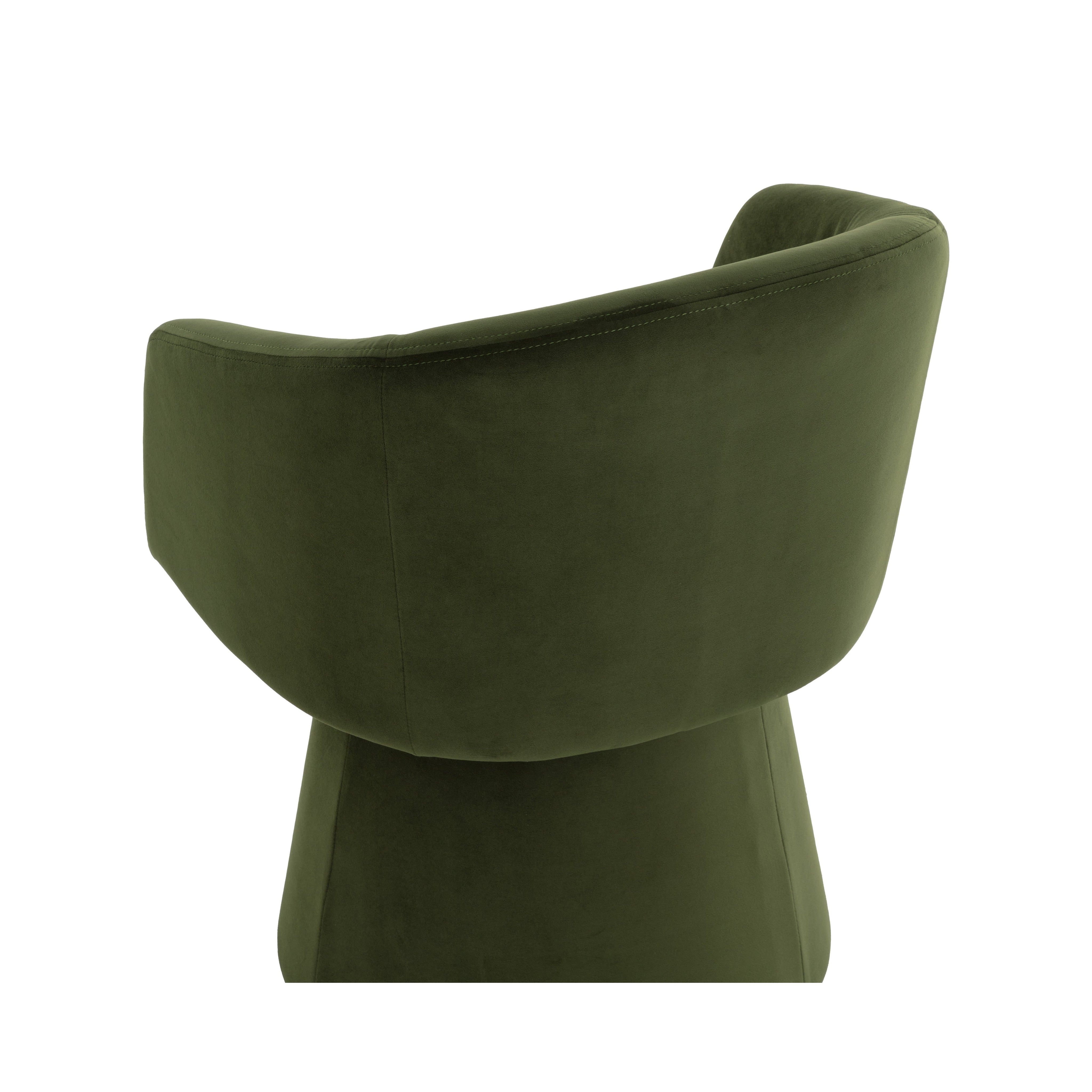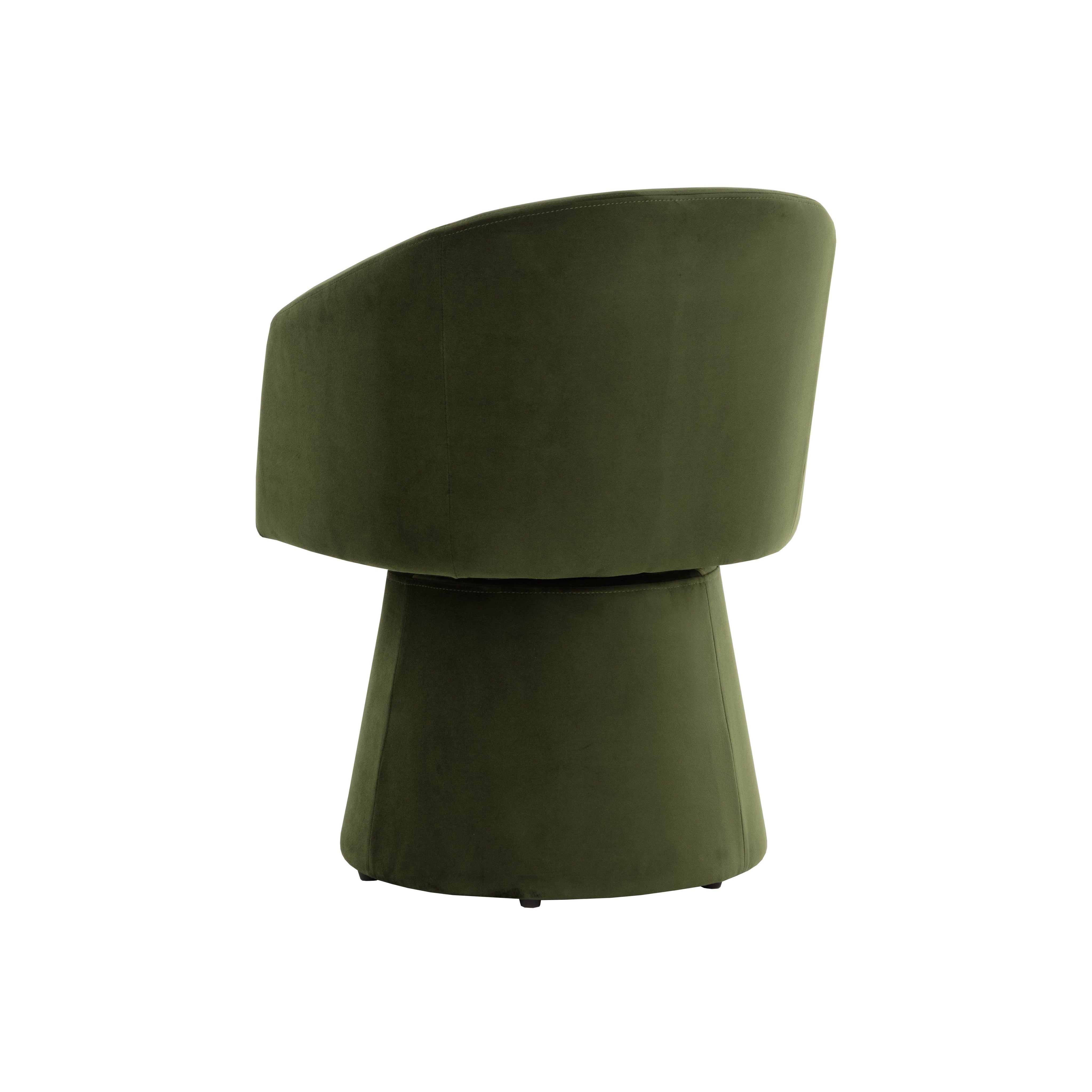 The Etta Swivel Dining Armchair reimagines modern style as thoughtful simplicity in action. Fully upholstered in moss green fabric and with a 360-degree swivel, this dining armchair makes the easy extraordinary.