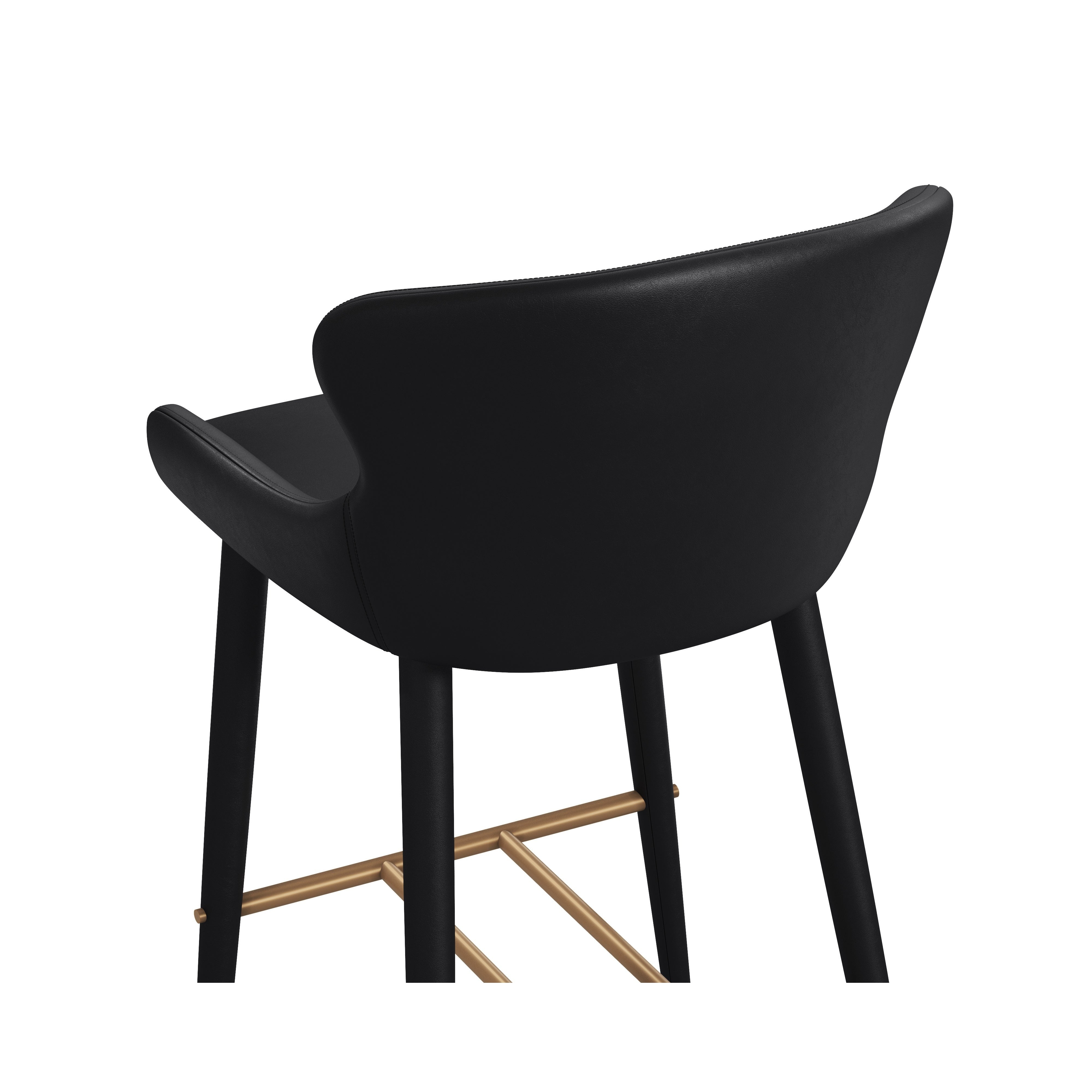 A gorgeous barstool that features a sleek and minimal profile. Stylishly designed with tone-on-tone colours, this chair is stocked in bravo black faux leather and completed with metal upholstered legs.