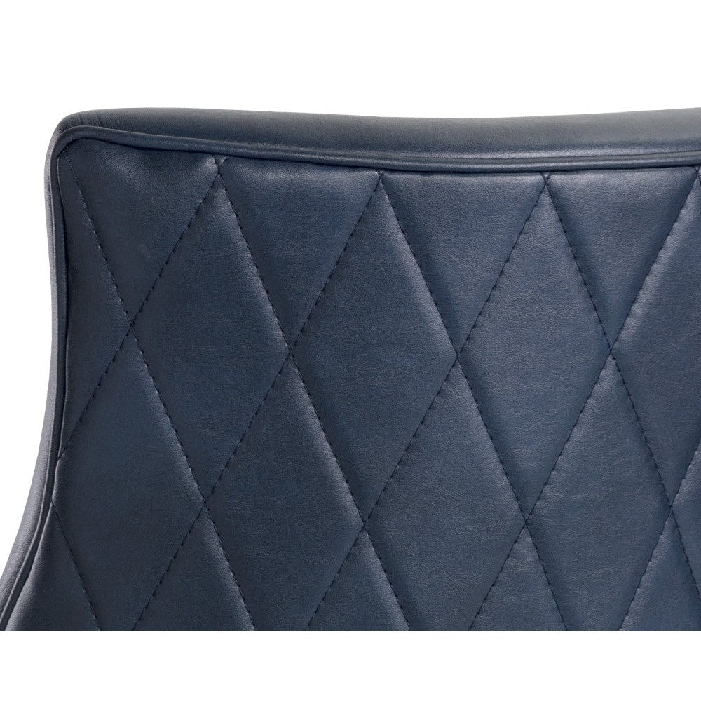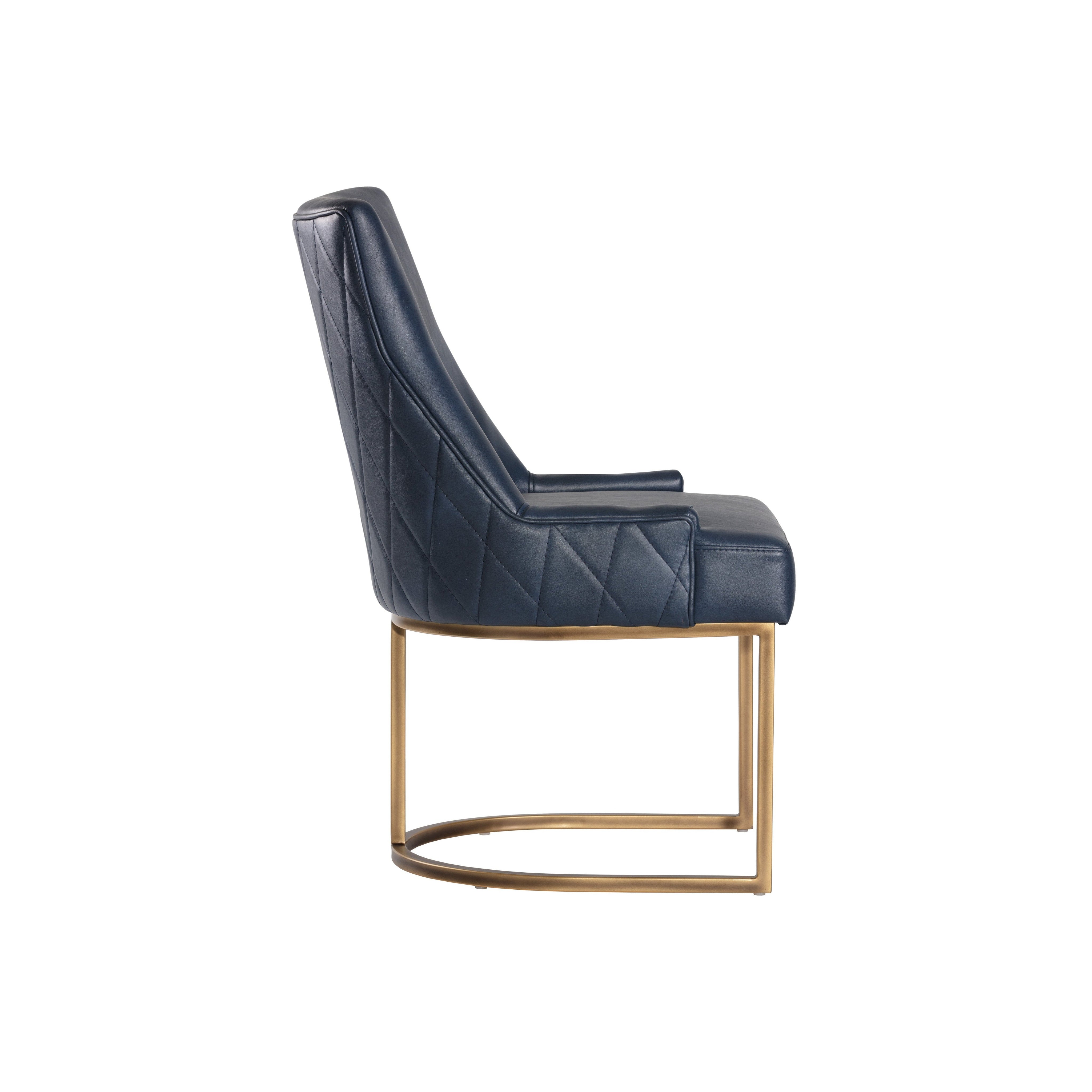 This dining chair offers transitional elegance. Features a beautifully sculpted seat in our bravo admiral faux leather with a rustic bronze cantilever frame. A diamond stitched pattern on the exterior seatback adds a touch of beauty to complete the look.