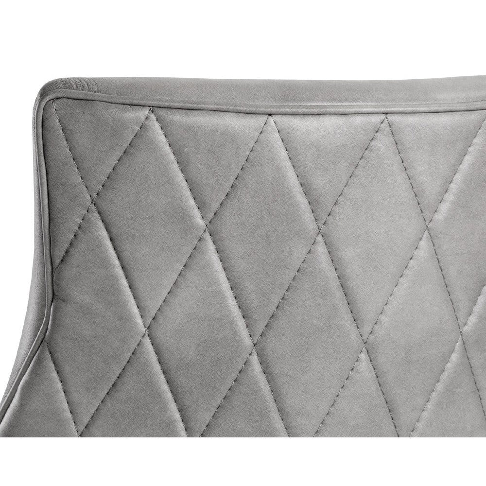 This dining chair offers transitional elegance. Features a beautifully sculpted seat in our bravo metal faux leather with a rustic bronze cantilever frame. A diamond stitched pattern on the exterior seatback adds a touch of beauty to complete the look.