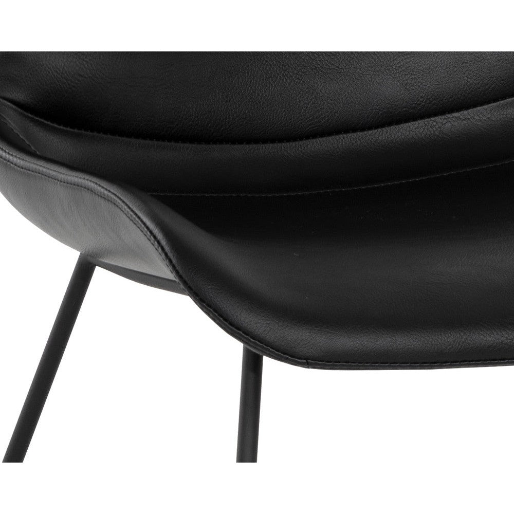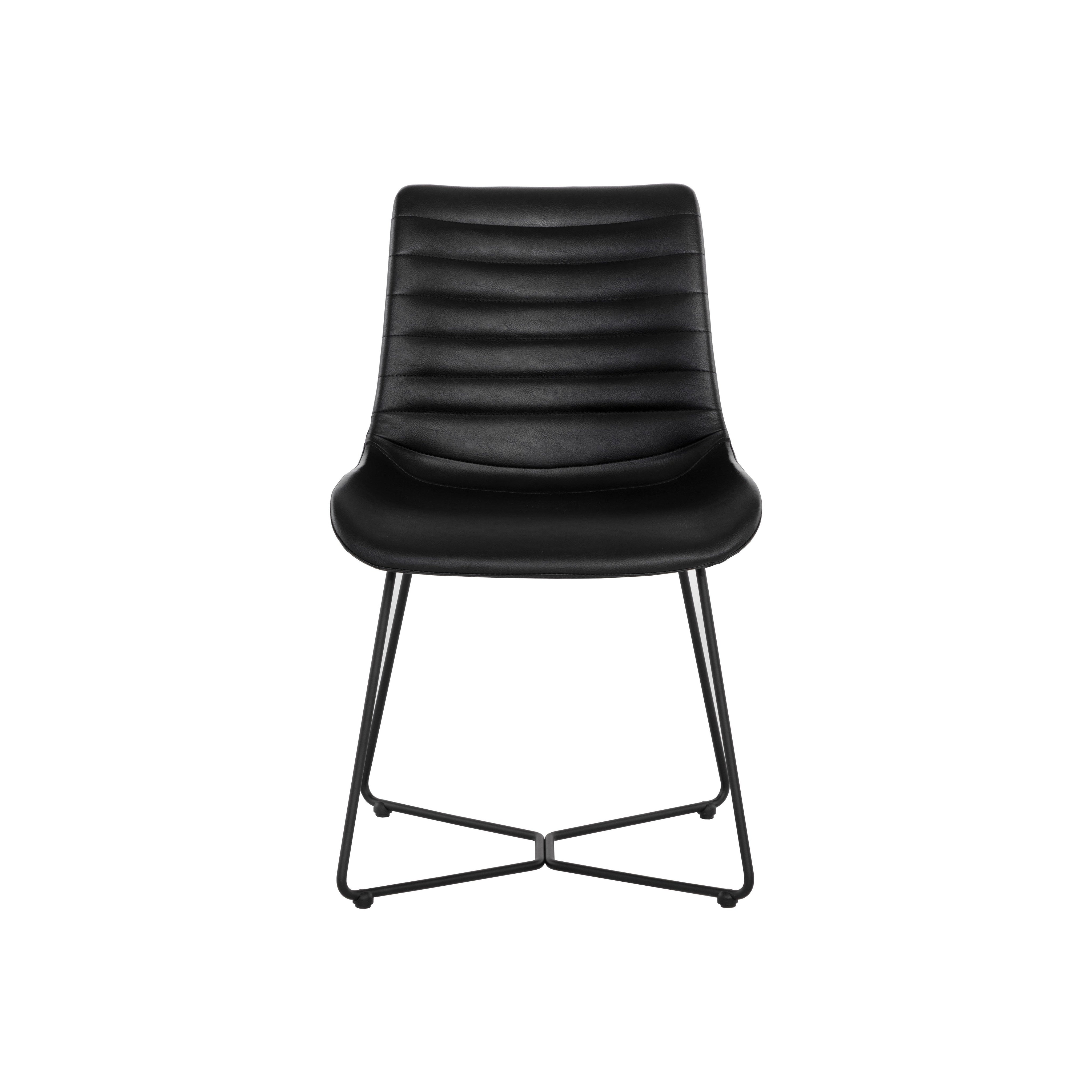 With an understated design, this minimalist dining chair demonstrates the beauty of simplicity. Stocked in nightfall black faux leather and completed with powder-coated metal legs in a matte black finish. Handle With Care: This design has been crafted with faux leather. Faux leather is manufactured to reflect the natural characteristics of leather; as such, colour variations, markings wrinkles, grooves, and light scratches are appreciated characteristics. No two pieces will be alike. Visit our Product Care page for more information on how to ensure the lasting beauty of this piece.