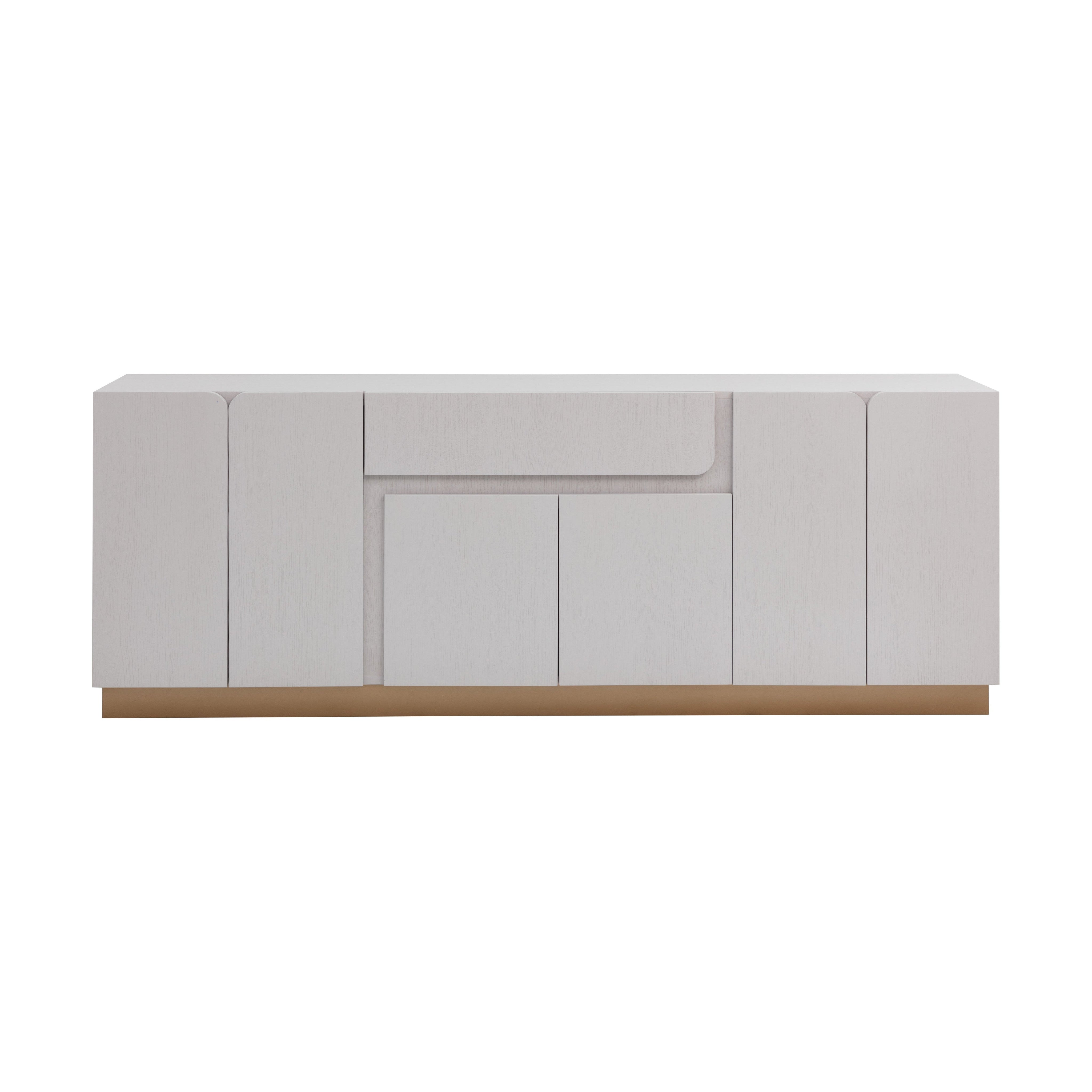 A refreshing take on Scandinavian design, this sideboard is a great addition to any dining or living space. Features a coveted light wash oak wood frame with visible graining and complementing straight and curved edge cabinet fronts. As wood is an organic, porous material, these pieces will contain natural variation of texture and may also exhibit fine indentations and cracks. Wood pieces will also display a disparity of colour and grain, and visible knots and burls that add to the character of each piece.