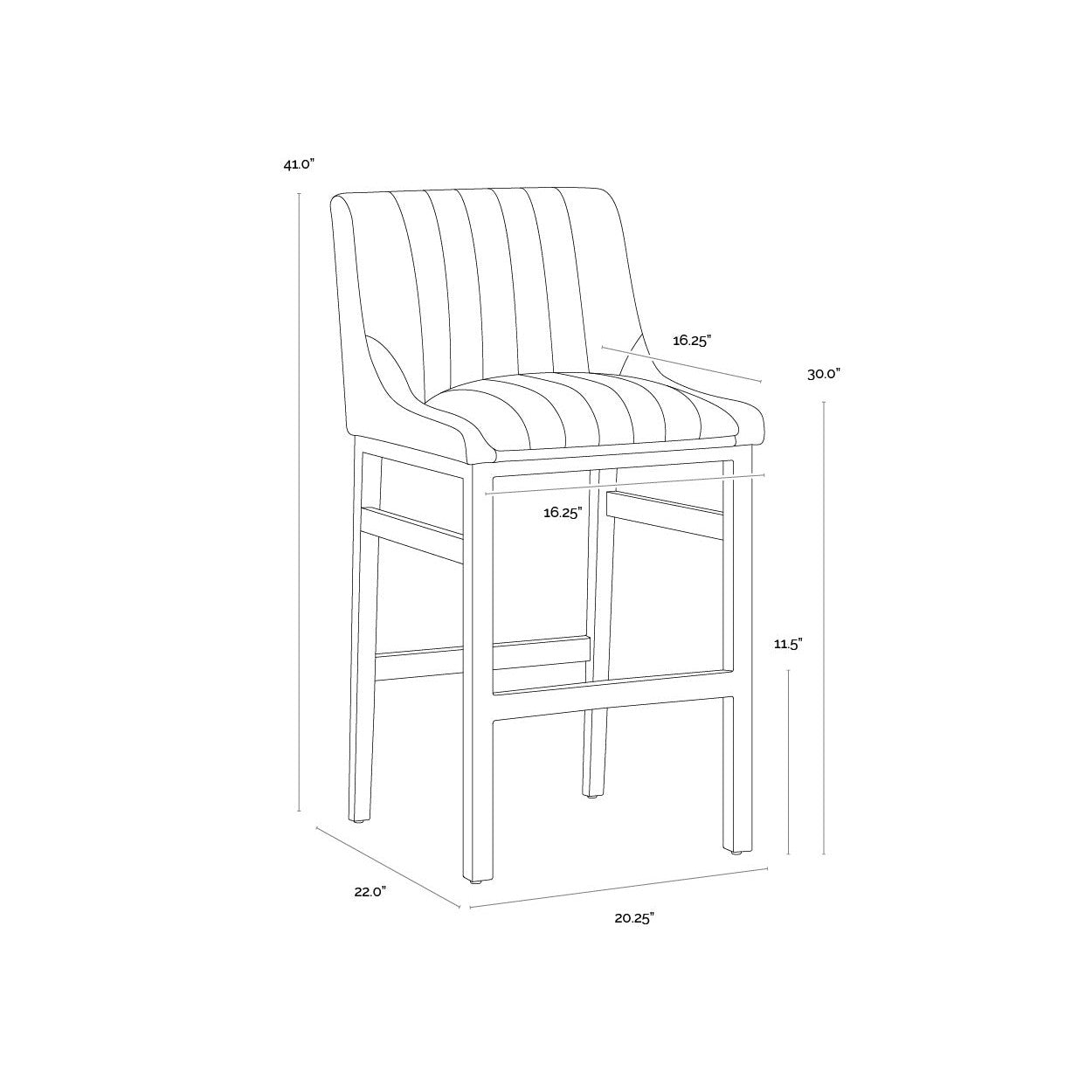 An urban designed stool featuring bold vertical channel tufting on the seat and back in bravo admiral faux leather. Finished with a rustic bronze steel frame and stretchers. Great for residential and commercial placements. Suitable for various dining, kitchen and bar spaces of all sizes. Handle With Care: This design has been crafted with faux leather. Faux leather is manufactured to reflect the natural characteristics of leather; as such, colour variations, markings, wrinkles, grooves, and light scratches are appreciated characteristics. No two pieces will be alike. Visit our Product Care page for more information on how to ensure the lasting beauty of this piece.