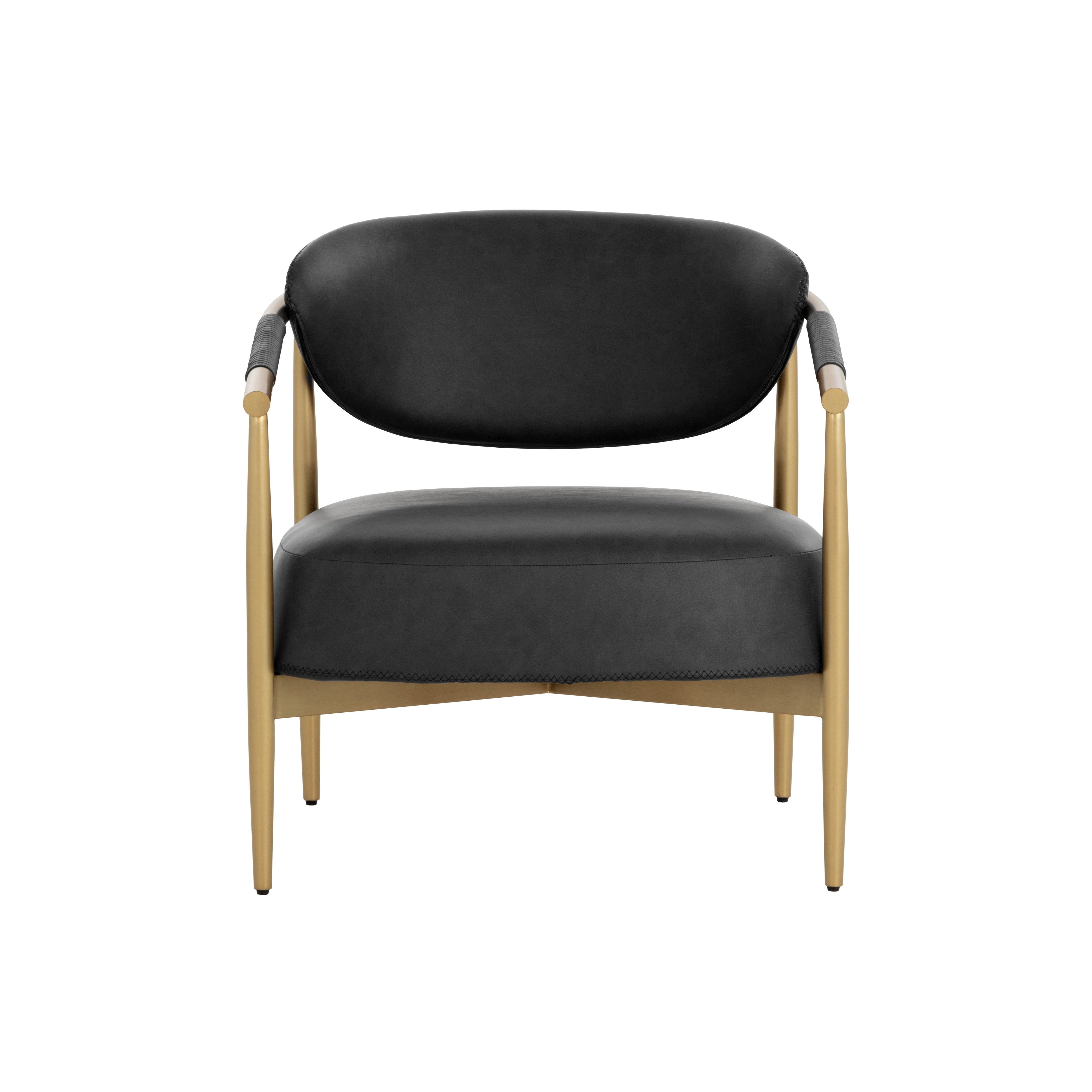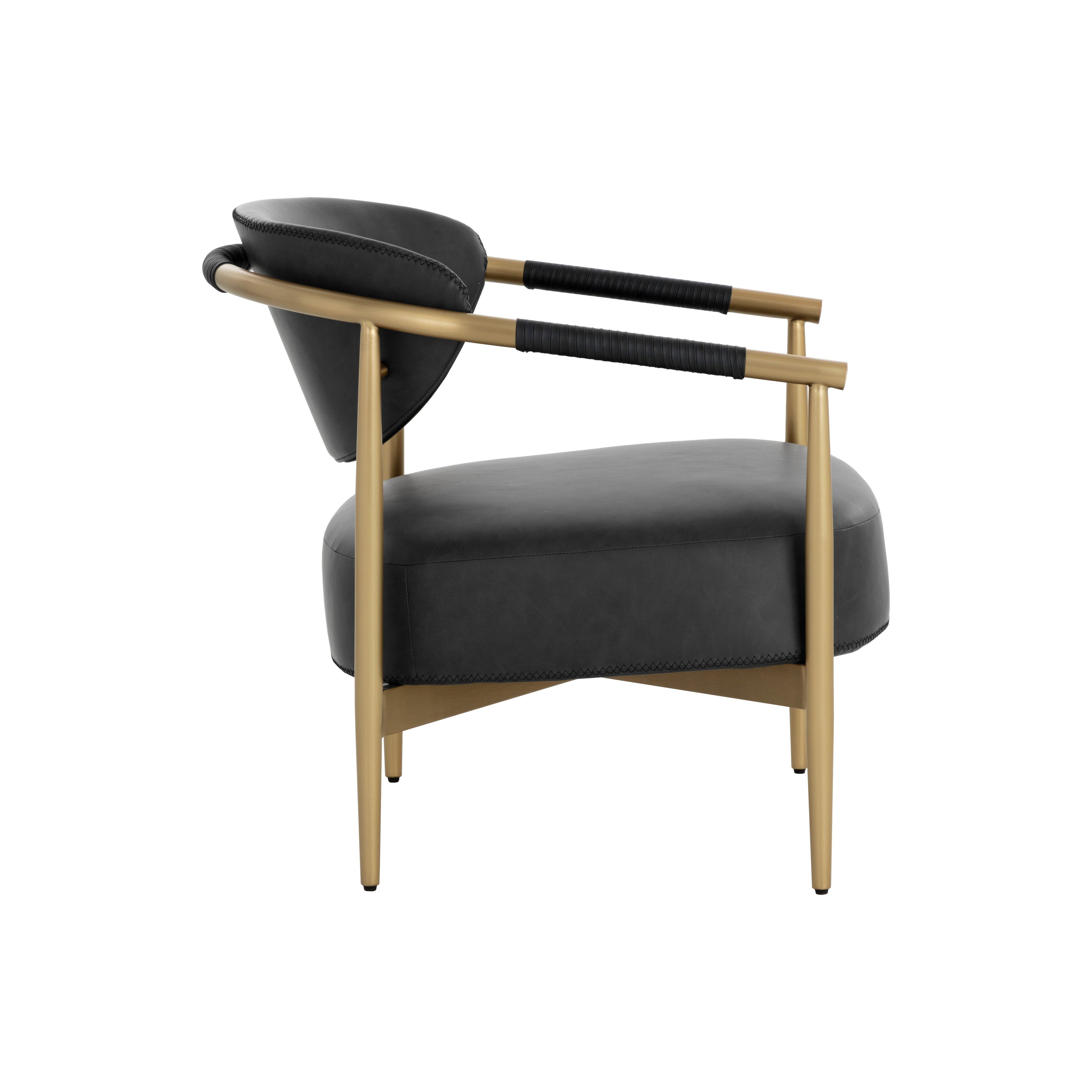 Every detail that makes up the handsome Heloise Lounge Chair is designed with purpose. Bravo black faux leather upholstery and rope detailing is paired with powder-coated gold stainless steel for optimal style and comfort. Visible stitching on the seat and backrest accentuates the chair's smooth contours. This versatile lounge chair is the perfect accent to any bedroom corner or living space. Handle With Care: This design has been crafted with faux leather. Faux leather is manufactured to reflect the natural characteristics of leather; as such, colour variations, markings, wrinkles, grooves, and light scratches are appreciated characteristics. No two pieces will be alike. Visit our Product Care page for more information on how to ensure the lasting beauty of this piece.
