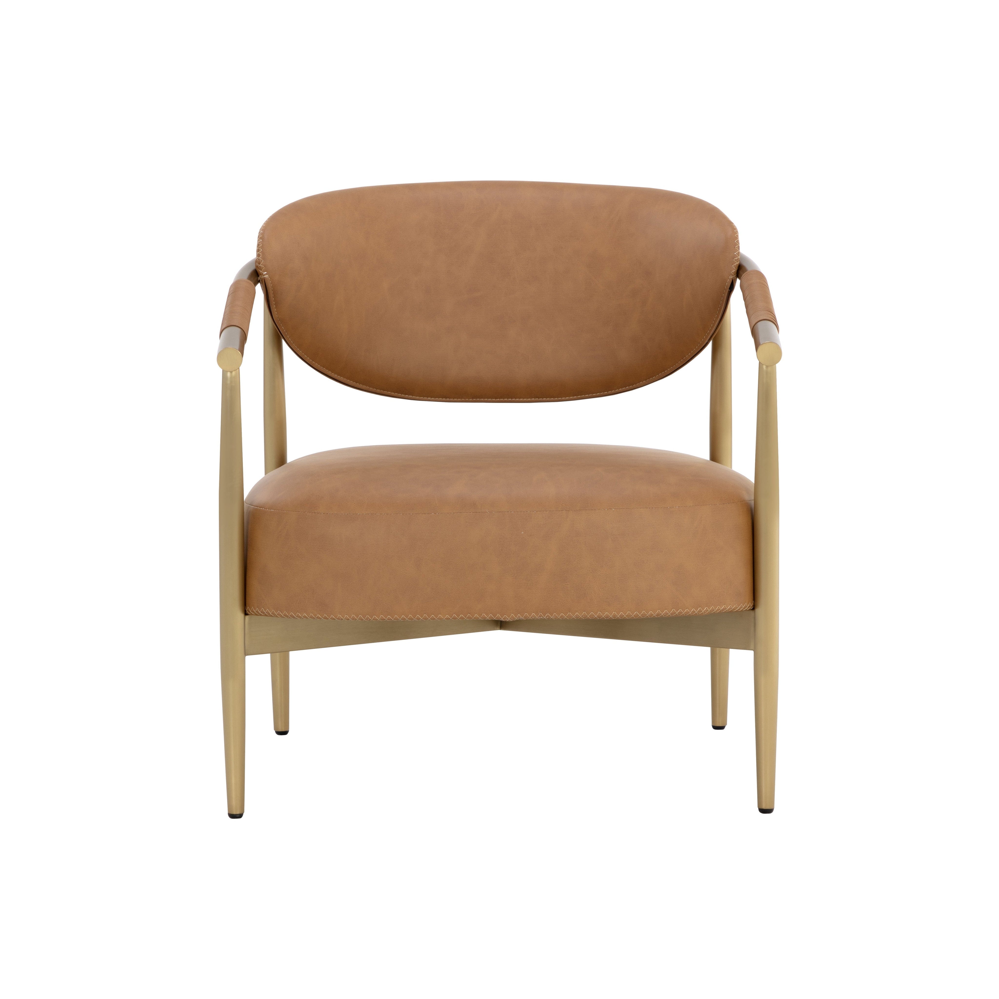 Every detail that makes up the handsome Heloise Lounge Chair is designed with purpose. Milliken cognac faux leather upholstery and rope detailing is paired with powder-coated gold stainless steel for optimal style and comfort. Visible stitching on the seat and backrest accentuates the chair's smooth contours. This versatile lounge chair is the perfect accent to any bedroom corner or living space. Handle With Care: This design has been crafted with faux leather. Faux leather is manufactured to reflect the natural characteristics of leather; as such, colour variations, markings, wrinkles, grooves, and light scratches are appreciated characteristics. No two pieces will be alike. Visit our Product Care page for more information on how to ensure the lasting beauty of this piece.