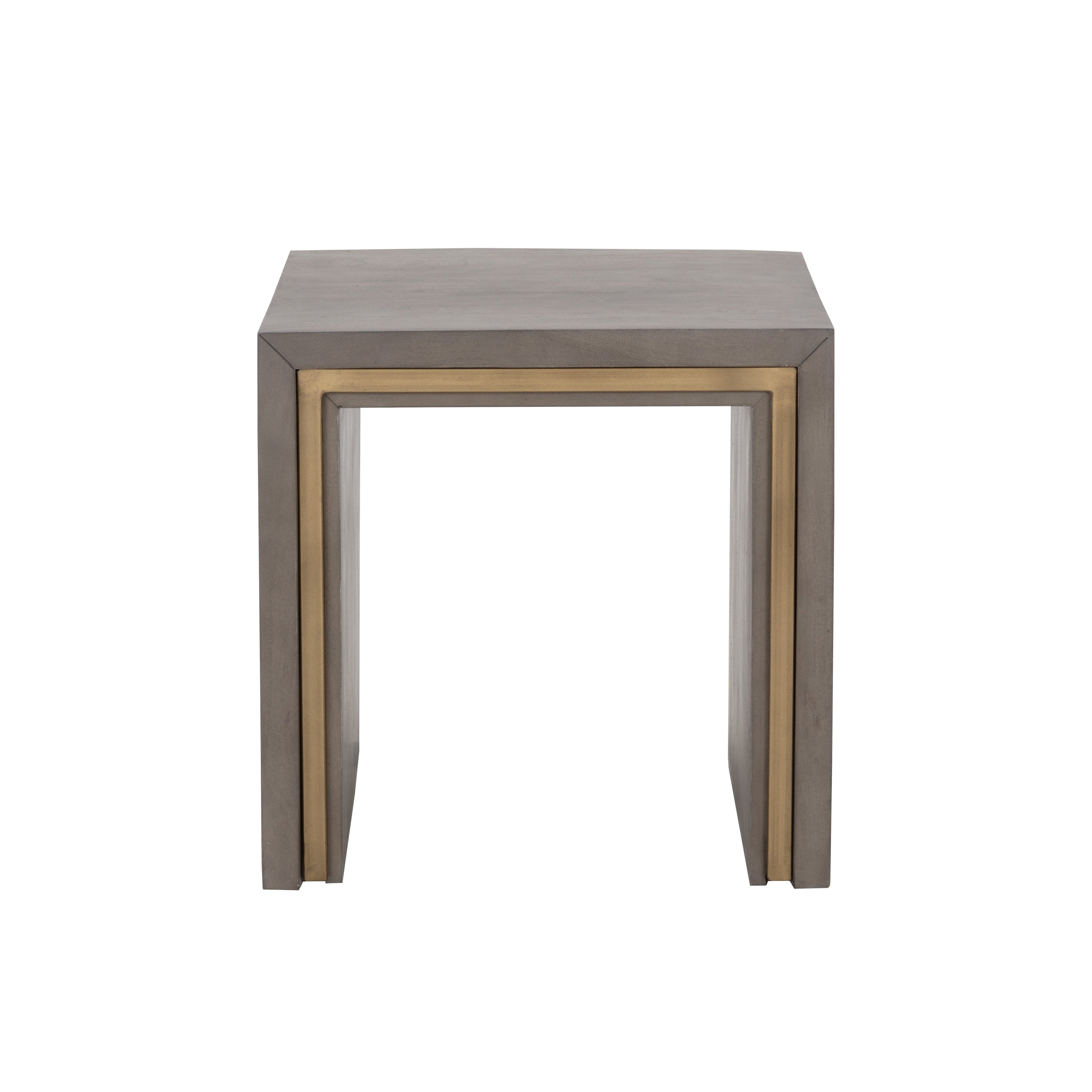 The Hilbert End Table is grounded in a functional modern design. Crafted from grey acacia wood, this console table features a sharp linear silhouette. A brass iron trim on the front and the back of the piece provides added dimension and intrigue to the overall look. As wood is an organic, porous material, these pieces will contain natural variations of texture and may also exhibit fine indentations and cracks. Wood pieces will also display a disparity of colour and grain, and visible knots and burls that add to the character of each piece. Made in India. With refined craftsmanship, this design was brought to life by skilled local artisans. Due to the nature of handcraftsmanship, unique imperfections such as fissures, markings and variations in colour and shape are welcomed and appreciated characteristics for a truly one-of-a-kind piece.