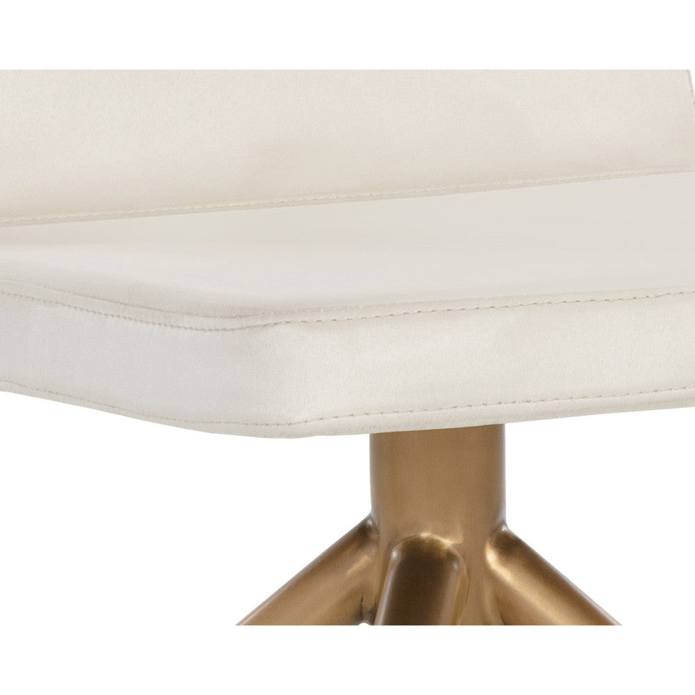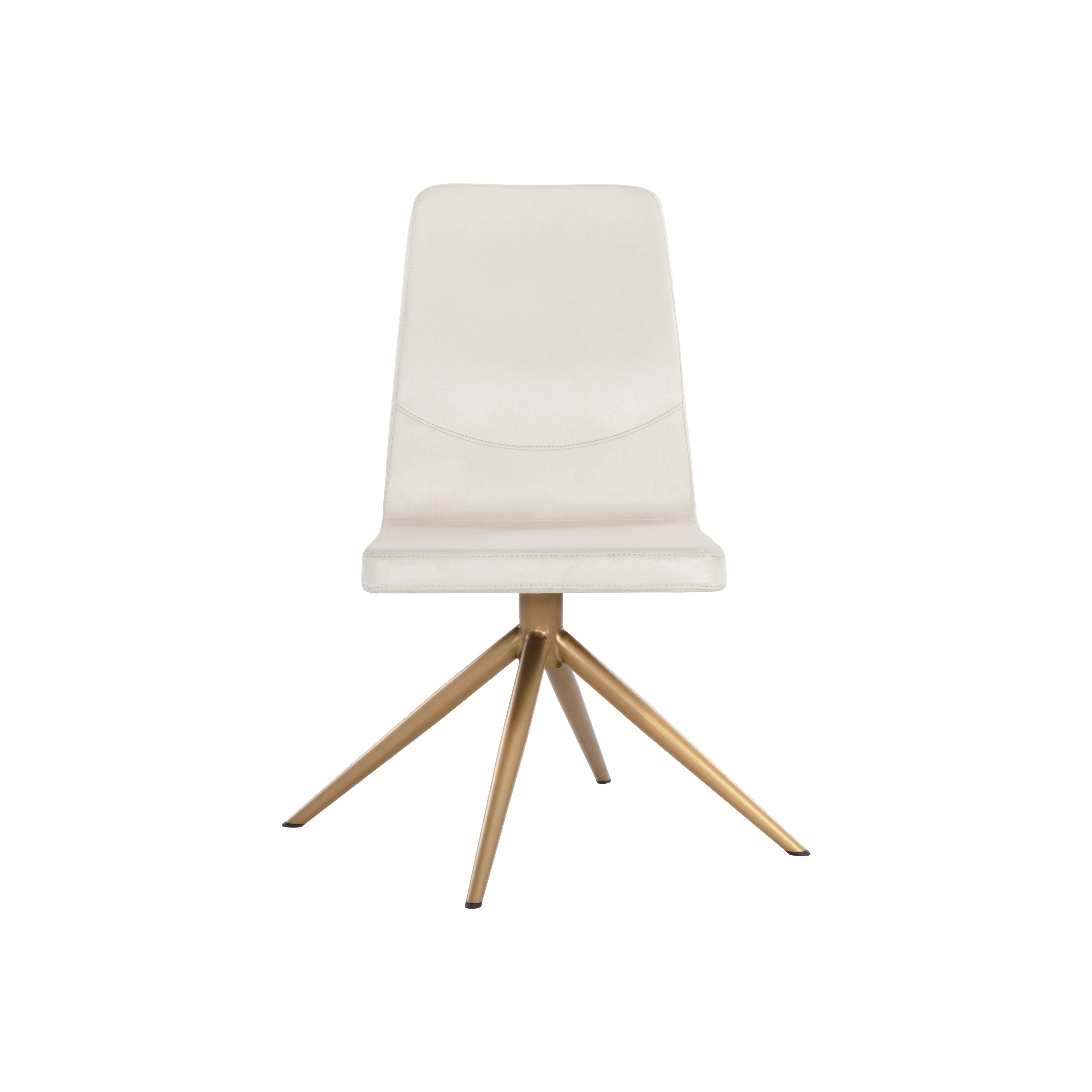 Chic and polished, this stunning dining chair unifies the best of style and function. Upholstered in vienna cream fabric and completed with stainless steel legs in a gold finish.