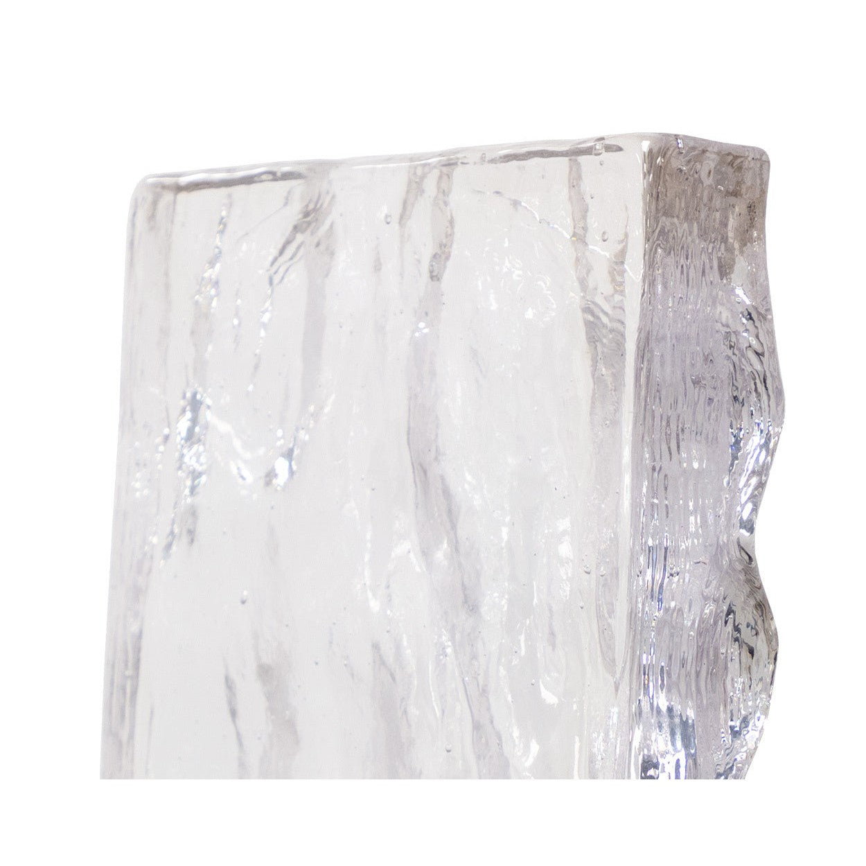 Elegantly crafted with thick casted glass, the Indira Sconce embodies graceful illumination. A brushed gold iron base holds the piece together, displaying its sculpted form. When lit the light shines beautifully through the translucent glass, casting a stunning glow wherever you place it.