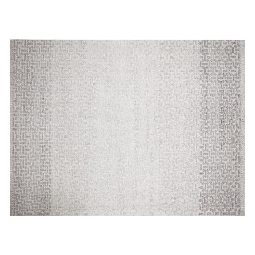 Complete with fringe details, this hand-knotted rug features a subtle pattern and varying beige hues in an ombre effect for a truly beautiful addition to any space. Suitable for indoor and covered outdoor spaces.