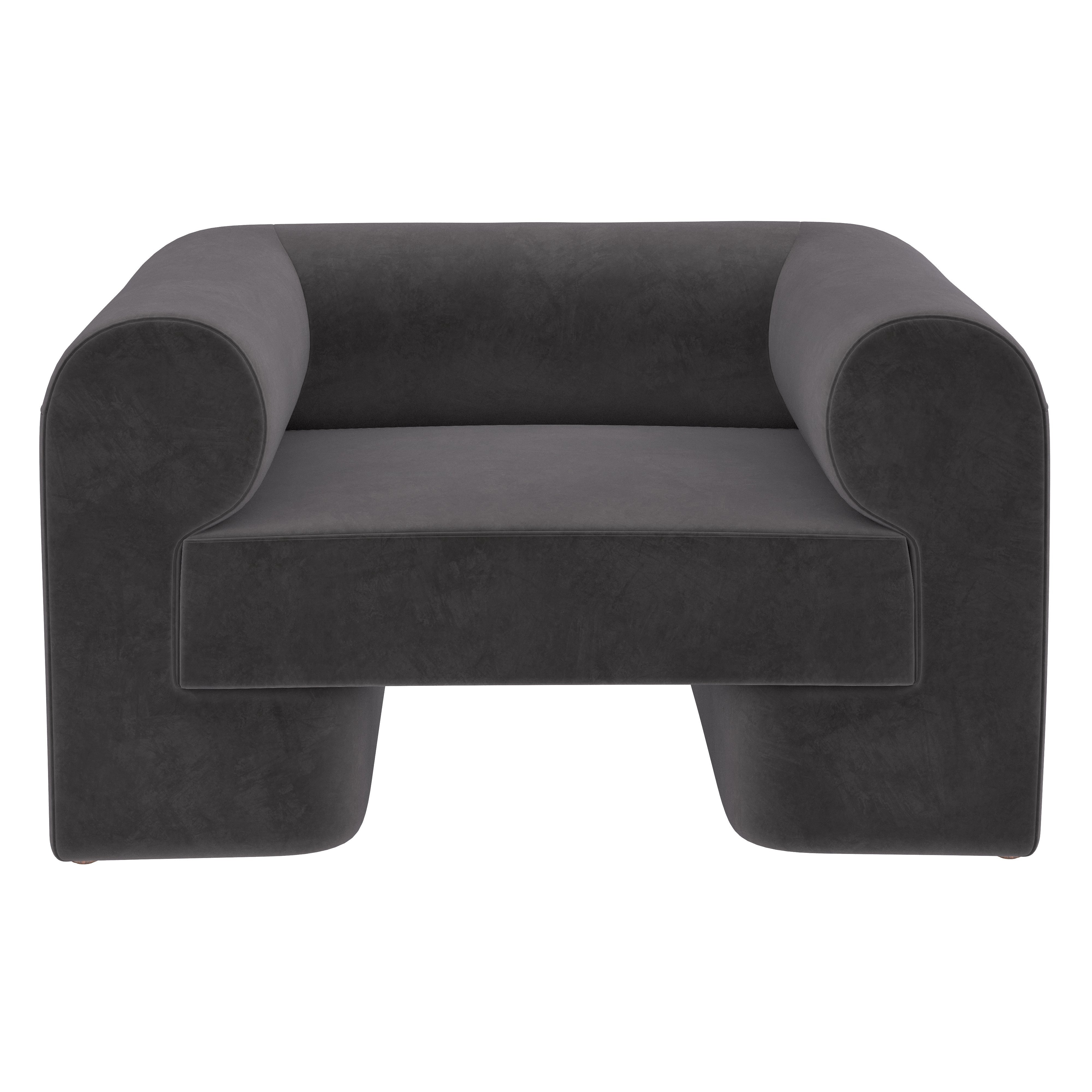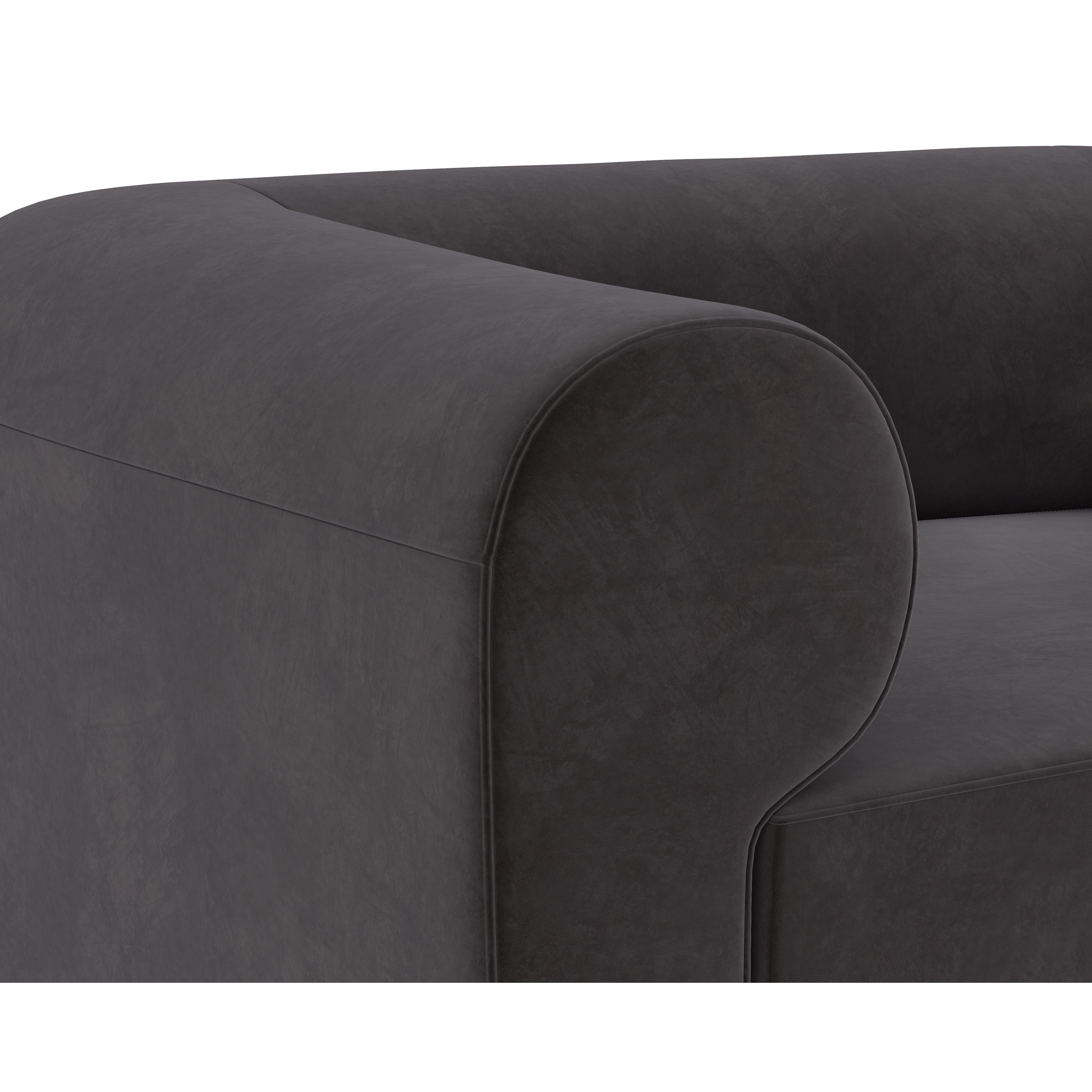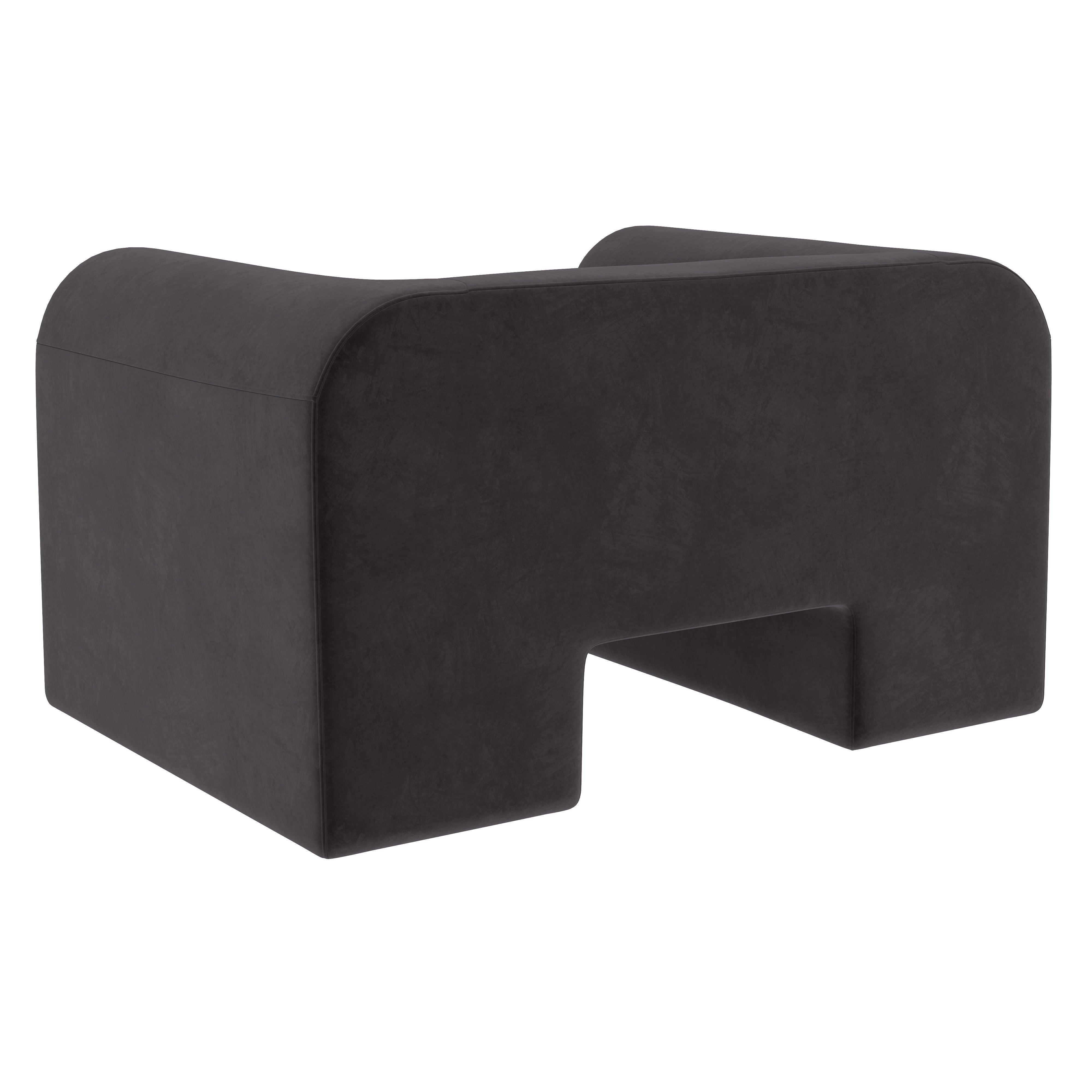 A bold take on contemporary style, this armchair will stand out in any space. Features rounded back and arm rests for ultimate comfort. Fully upholstered in luxurious meg ash, taupe and gold fabrics. Pair with coordinating sofa to complete the look.