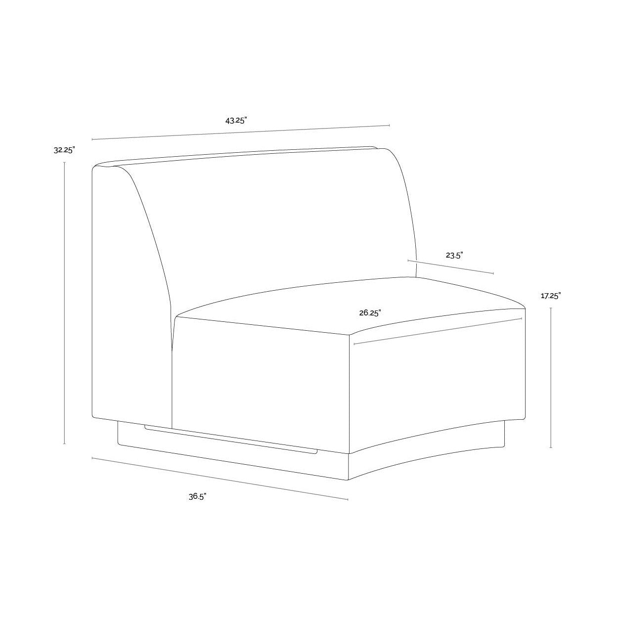 Infuse comfort into any space with this curvy, modular armless chair that offers versatility in its placement. different ways. Stocked in egypt light grey fabric with complementing danny medium grey fabric. Completed with a pine wood frame. This piece can be sourced alone or in a variety of combinations with the coordinating Jaclyn left and right armchair.