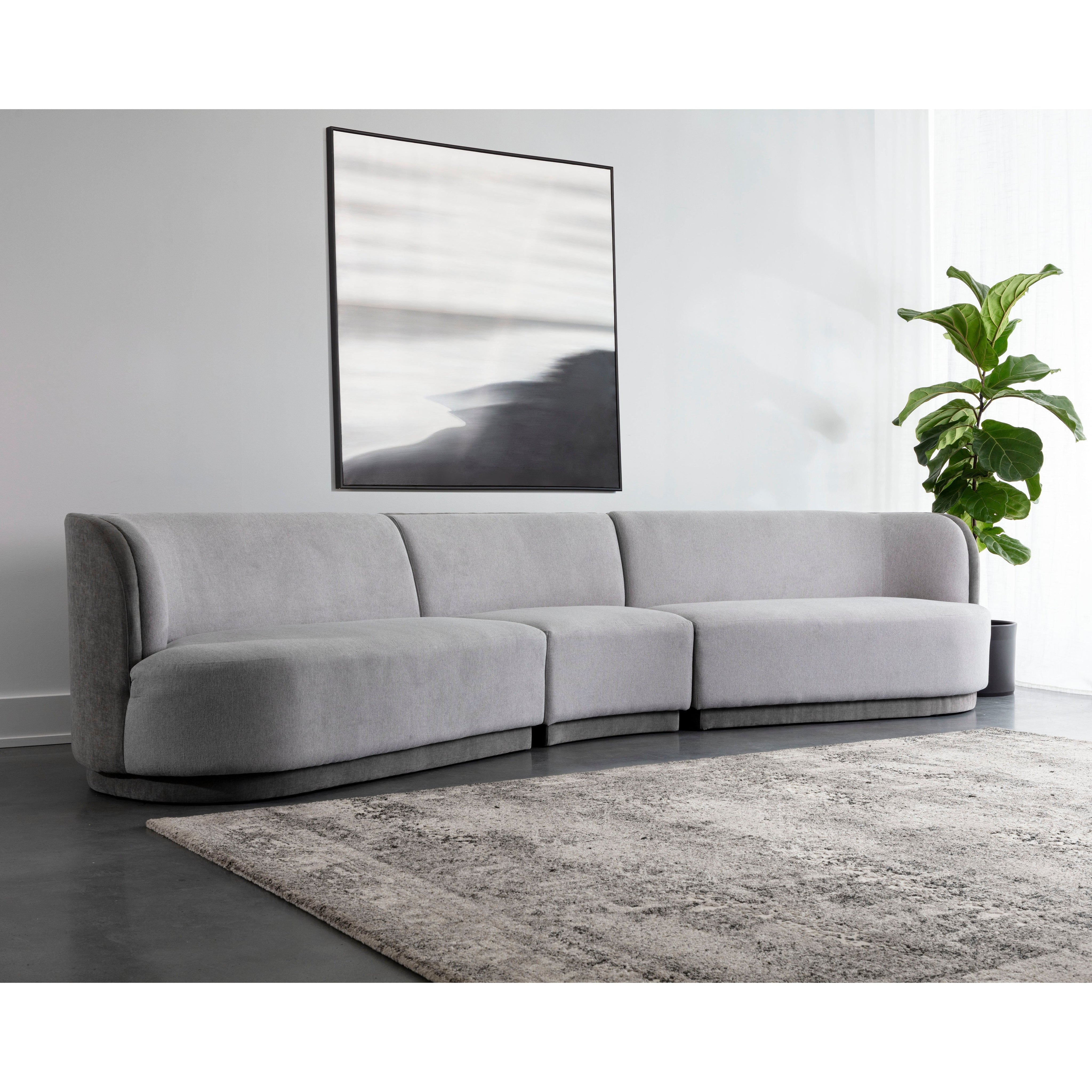 Infuse comfort into any space with this curvy, modular left armchair that offers versatility in its placement. Stocked in egypt light grey fabric with complementing danny medium grey fabric. Completed with a pine wood frame. This piece can be sourced alone or in a variety of combinations with the coordinating Jaclyn armless and left armchair.