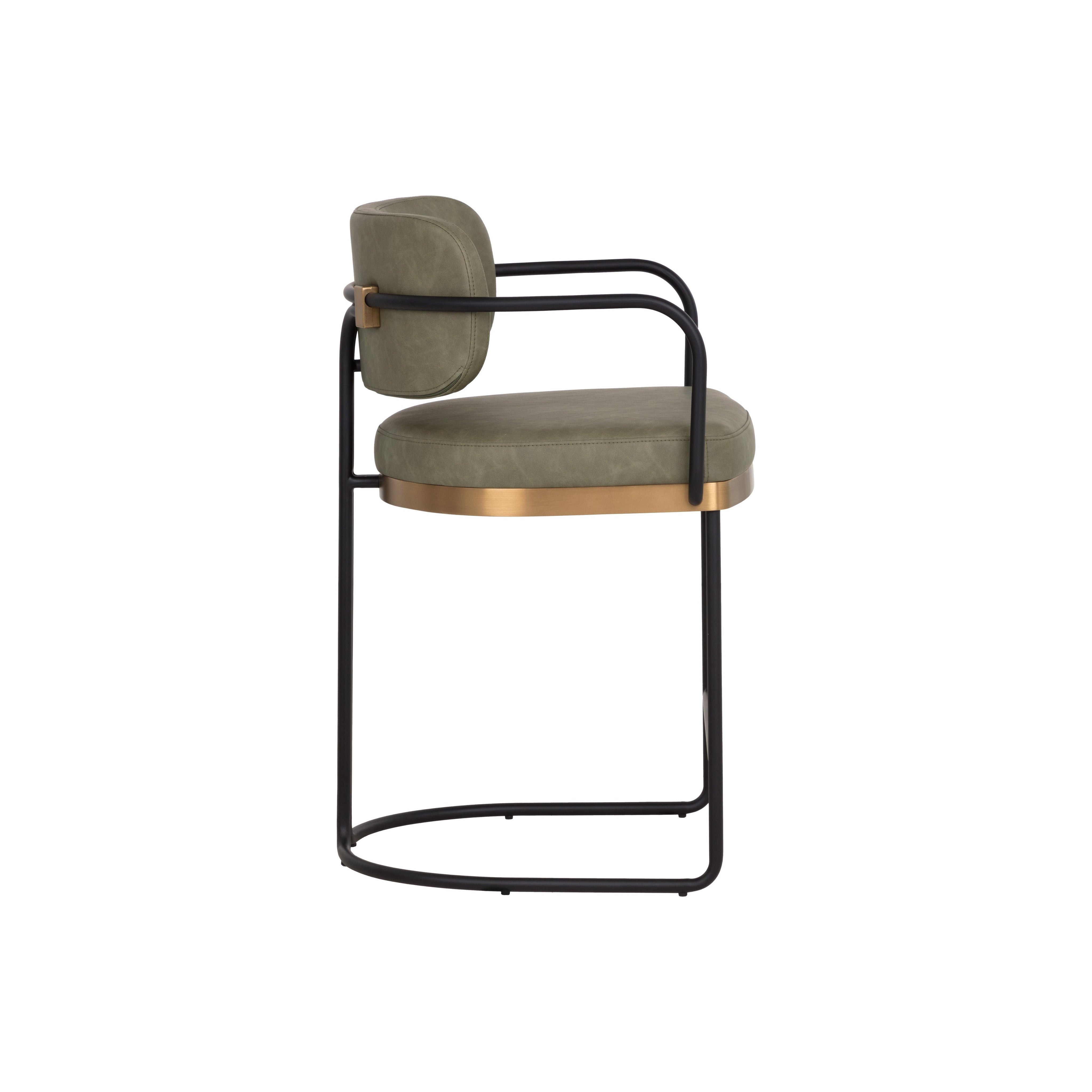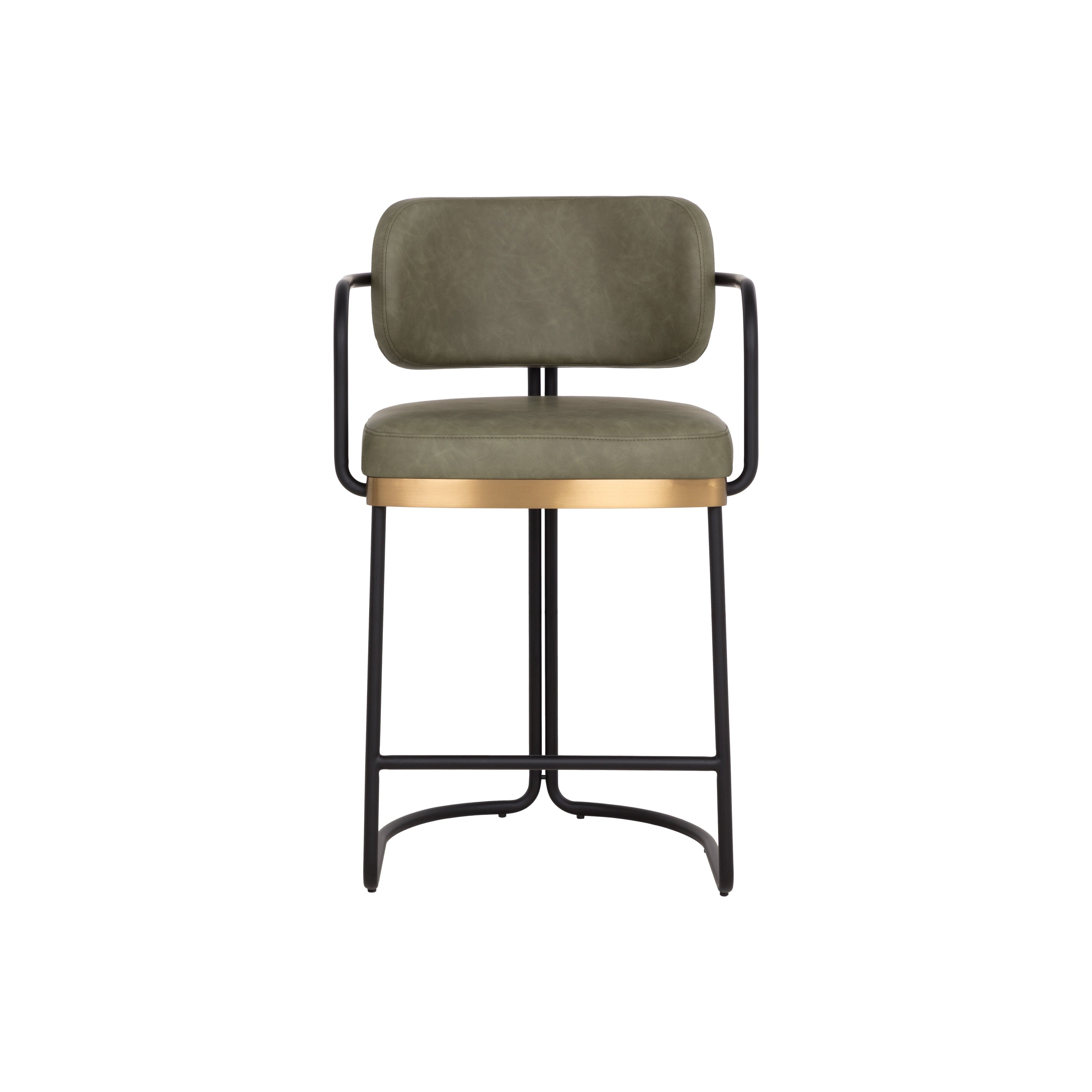 The Jalen Counter Stool is poised to be a guest favourite thanks to its free flowing curves and gold stainless steel accents. Made from powder-coated iron with a supportive seat and back upholstered in smooth faux leather, this armchair will fit into any residential or commercial setting.