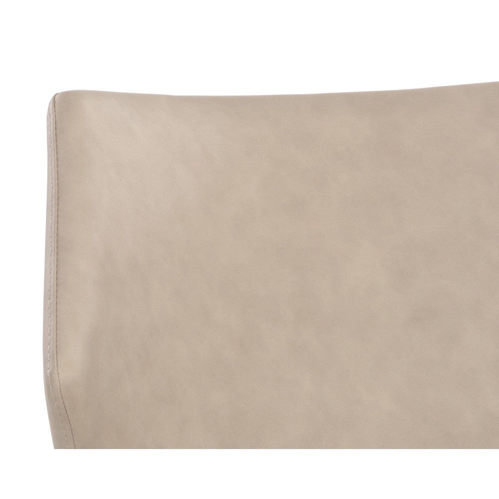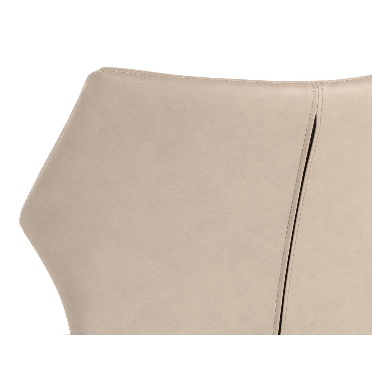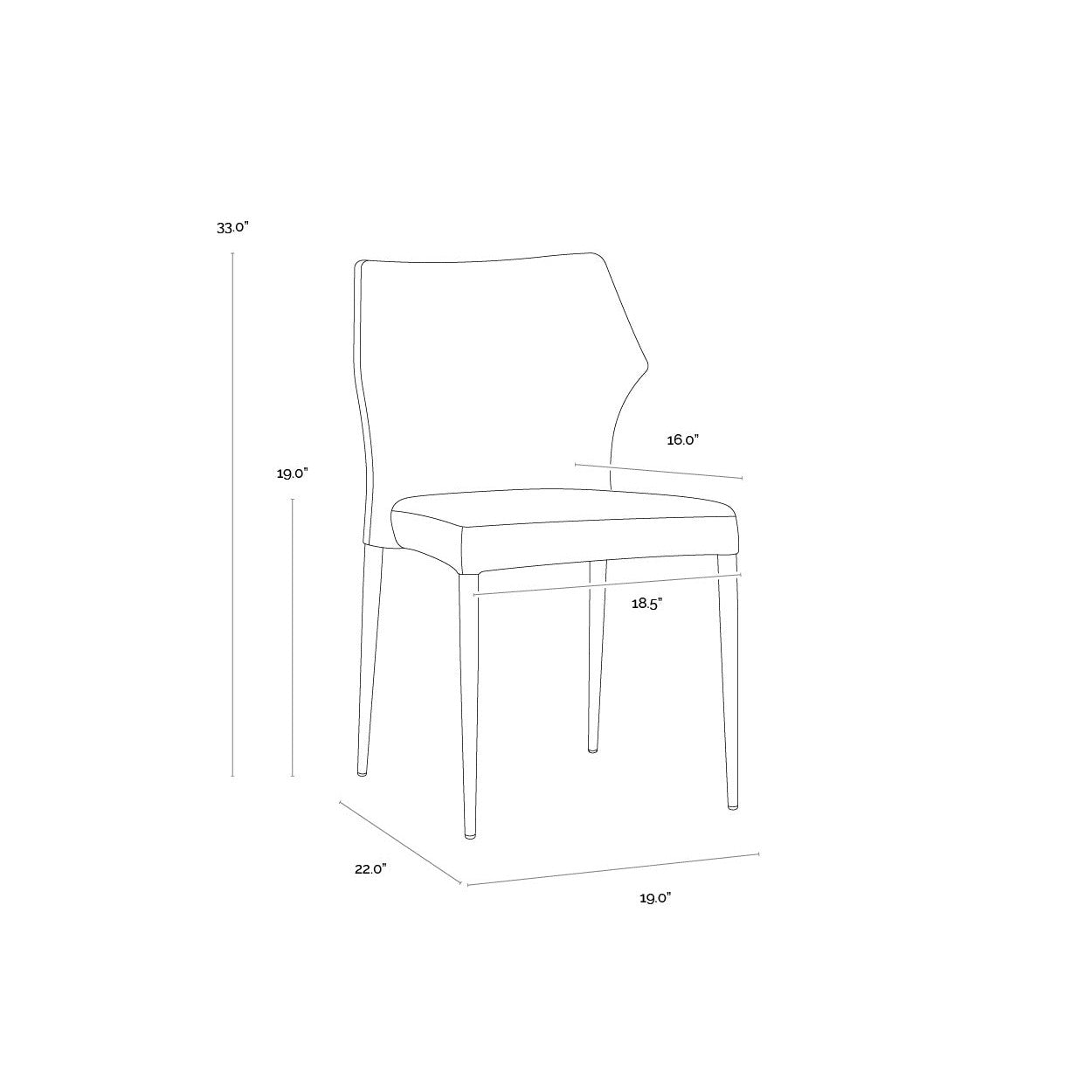 With a distinctly shaped backrest, this stackable modern dining chair is a great addition to any dining space. Stocked in bounce stone faux leather with a stylish open seamed zipper on the back. Completed with powder-coated steel legs in black.