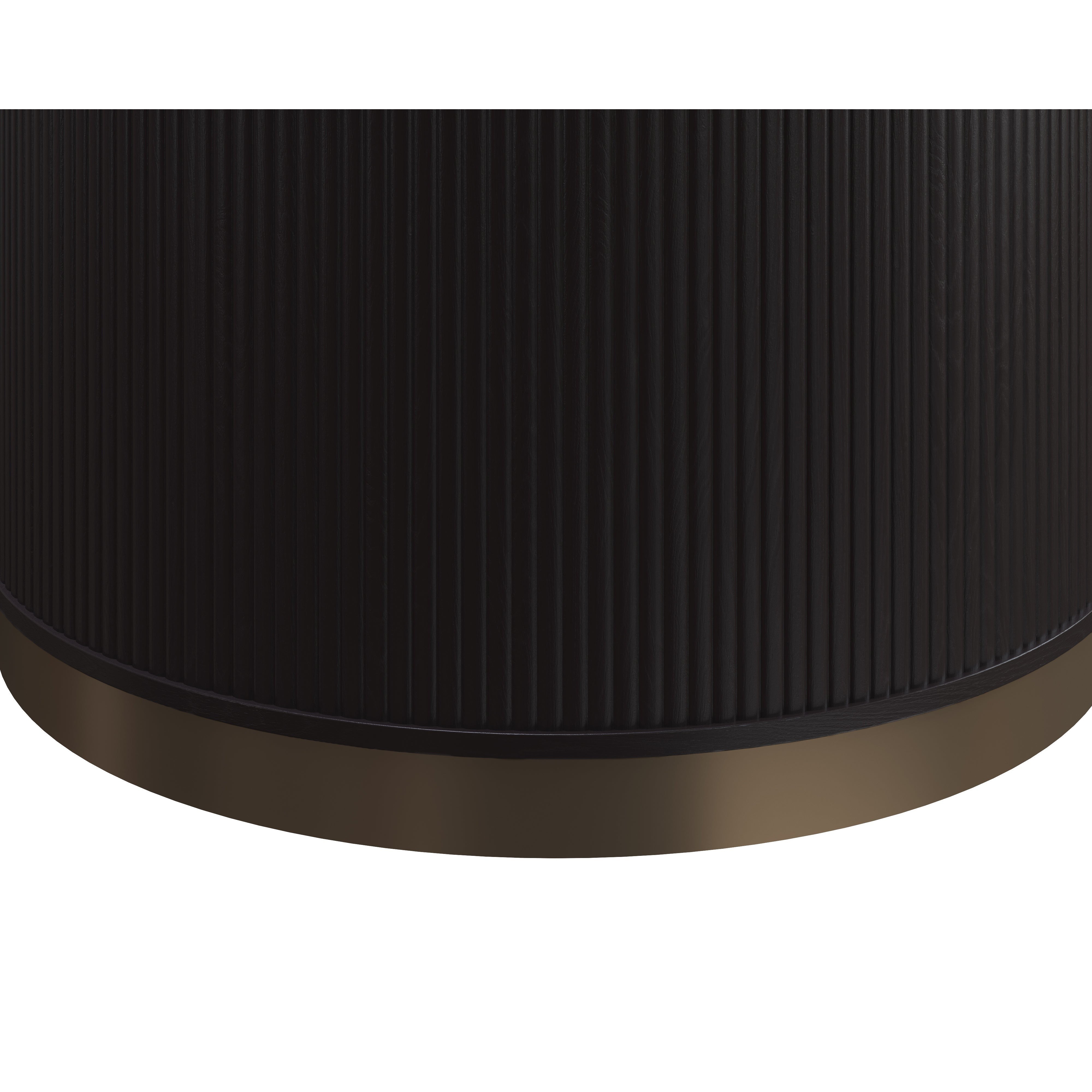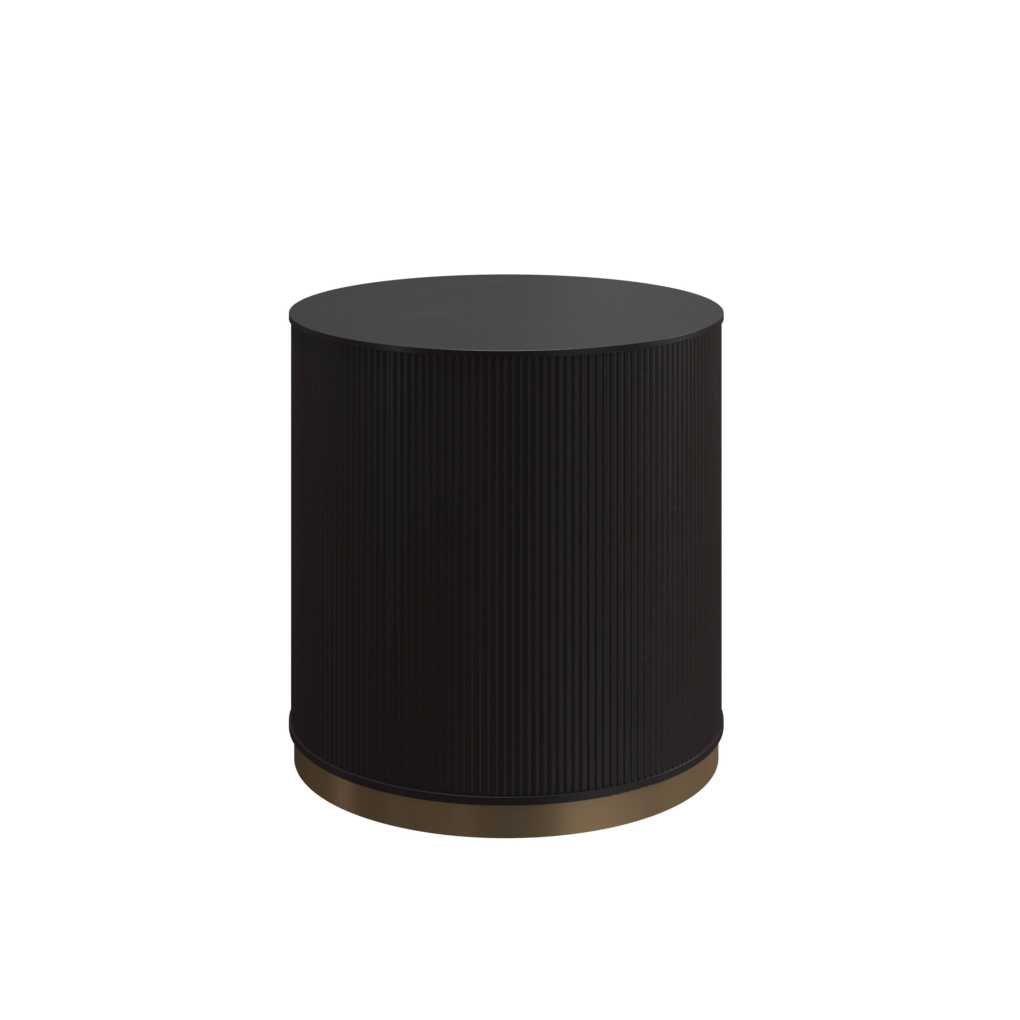 The Kalla Side Table brings form and function to life. Crafted with a rustic oak veneer with vertical reeding. A gold steel base finishes the look.
