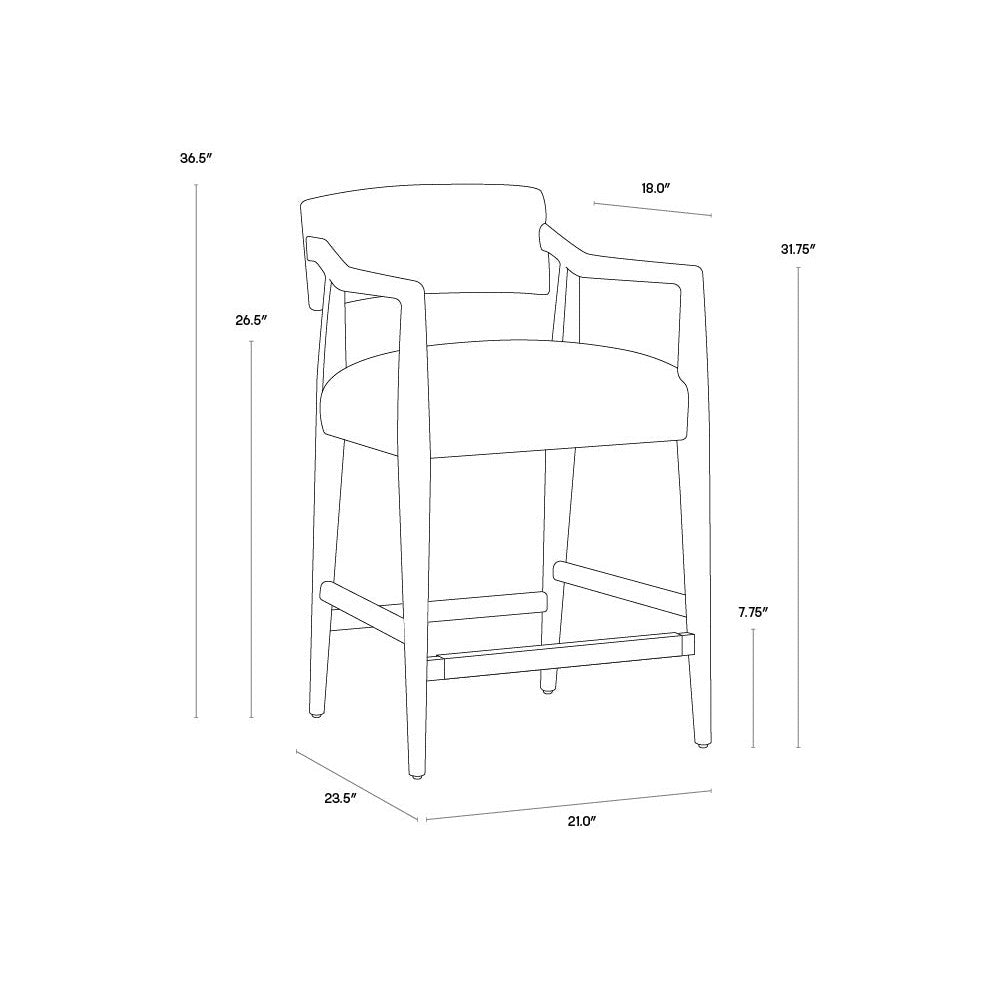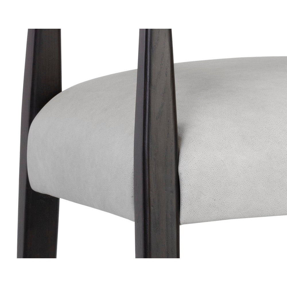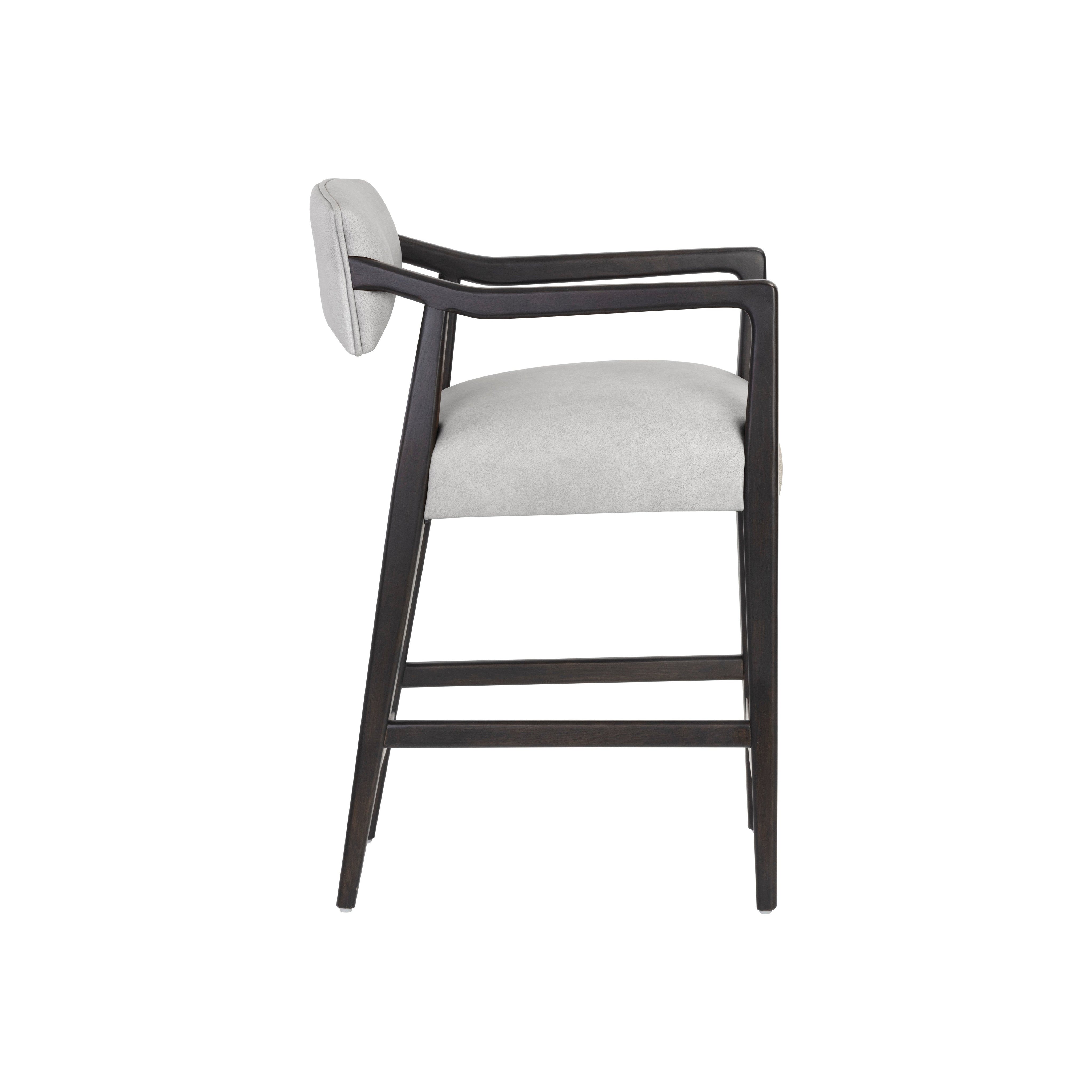 Design an inviting dining space with the mid-century-inspired Keagan Counter Stool. The exposed dark brown oak wood frame offers an airy impression when paired with saloon light grey leather. Handle with Care: This design has been crafted with 100% top grain leather. Leather is a natural material; as such, colour variations, markings, wrinkles, grooves and light scratches are acceptable and appreciated characteristics. No two pieces are alike. Visit our Product Care page for more information on how to ensure the lasting beauty of this piece.