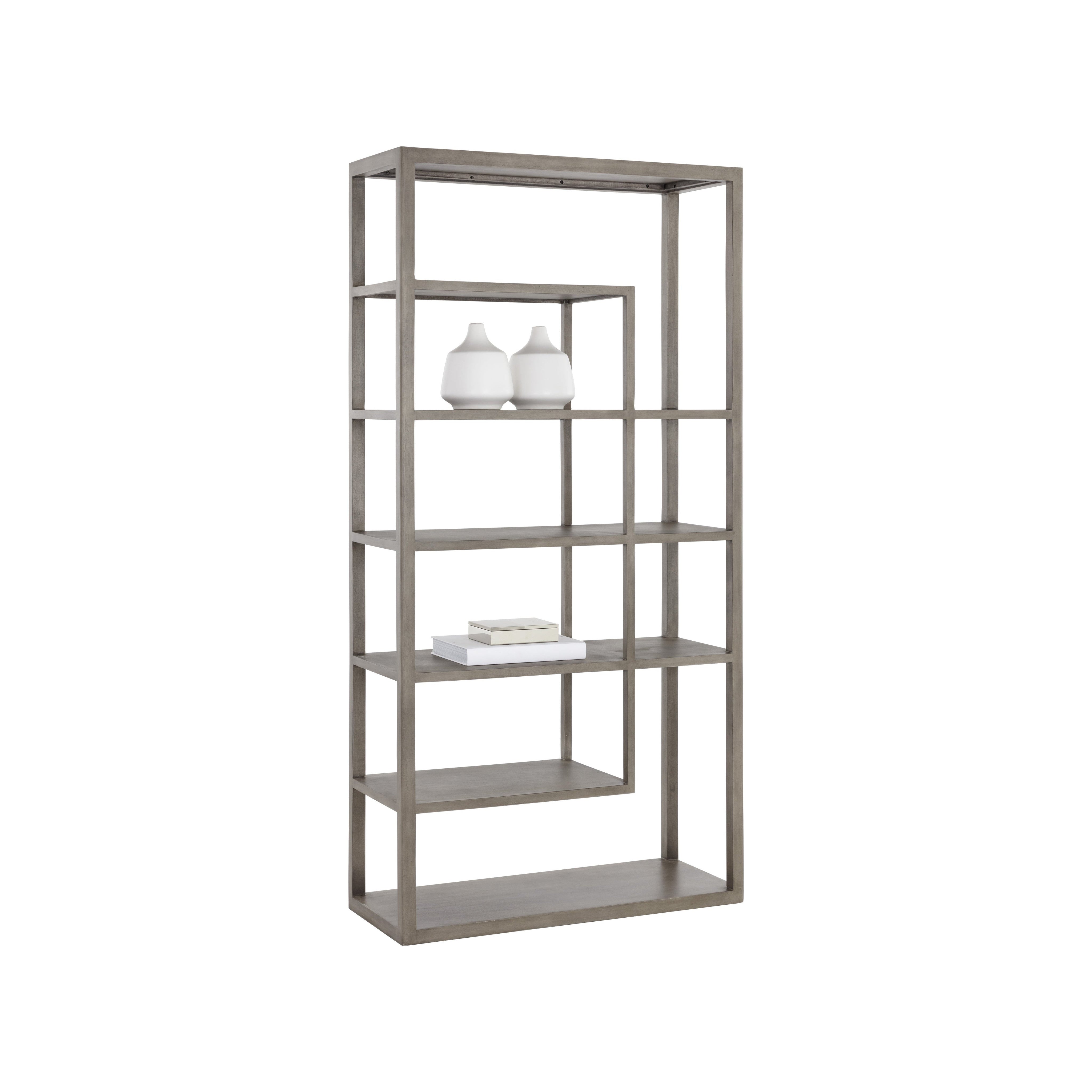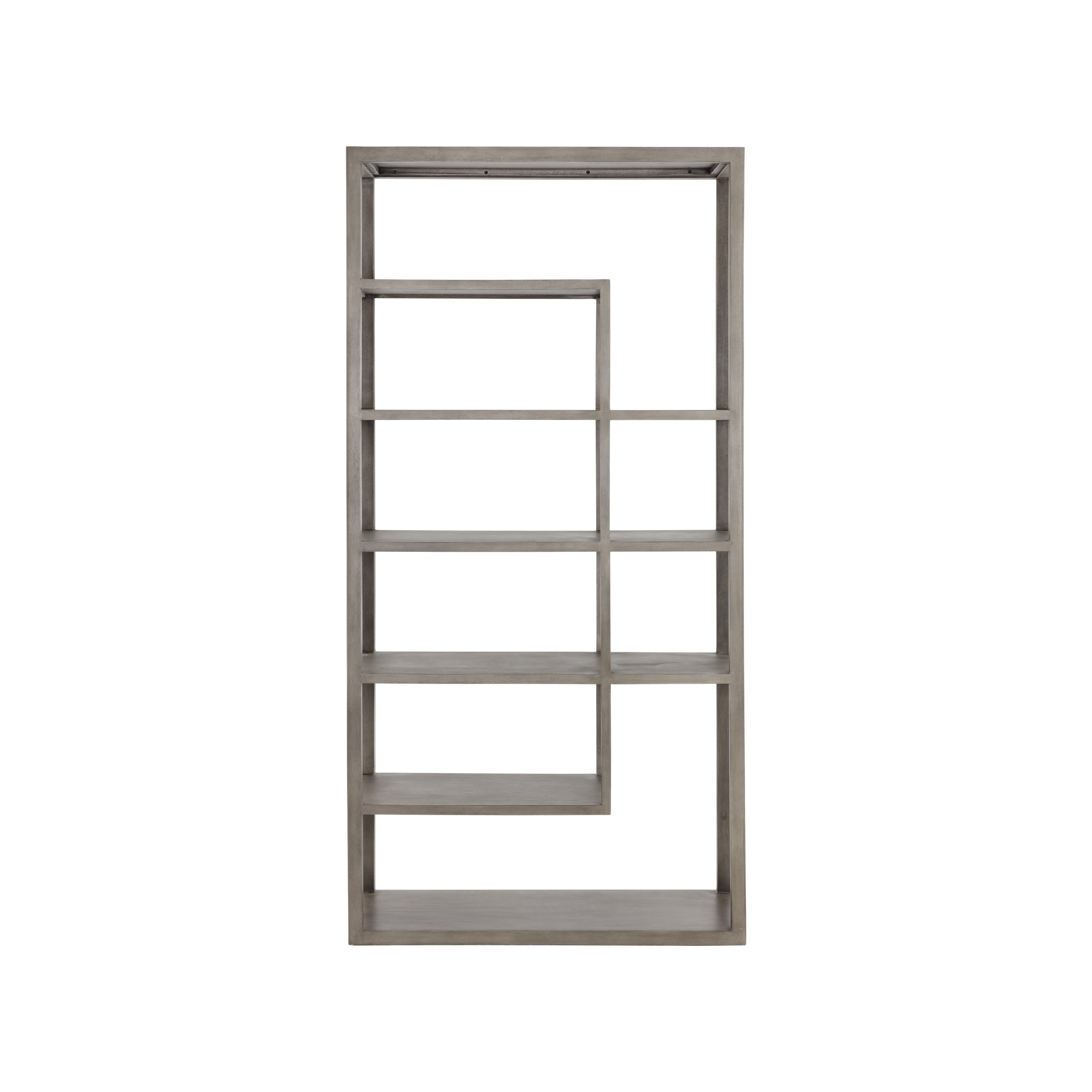 Modern style and functionality intersect in this beautiful bookcase. Features a frame crafted from solid grey mango wood with five shelves. Anti-tipping kit included. As wood is an organic, porous material, these pieces will contain natural variation of texture and may also exhibit fine indentations and cracks. Wood pieces will also display a disparity of colour and grain, and visible knots and burls that add to the character of each piece. Made in India. With refined craftsmanship, this design was brought to life by skilled local artisans. Due to the nature of handcraftsmanship, unique imperfections such as fissures, markings and variations in colour and shape are welcomed and appreciated characteristics for a truly one-of-a-kind piece.