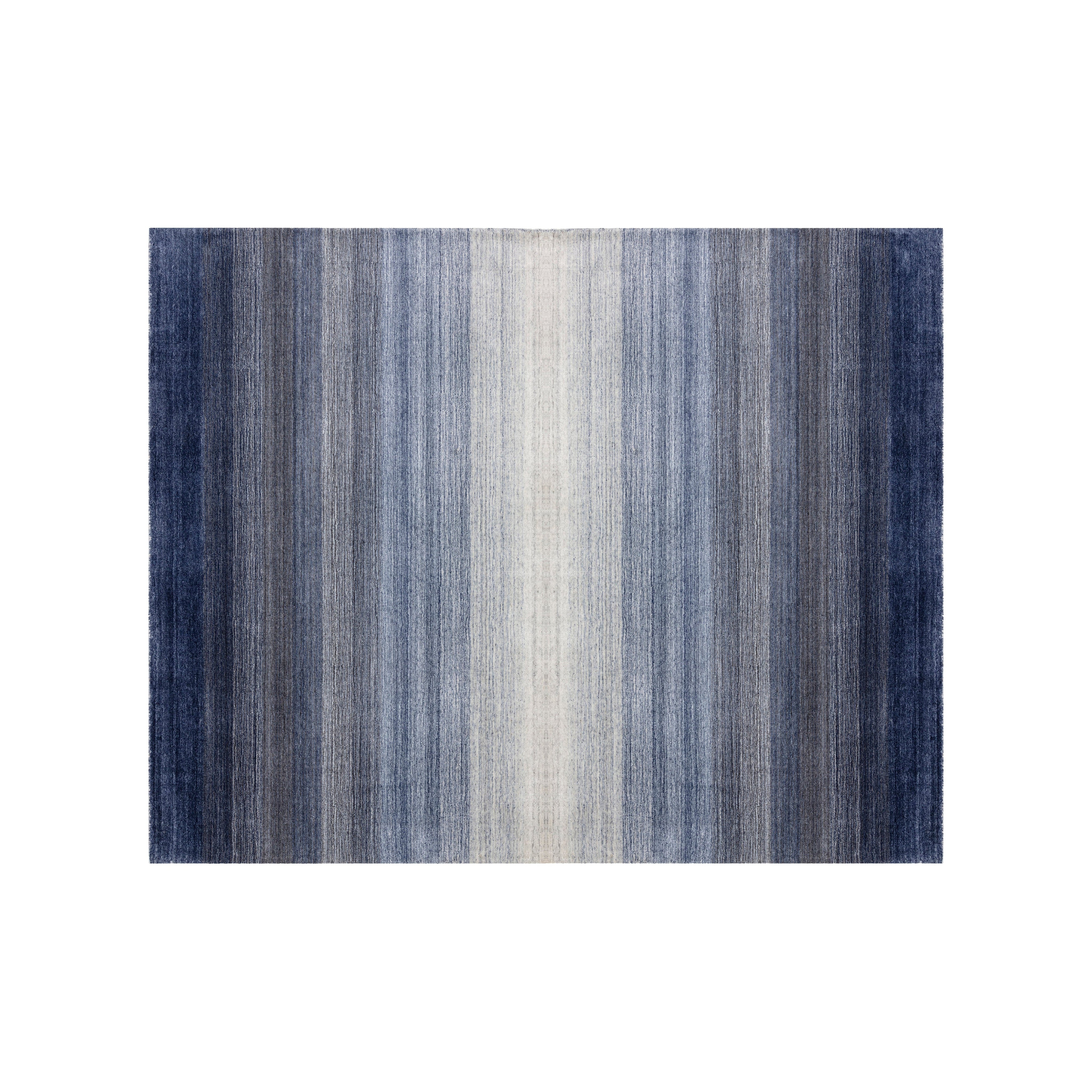 Create a dramatic space with this alluring handloomed rug that is made with a wool-blend. Made by skilled local artisans. Tight weaves create an ombre effect in blue or grey. Available in three sizes. Variations in colour, design and size are to be expected and embraced in each rug due to the distinctive weaving process followed by each artisan, resulting in a truly one-of-a-kind piece.