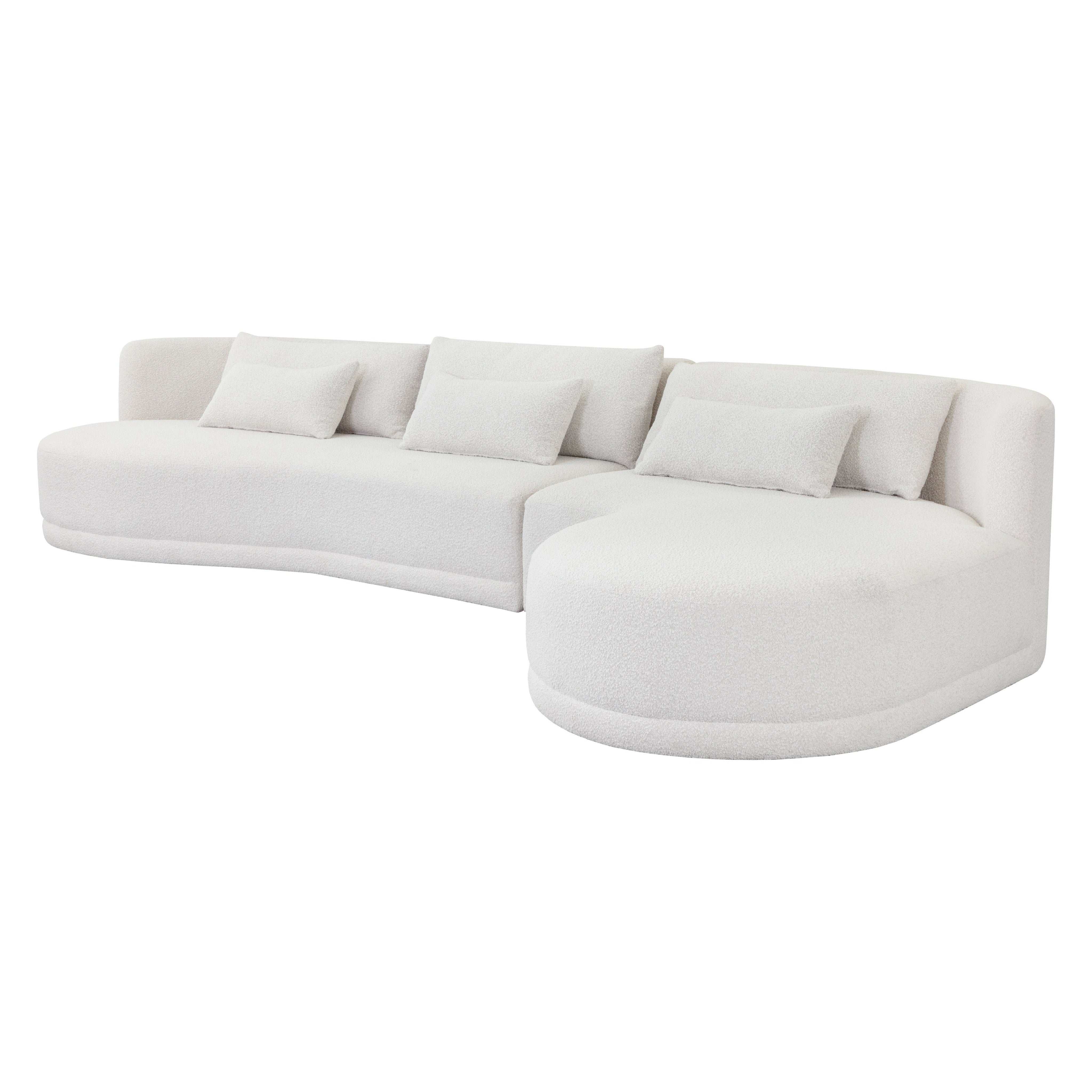 Indulge in the soft curves of the Laken Sofa Chaise. Upholstered in our stylish copenhagen white boucle fabric with a refined silhouette, this sofa chaise provides maximum comfort for entertaining in open spaces.