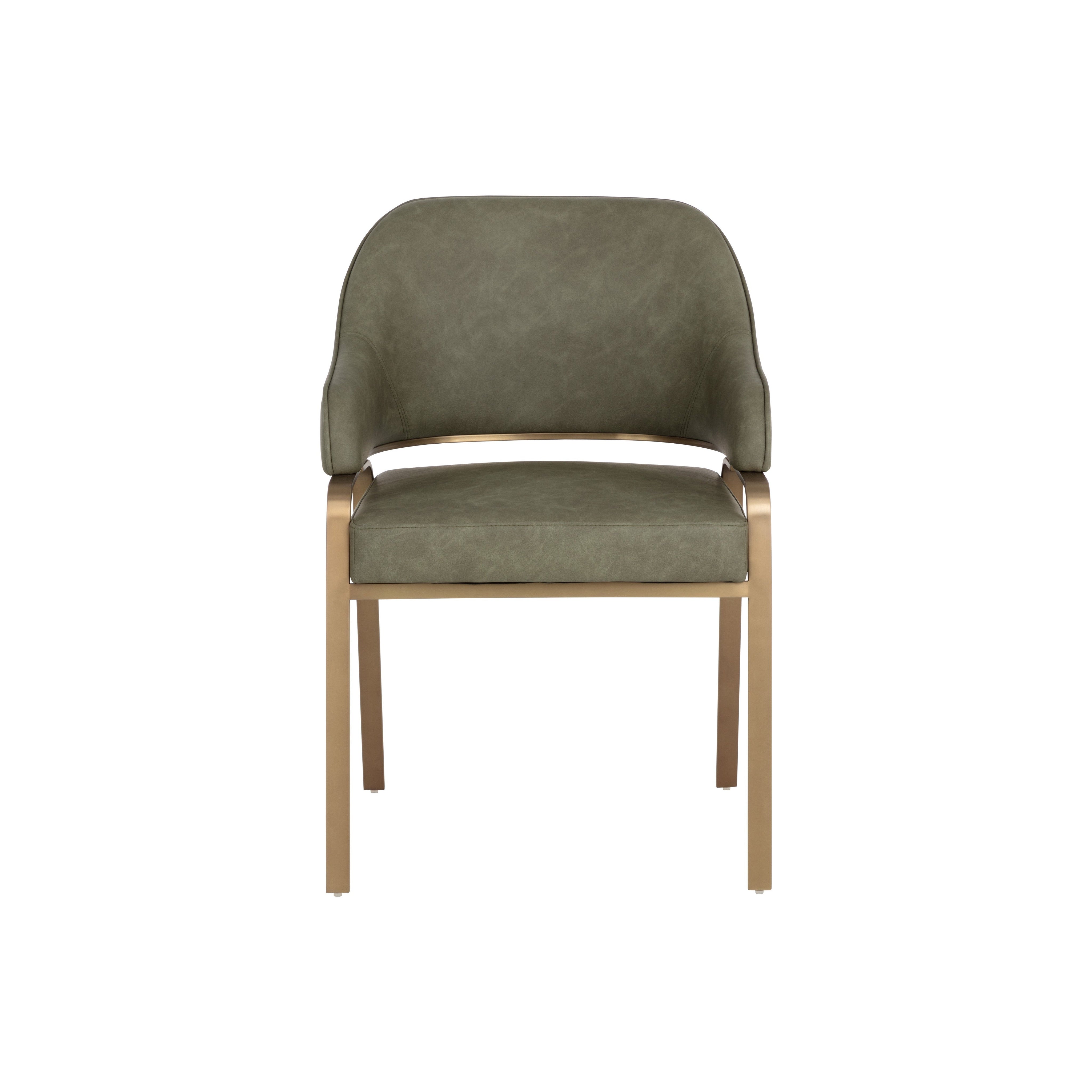 With a curved back and sleek gold stainless steel base, the Malachi Dining Armchair brings an air of modern elegance to any dining room. Upholstered in cantina black bonded leather for durability and comfort.