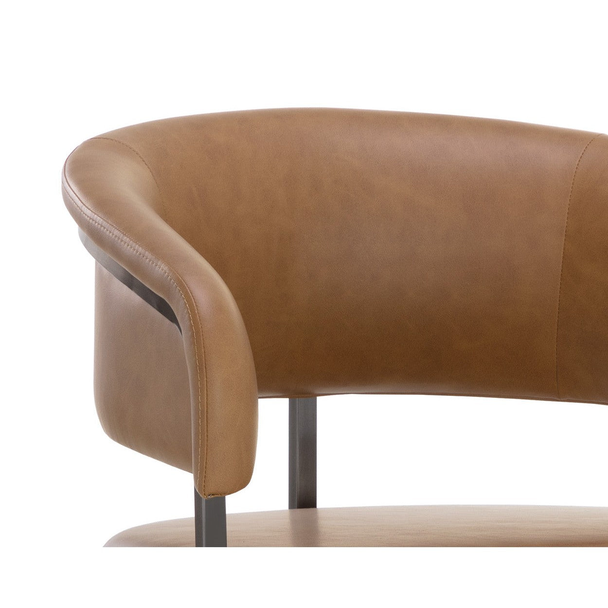 Uniting the beauty of sleek modern design with timeless elegance, the Marris Barstool is a great addition to any dining space. Stocked in smooth milliken cognac faux leather and completed with a cantilever frame in a gunmetal stainless steel finish. Handle With Care: This design has been crafted with faux leather. Faux leather is manufactured to reflect the natural characteristics of leather; as such, colour variations, markings, wrinkles, grooves, and light scratches are appreciated characteristics. No two pieces will be alike. Visit our Product Care page for more information on how to ensure the lasting beauty of this piece.