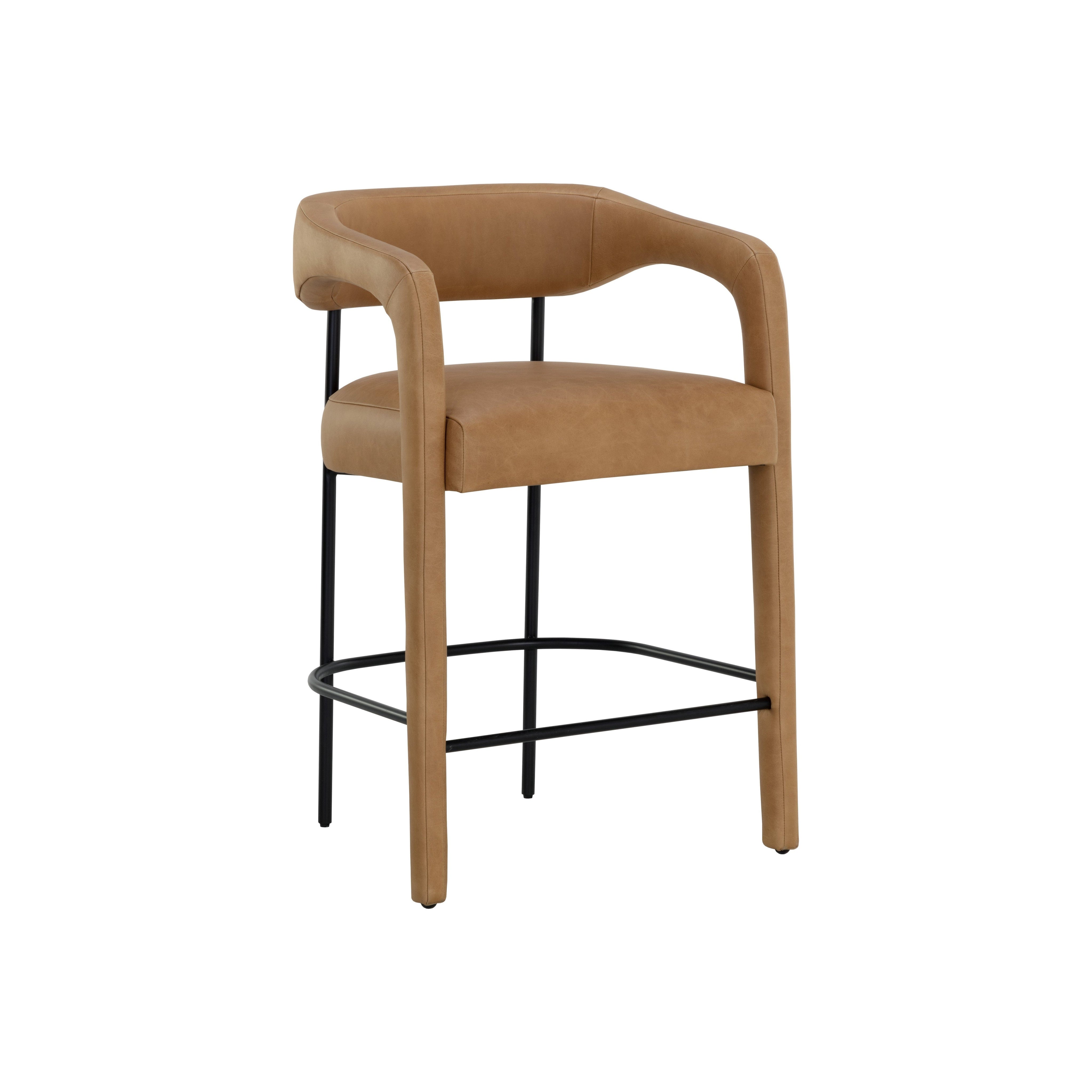 Perfectly poised, the Mavia Counter Stool brings a cool modern edge to any dining area. Our stunning ludlow sesame leather is wrapped around the seat, armrests and front legs while the rest of the black powder-coated frame remains exposed. Handle with Care: This design has been crafted with 100% leather. Leather is a natural material; as such, colour variations, markings, wrinkles, grooves and light scratches are acceptable and appreciated characteristics. No two pieces are alike. Visit our Product Care page for more information on how to ensure the lasting beauty of this piece.