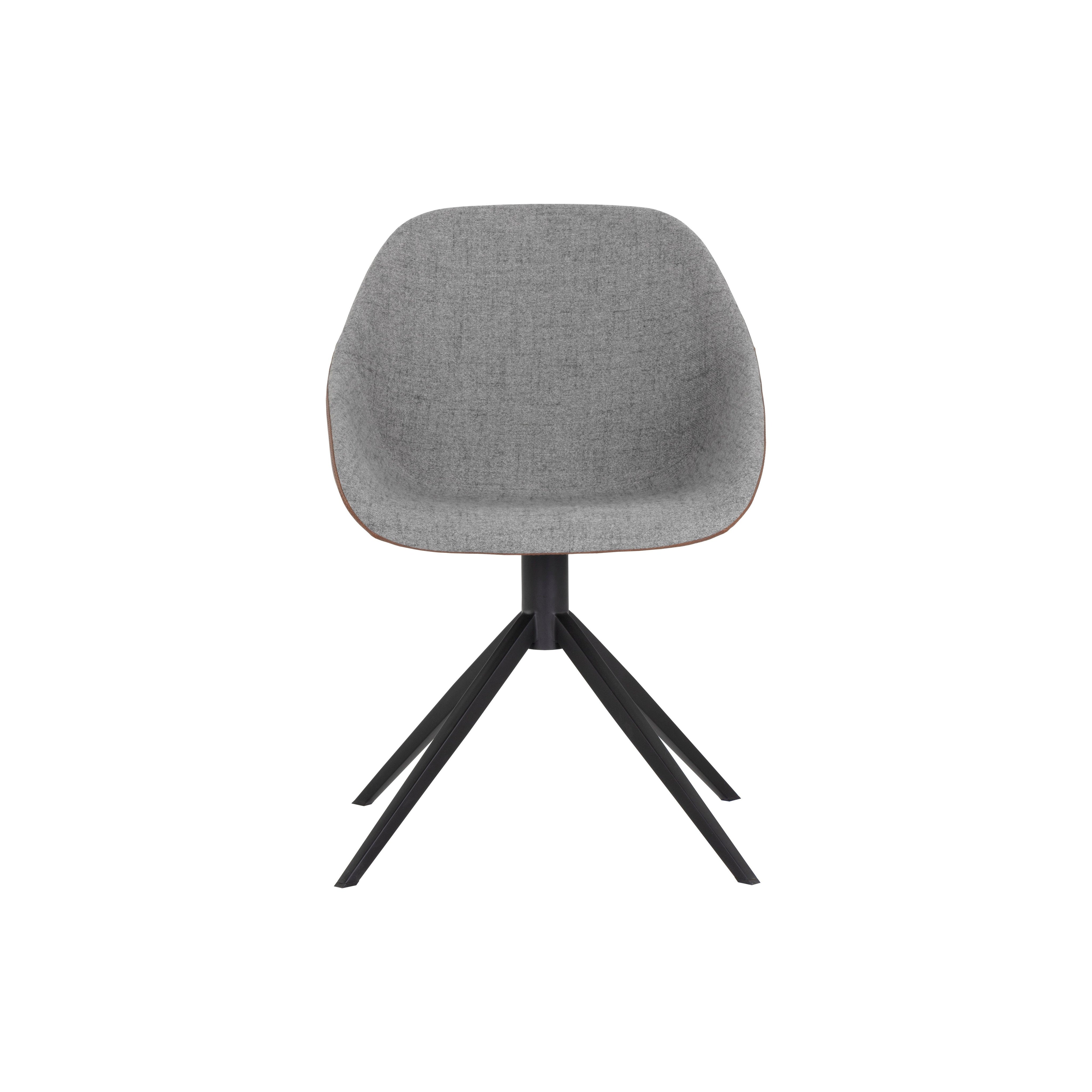 This swivel dining chair exudes masculine charm. Features a sculpted two toned seat in November grey fabric with a cinnamon brown faux leather exterior. Tapered black steel legs create a bright and airy look. Suitable for various dining, kitchen and bar spaces of all sizes. Handle With Care: This design has been crafted with faux leather. Faux leather is manufactured to reflect the natural characteristics of leather; as such, colour variations, markings, wrinkles, grooves, and light scratches are appreciated characteristics. No two pieces will be alike. Visit our Product Care page for more information on how to ensure the lasting beauty of this piece.