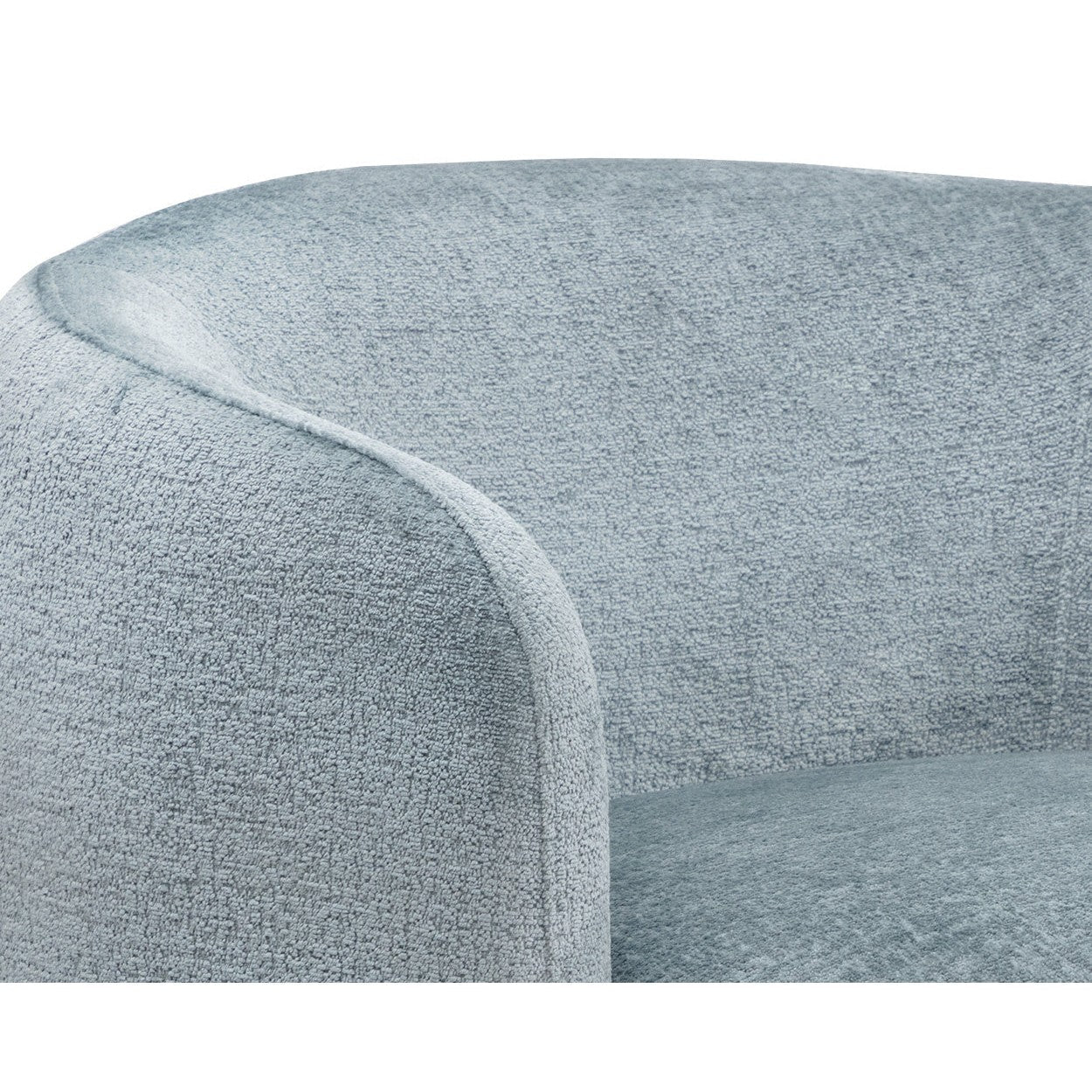 Add a stylish flair to any contemporary living space with this curved lounge chair. Features a sculptural frame that is fully upholstered in bergen french blue fabric.