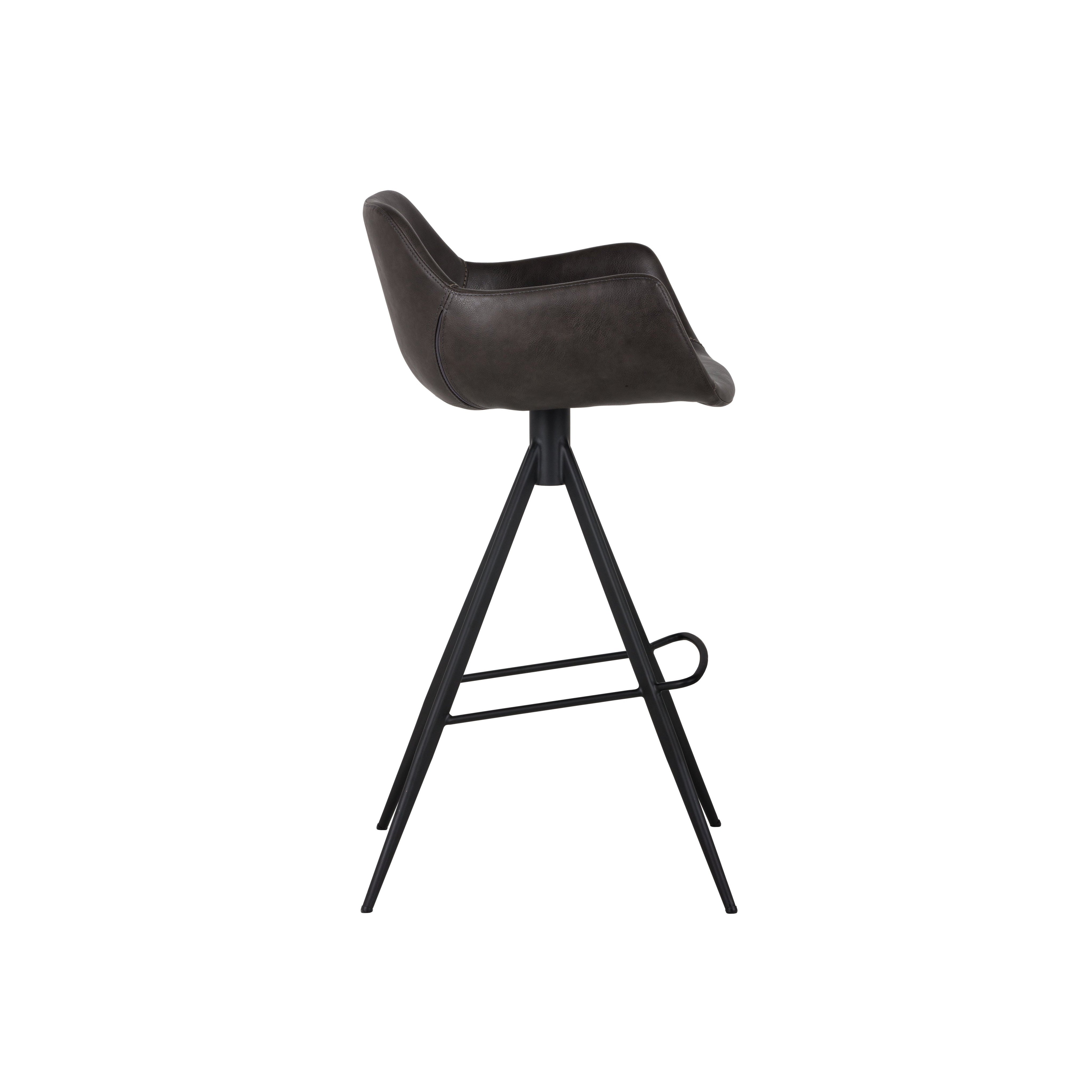 This comfortable swivel barstool is a mix of masculine, modern and urban design. Stocked in town grey faux leather with black powder-coated iron legs and a footrest. Features a 360 degree swivel range. Suitable for residential and contract environments and various dining, kitchen and bar spaces of all sizes. Handle With Care: This design has been crafted with faux leather. Faux leather is manufactured to reflect the natural characteristics of leather; as such, colour variations, markings, wrinkles, grooves, and light scratches are appreciated characteristics. No two pieces will be alike. Visit our Product Care page for more information on how to ensure the lasting beauty of this piece.