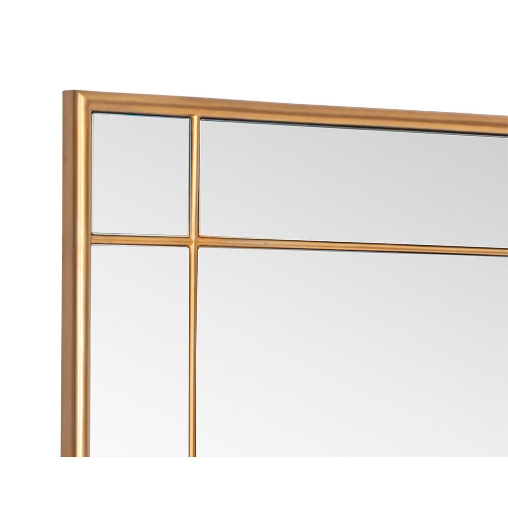 Classic elegance come to life in this stunning floor mirror. Features a brushed brass iron frame and pane detailing. Perfect for bedroom, living, loft and foyer spaces. Mounting and anti-tip kit included. Made in India. With refined craftsmanship, this design was brought to life by skilled local artisans. By nature, these materials develop unique imperfections such as fissures, markings and colour variations for a truly one-of-a-kind piece.