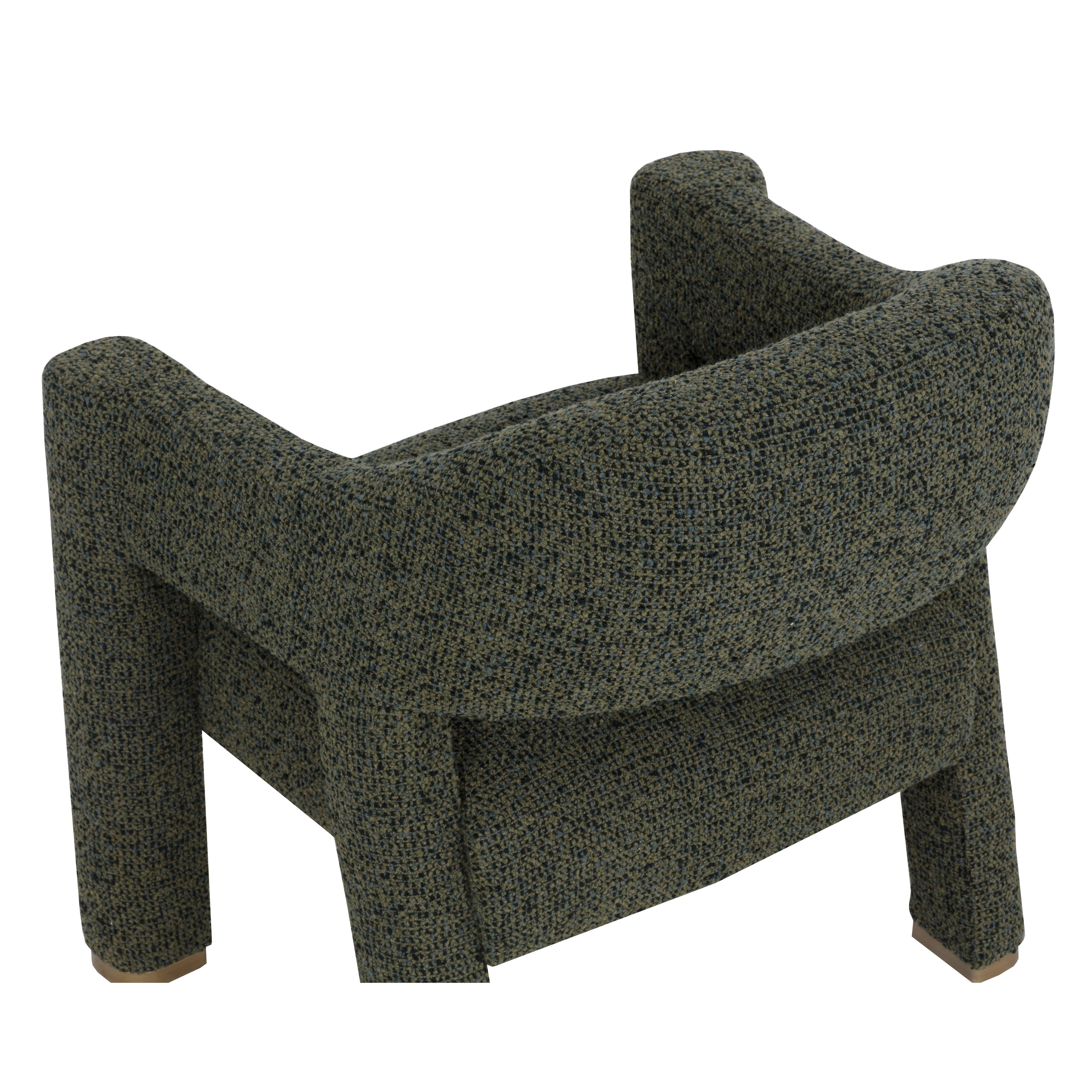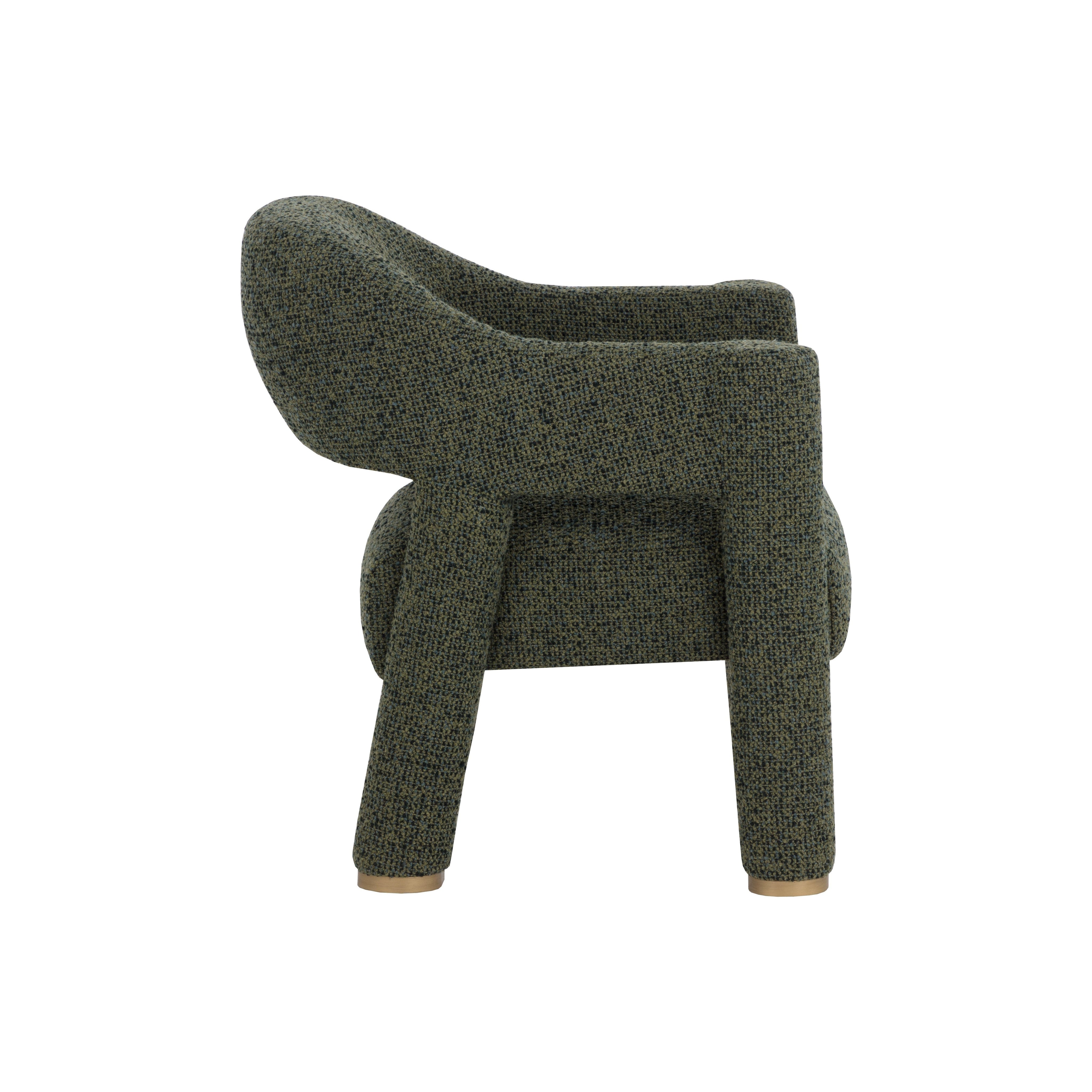 The Prisca Lounge Chair leans into its exaggerated proportions, with curves and lines that accentuate its rich texture. The cutout back adds lightness to the form, while brushed brass feet add just enough shine to catch the light. Designed to make a statement from every angle.