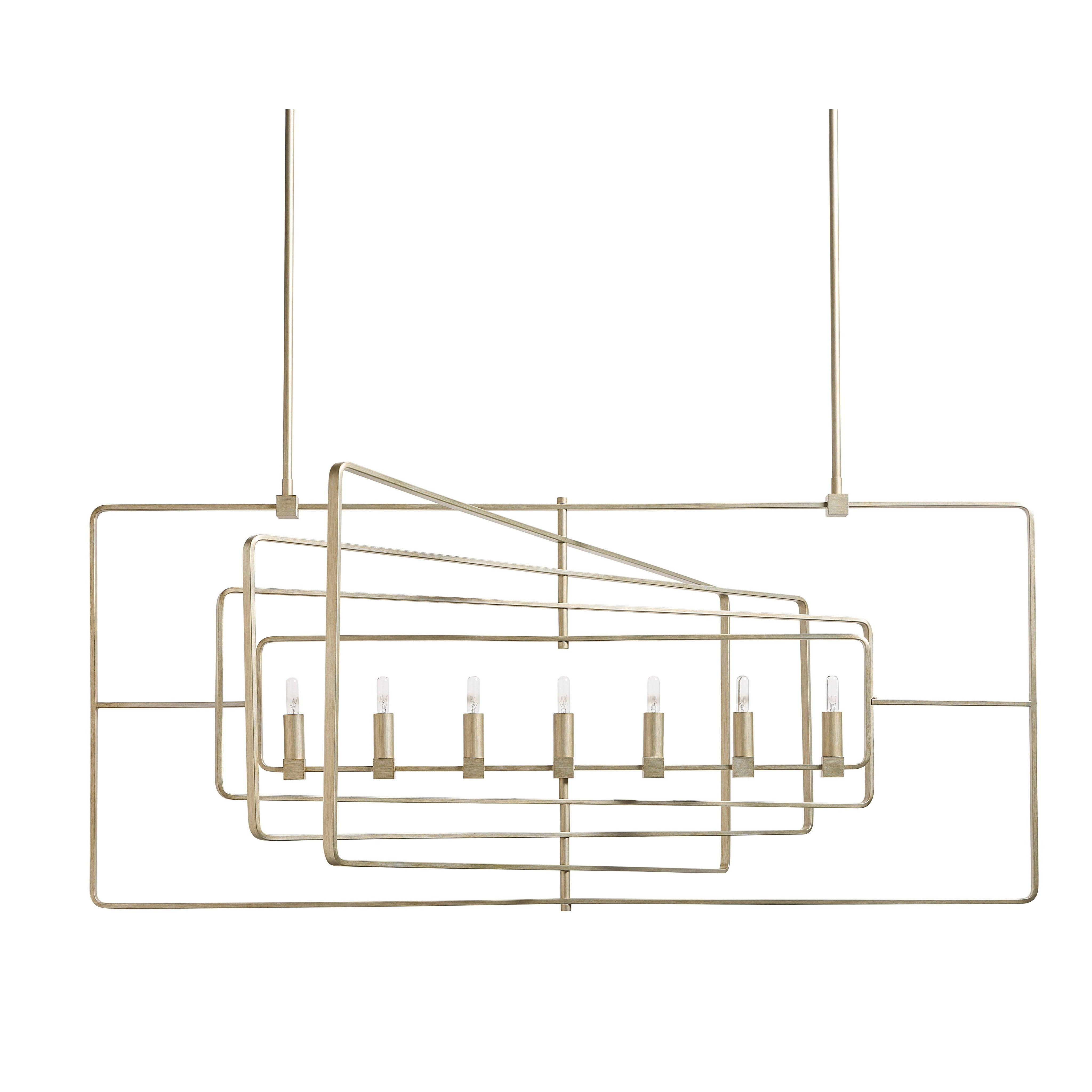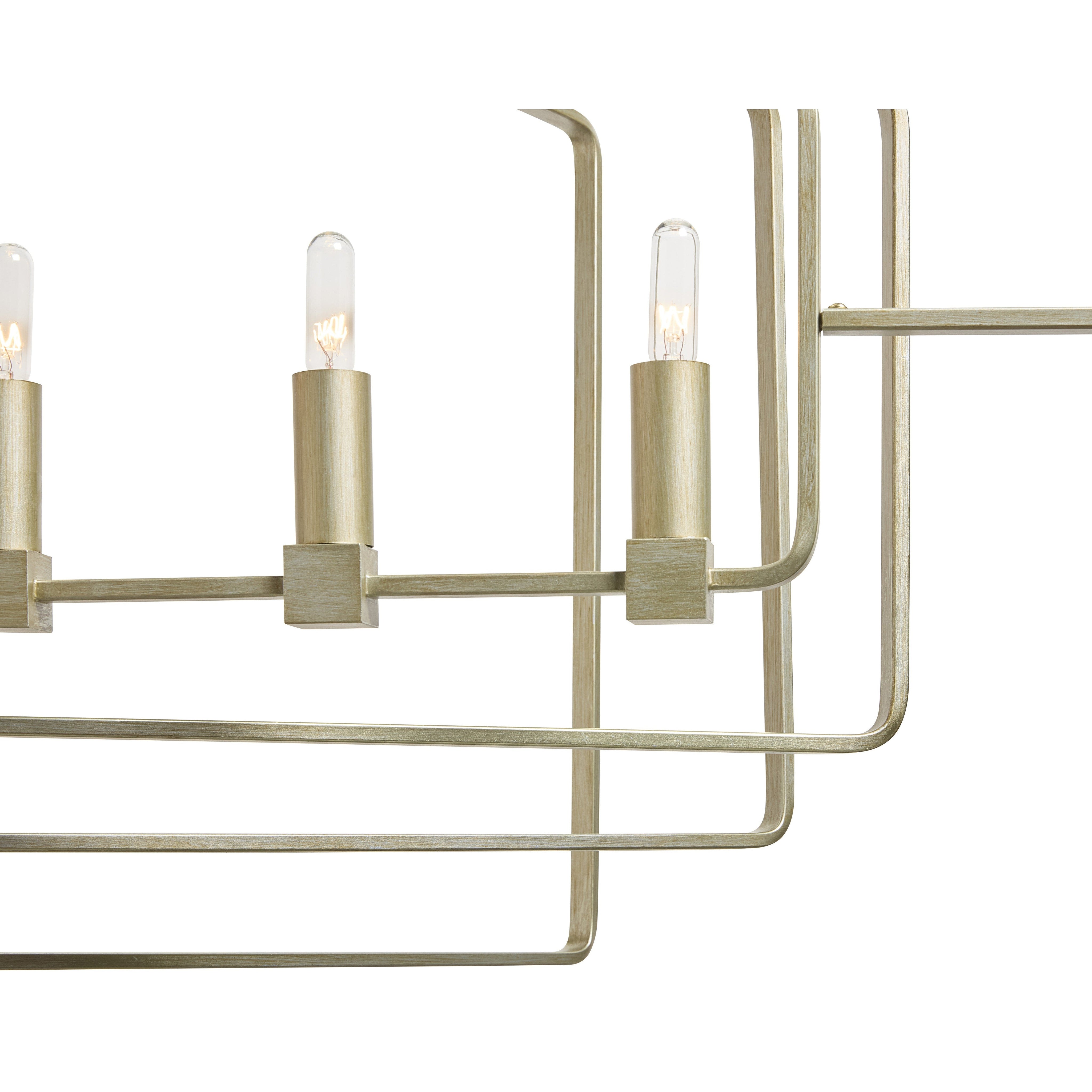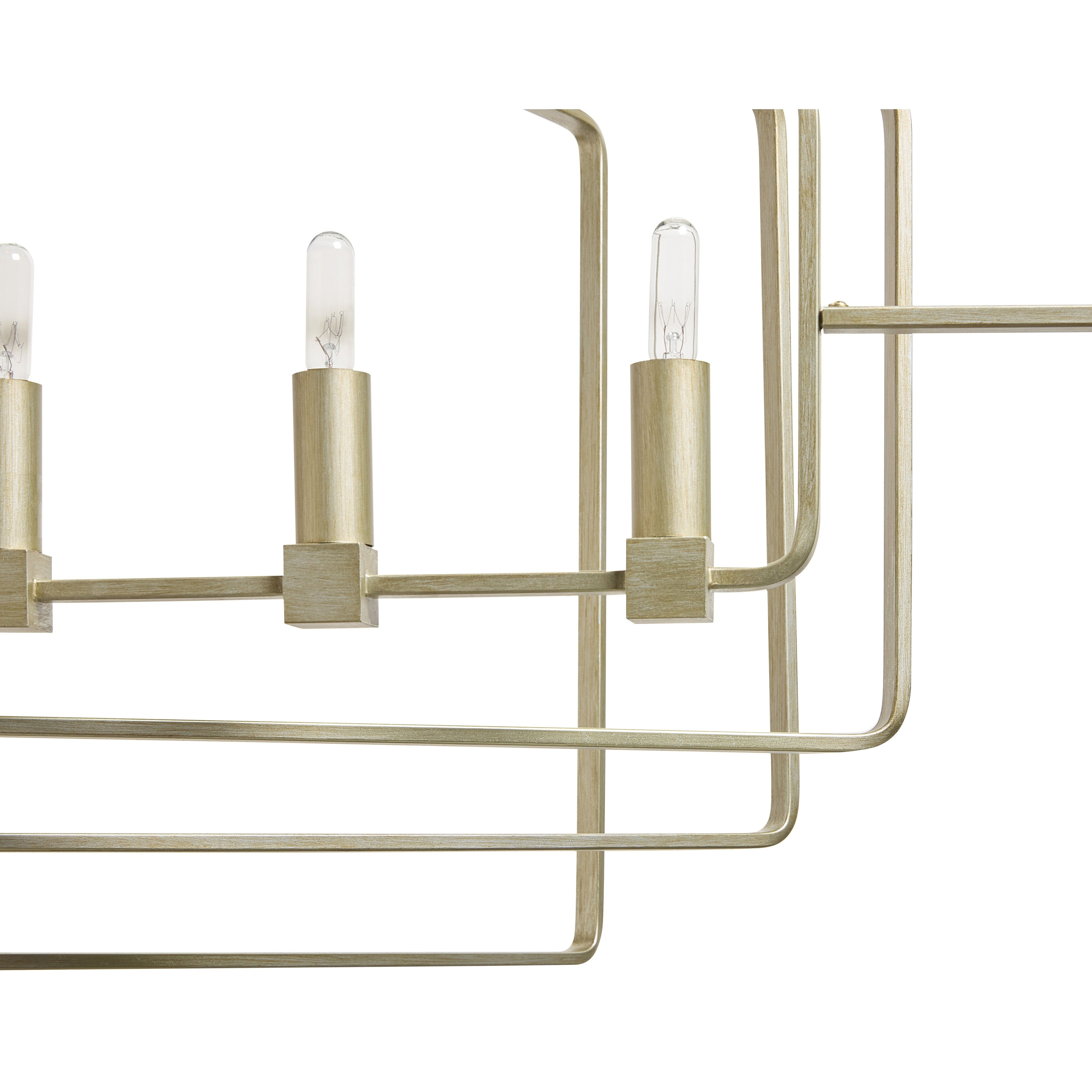 With an unconventional design that takes inspiration from candelabras, this modern chandelier will illuminate any space with style. Features a geometrical metal frame in a champagne gold finish.