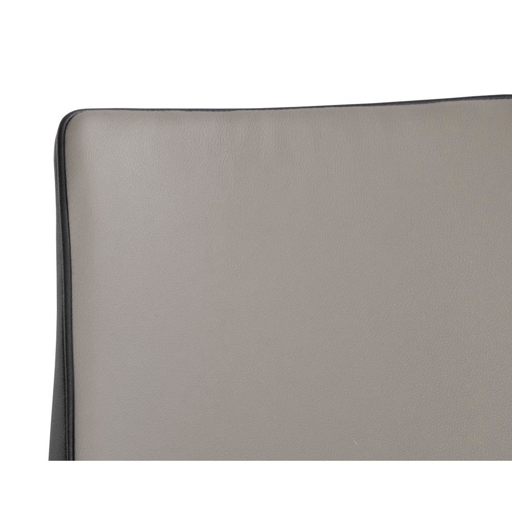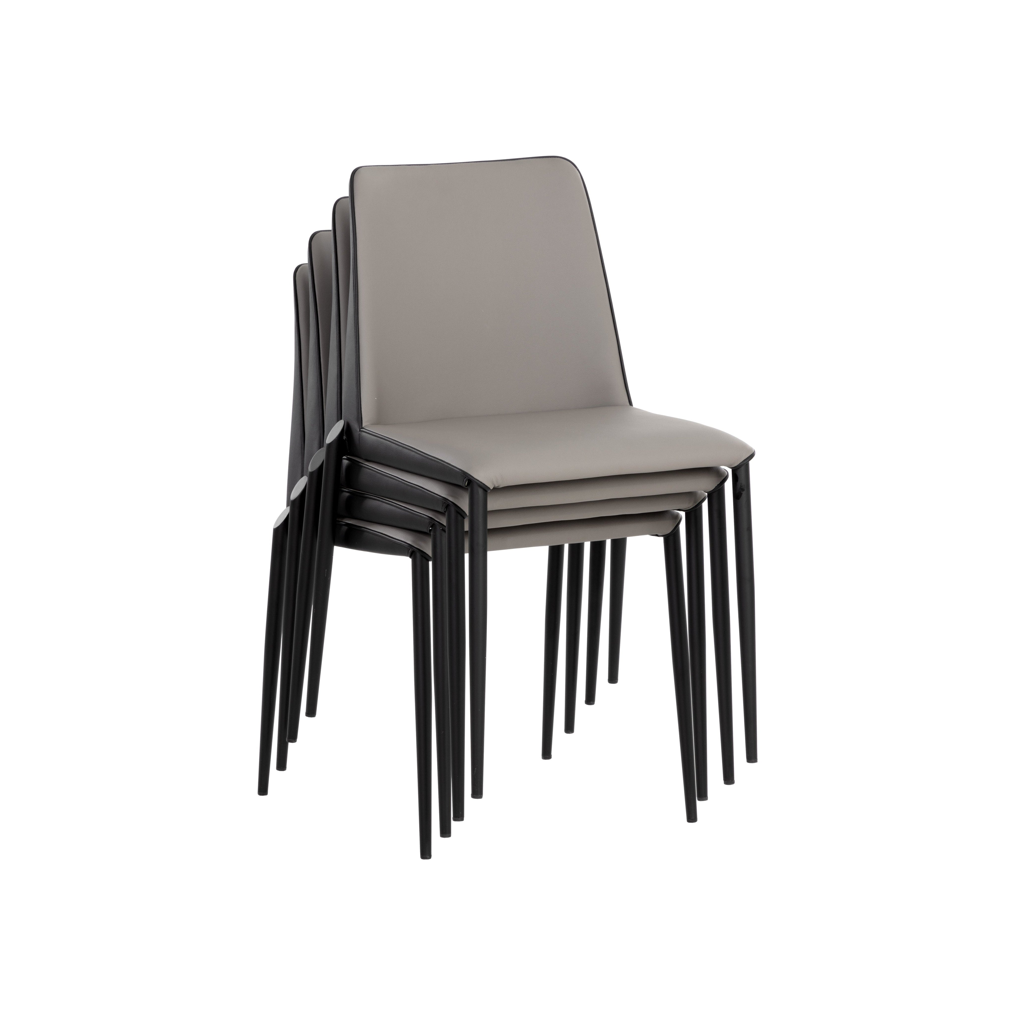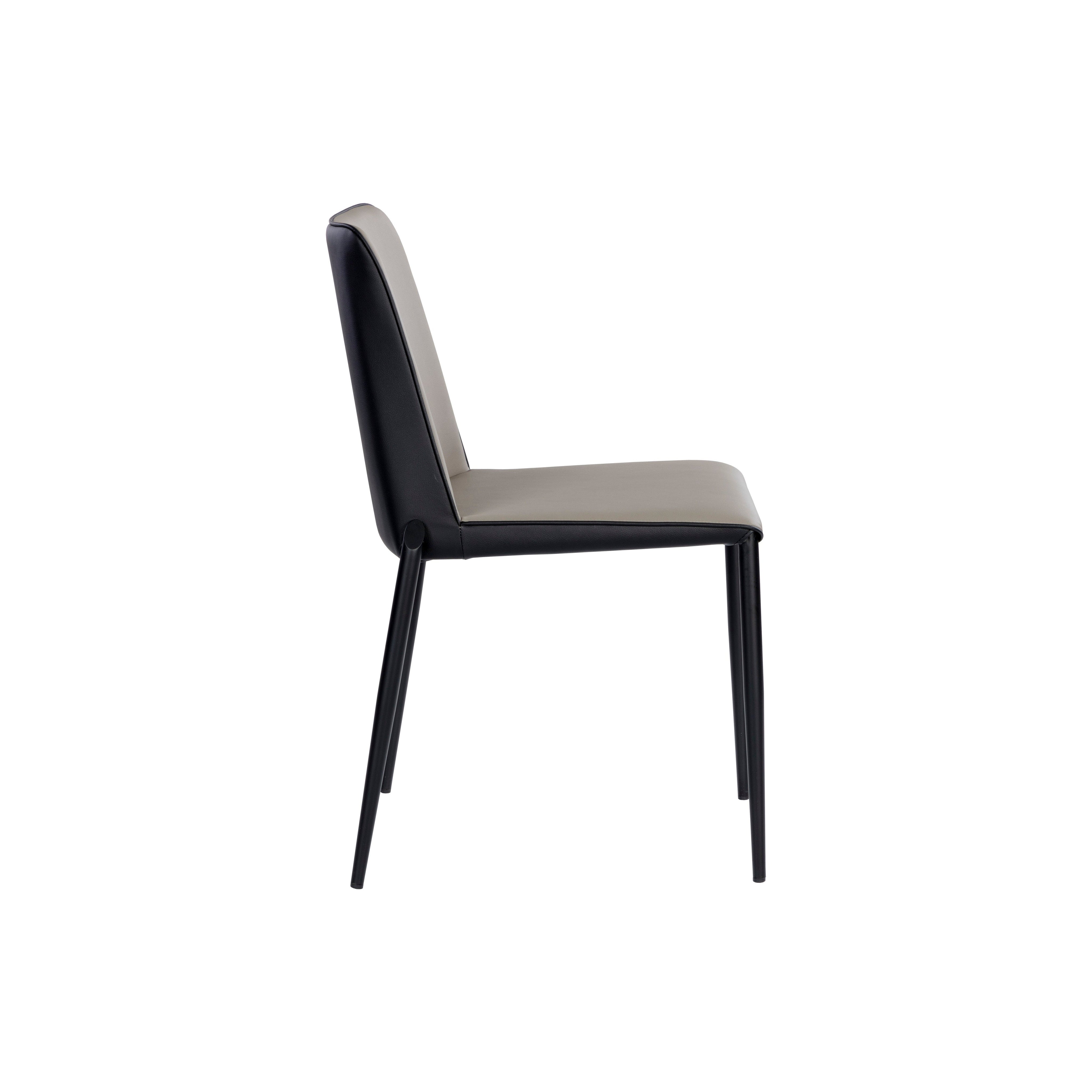 This modern, stackable dining chair offers a minimalist silhouette perfect for small urban settings. Features a comfortable seat in dillon stratus faux leather with a contrasting seat back in dillon black faux leather. Completed with powder-coated steel legs in black.