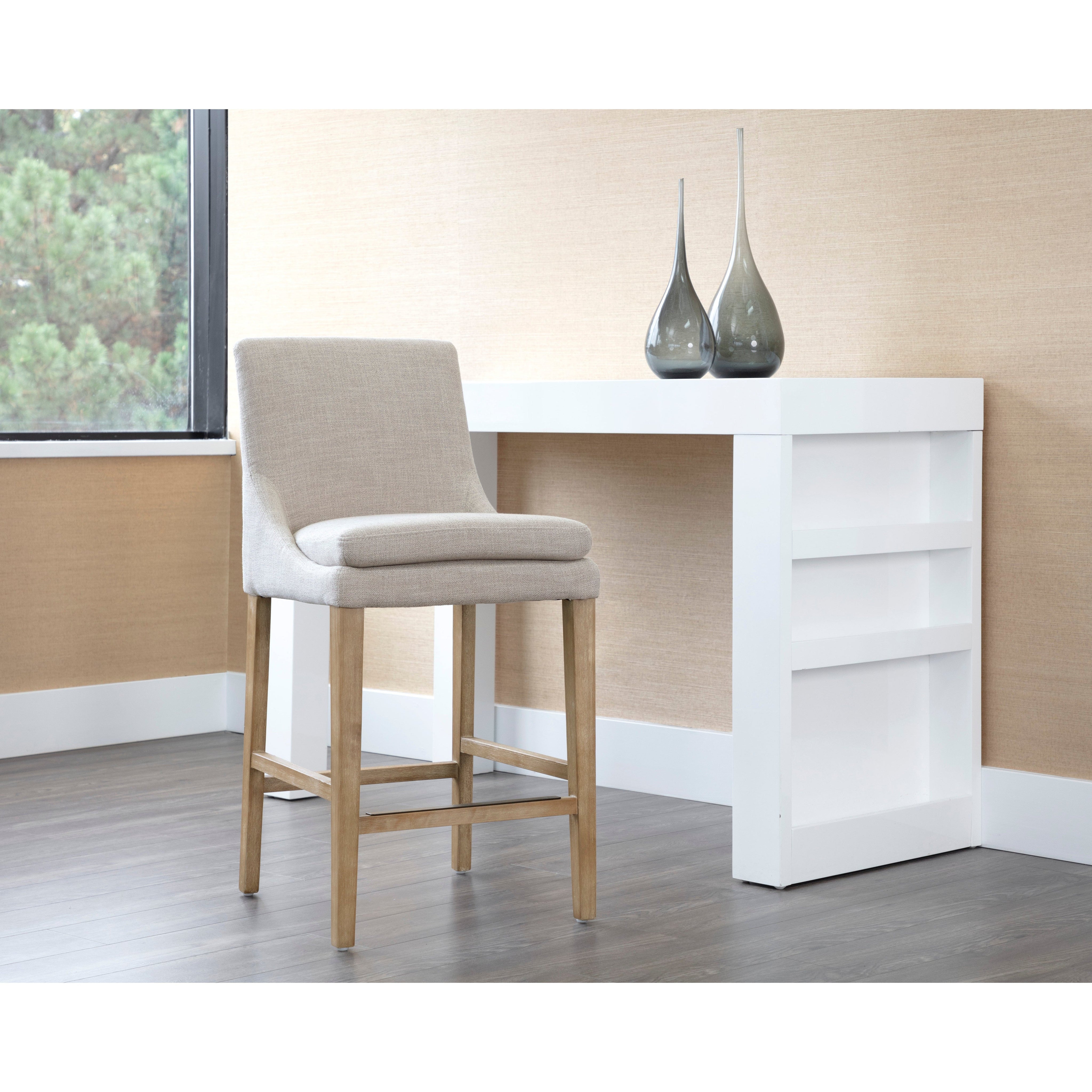 With a beautiful uniform design, this classic counter stool guarantees a comfortable seating experience. Stocked in effie flax fabric and complemented with light brown solid birch wood legs.