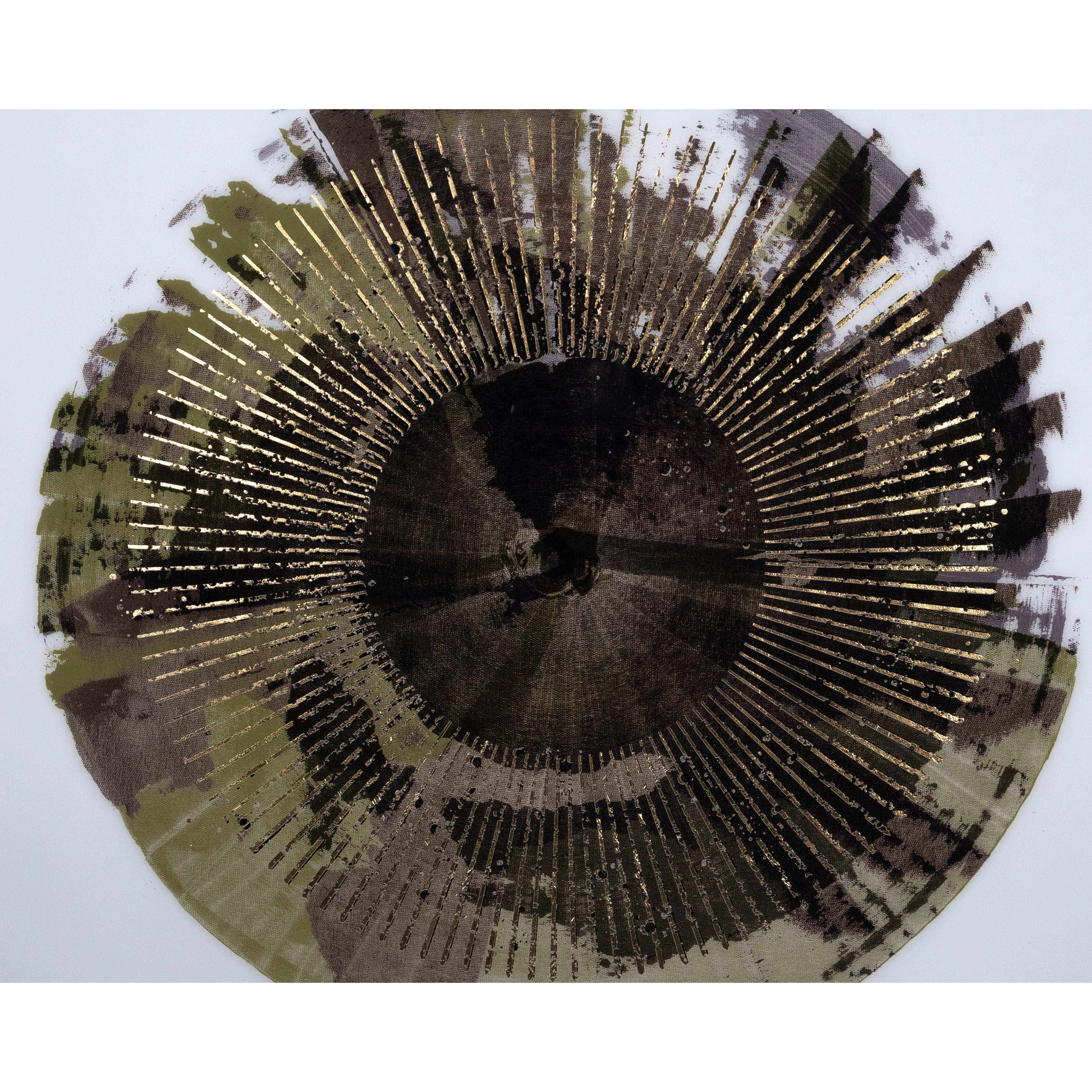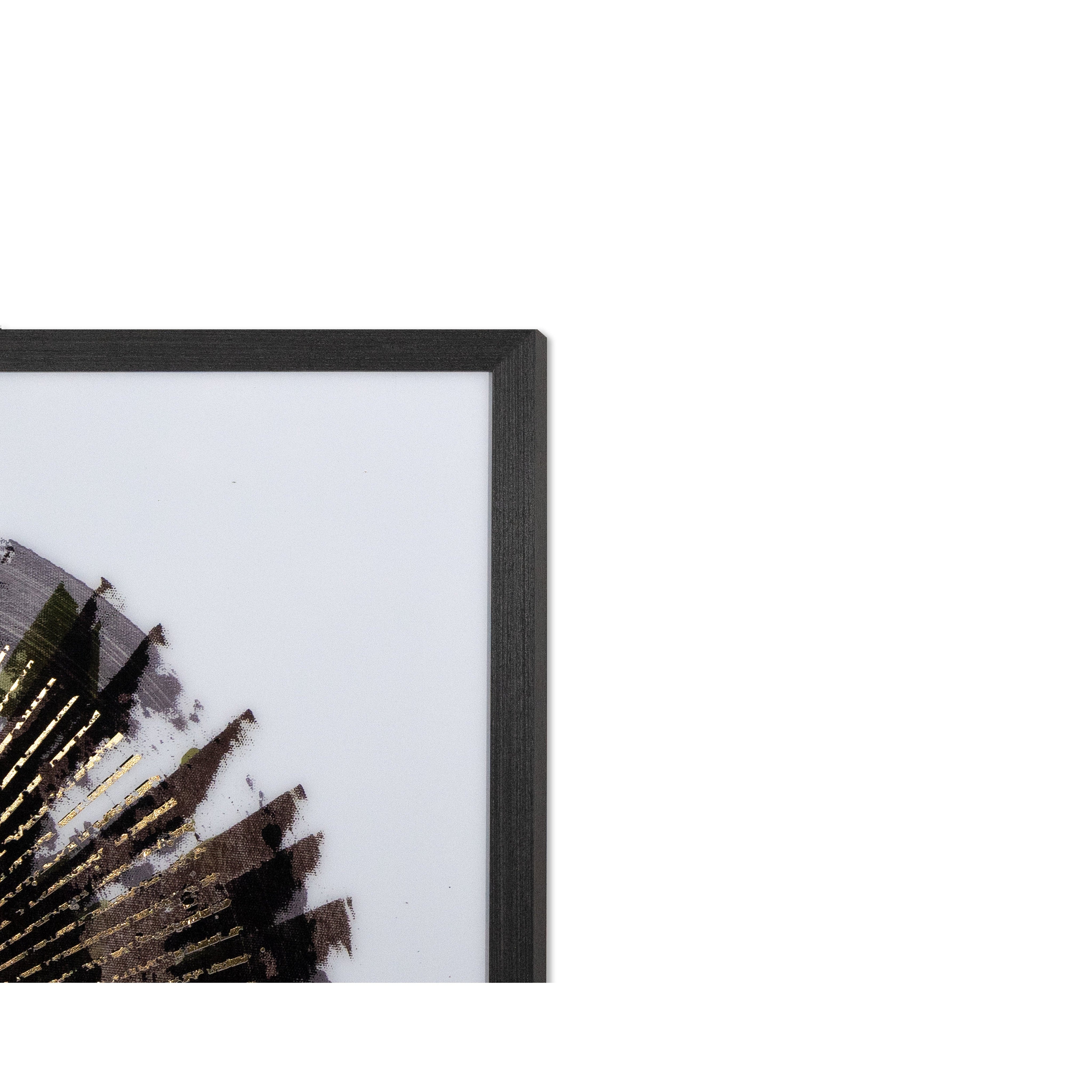 An abstract artwork that leaves room for imagination, this piece is from the Luxe Art collection. With hues of green that are complemented with gold streaks, this reverse printed acrylic piece features gold leaf accents and is completed with a brushed solid wood frame in charcoal. Due to the reflective nature of acrylic and gold leaf, images on site may not capture the artisanal characteristics precisely.