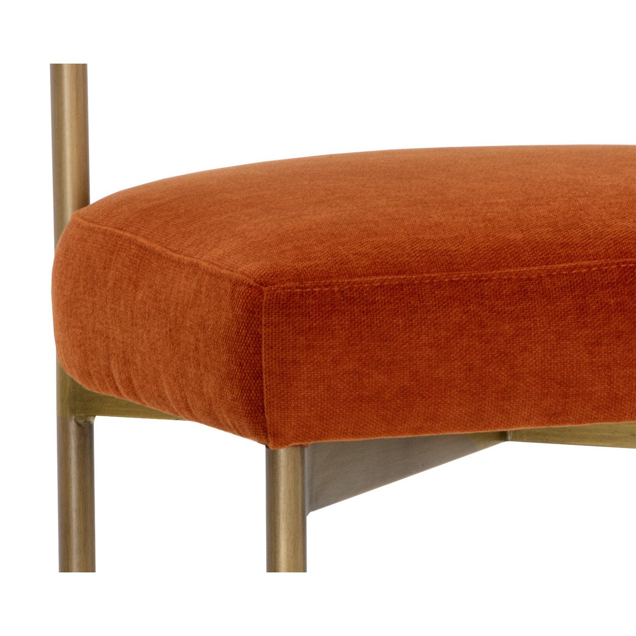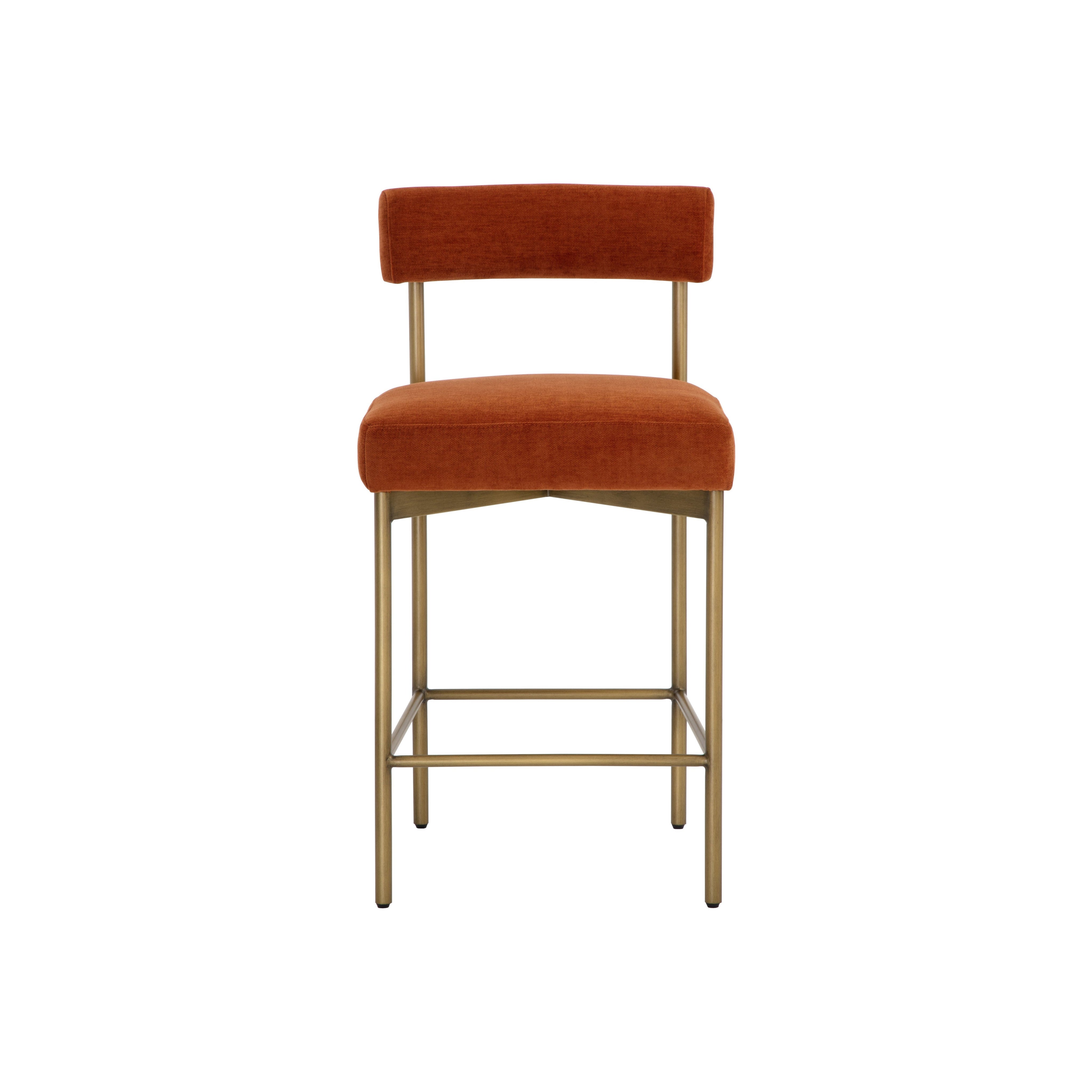 Exude modern style with this open back counter stool. Stocked in danny rust fabric with an antique brass steel frame.