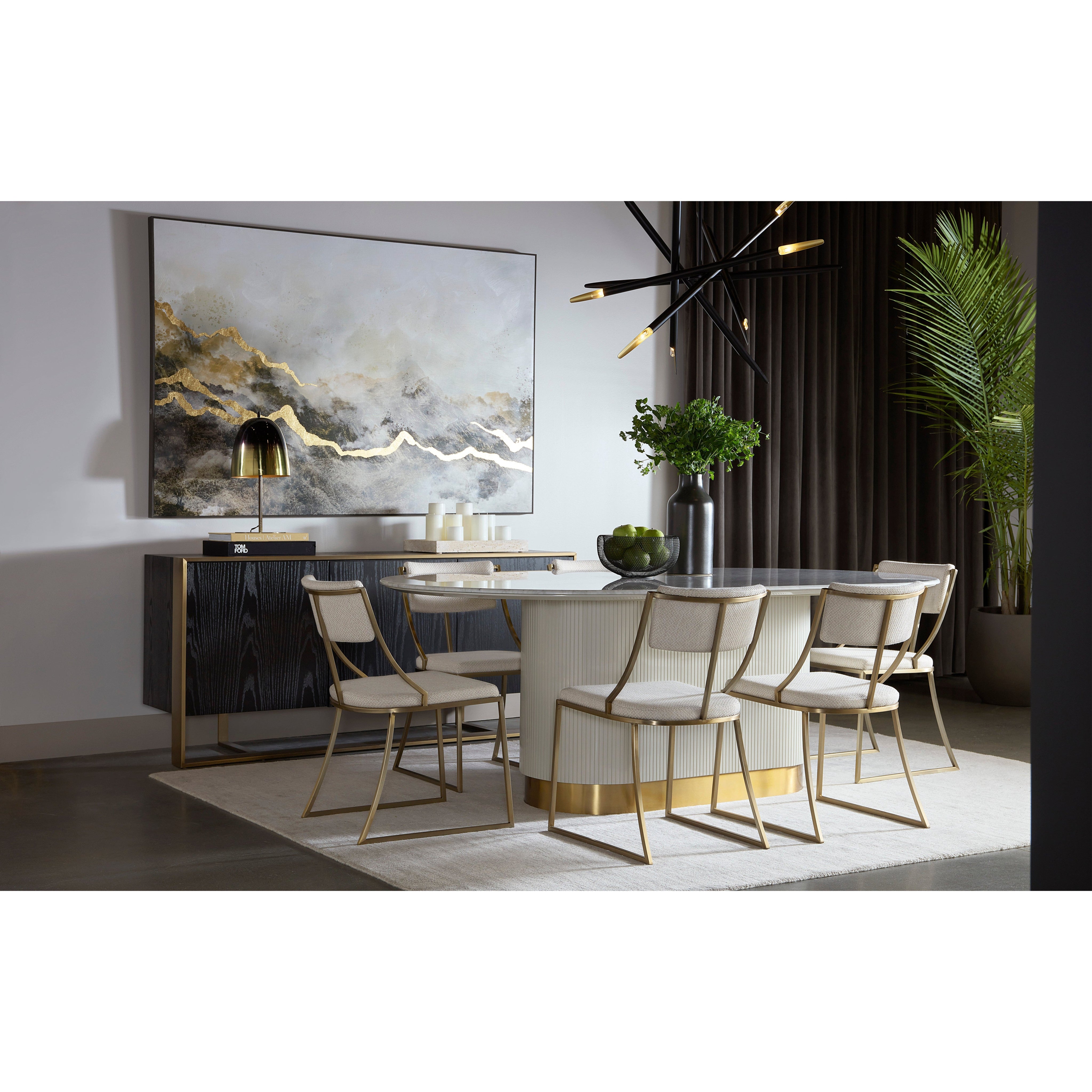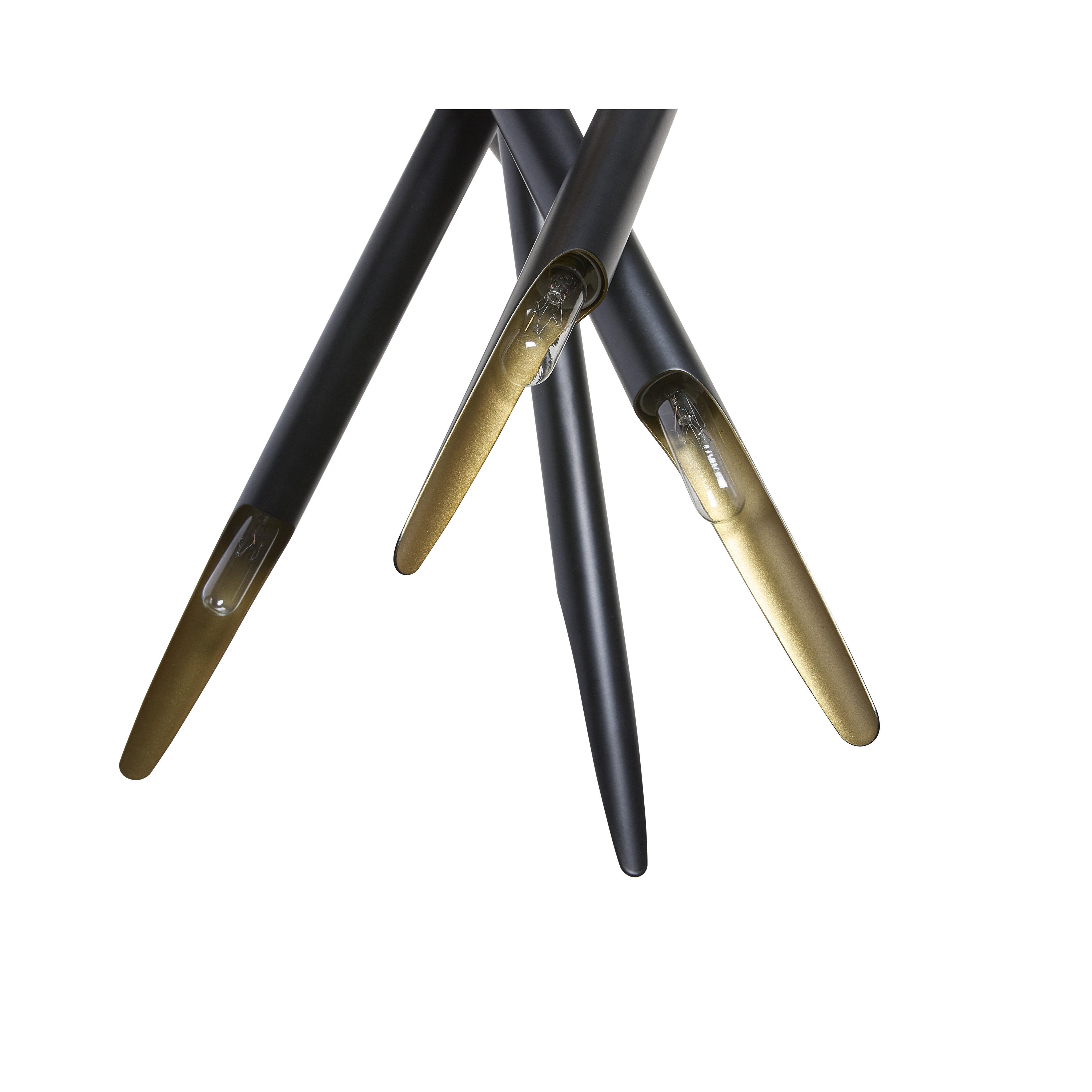 Taking inspiration from mid-century modern design, this fascinating chandelier will add a unique touch to any space. Crafted with a matte black metal exterior frame with accenting gold finish in the interior.