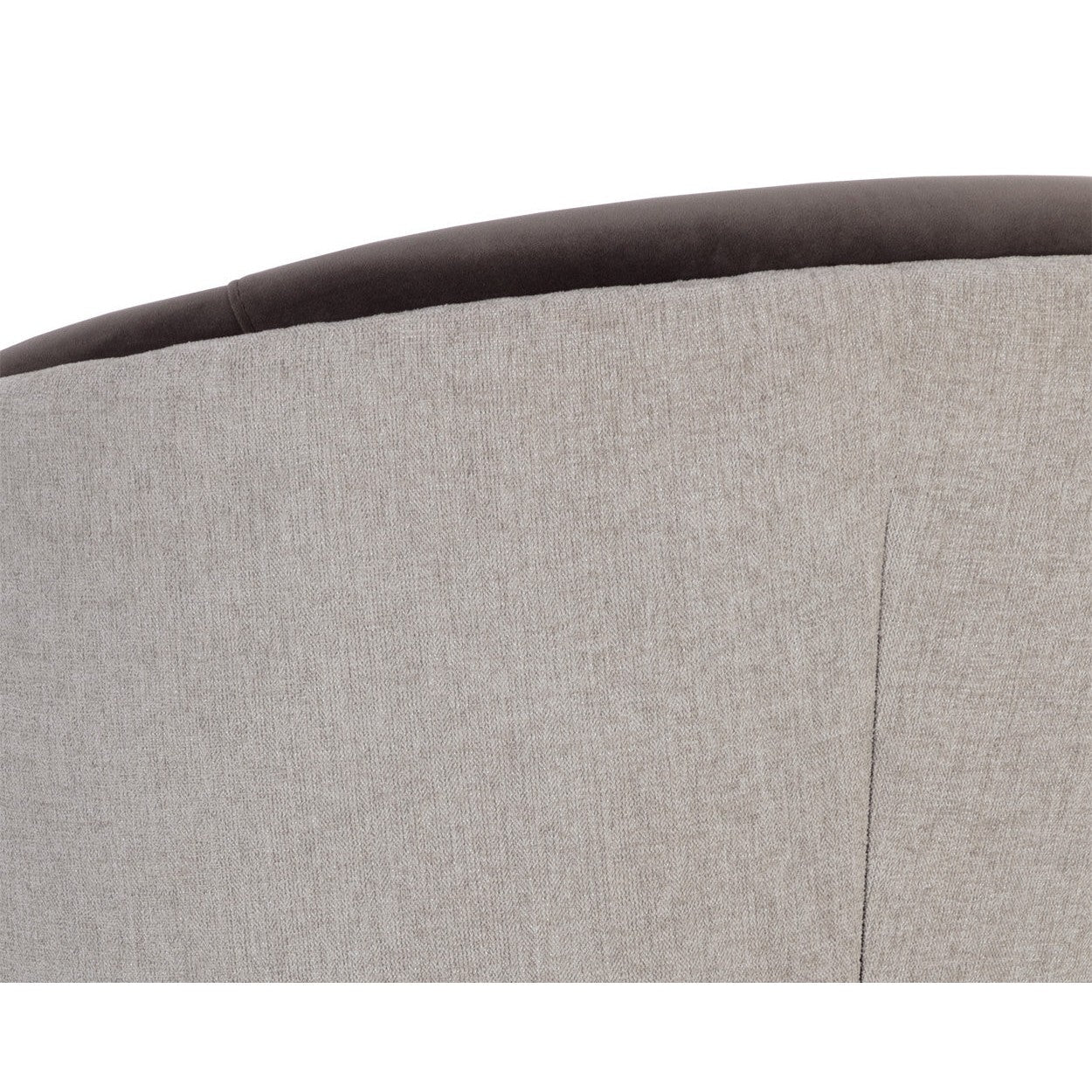 With an alluring barrel back seatback, this stunning dining chair will add a touch of comfort to any space. Features an upholstered exterior and seat in ernst sandstone fabric, and completed with coordinating meg ash fabric on the interior seat and legs.