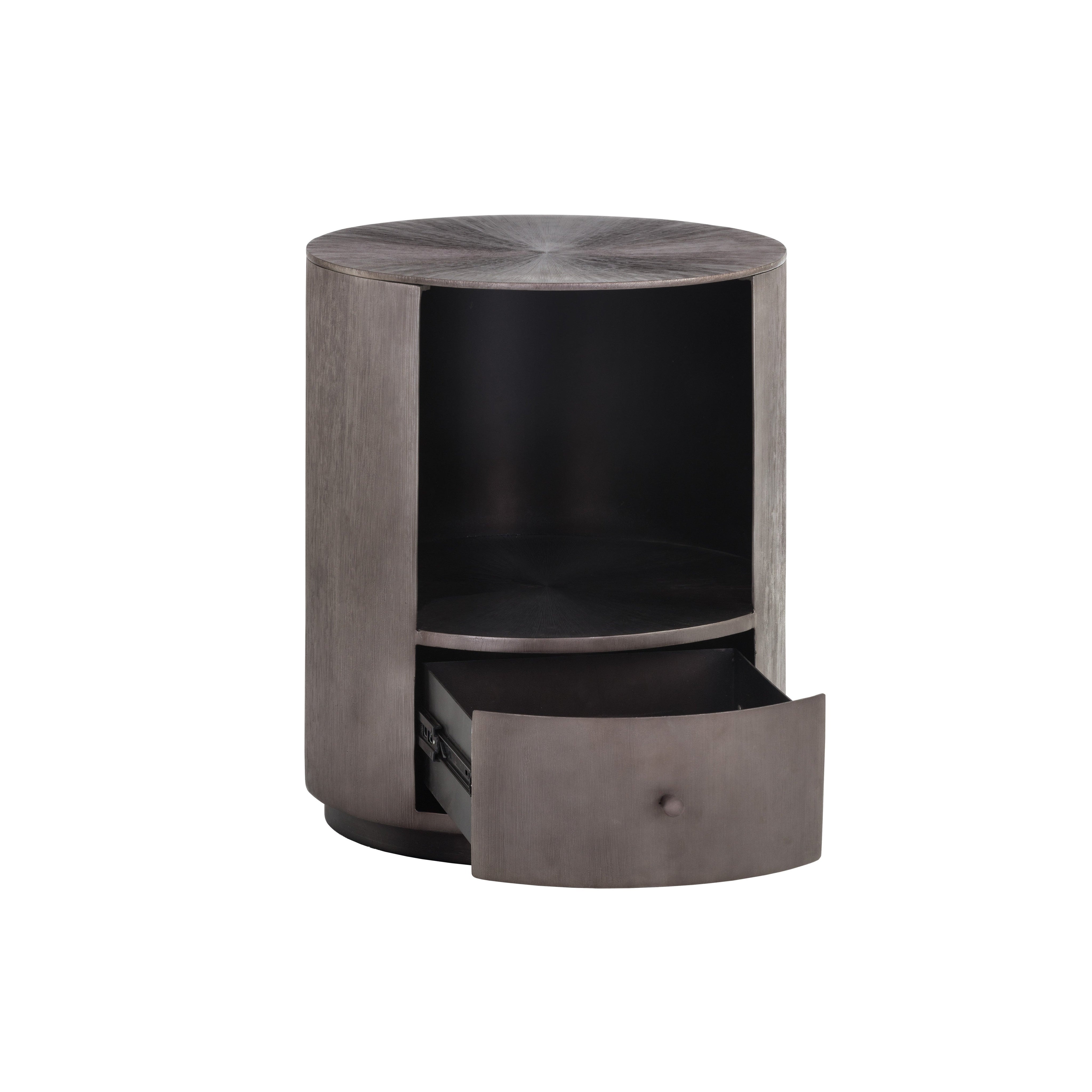 Elevate your bedroom retreat with this intriguing nightstand. A large shelf and drawer provide ample storage. Features a hand-etched and hand-hammered iron frame with a bronzed gunmetal finish. Made in India. With refined craftsmanship, this design was brought to life by skilled local artisans. By nature, these materials develop unique imperfections such as fissures, markings and colour variations for a truly one-of-a-kind piece.
