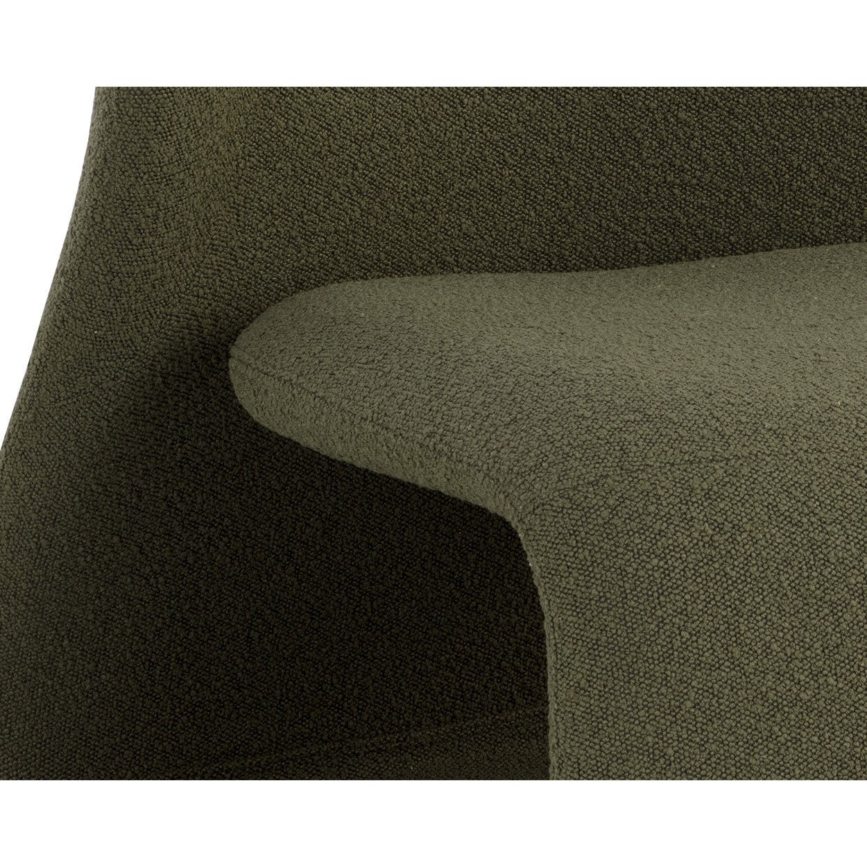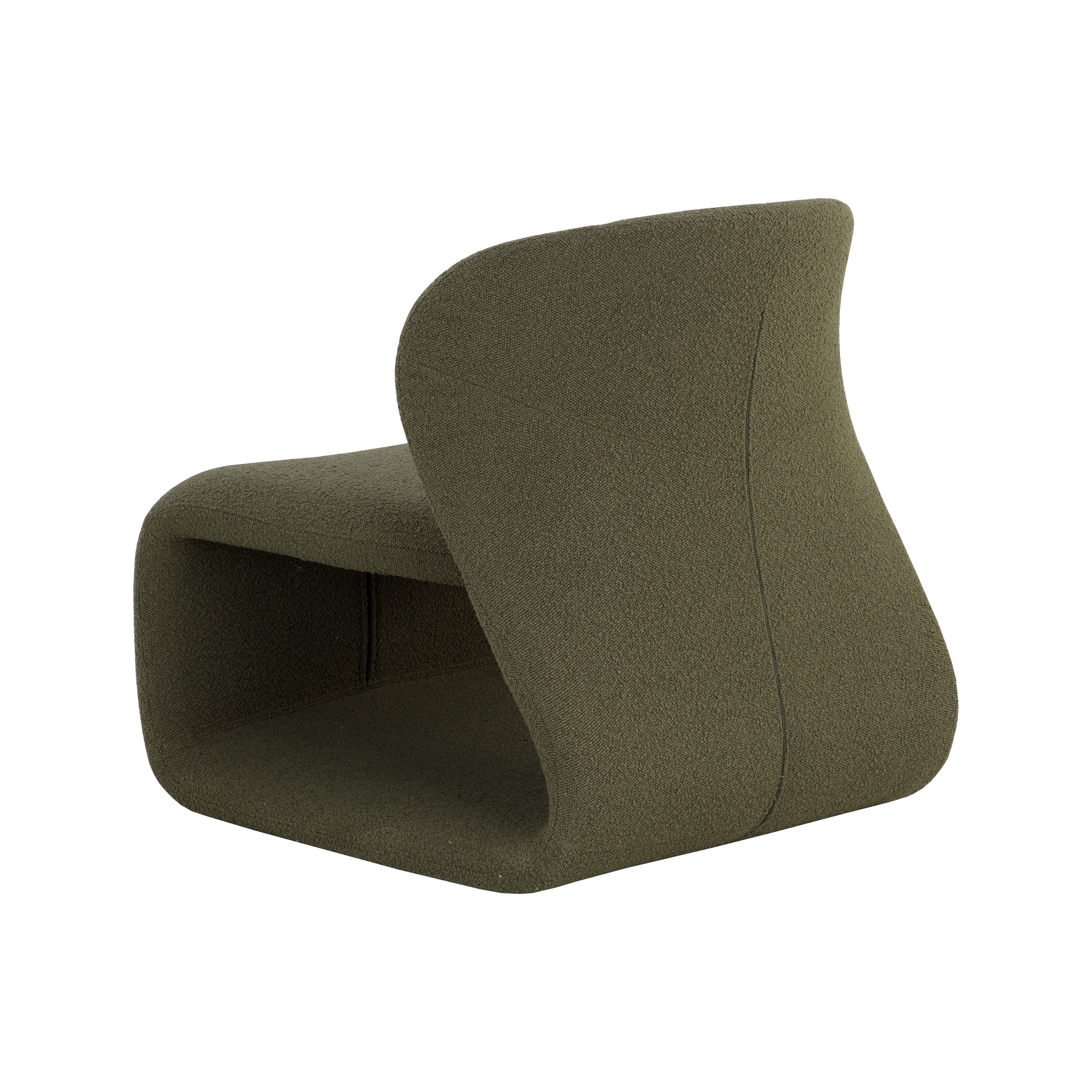 The Sophiene Lounge Chair is uniquely sculpted for exceptional comfort. Fully upholstered in copenhagen olive boucle fabric for a cozy accent to any contemporary living space.