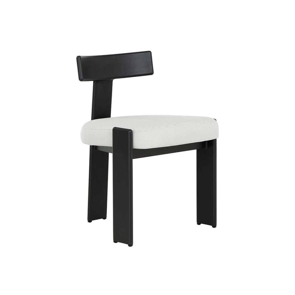 The Titan Dining Armchair is a masterful re-iteration of classic modern design. Palazzo cream performance fabric and a striking aluminum frame come together to create an unforgettable impression.
