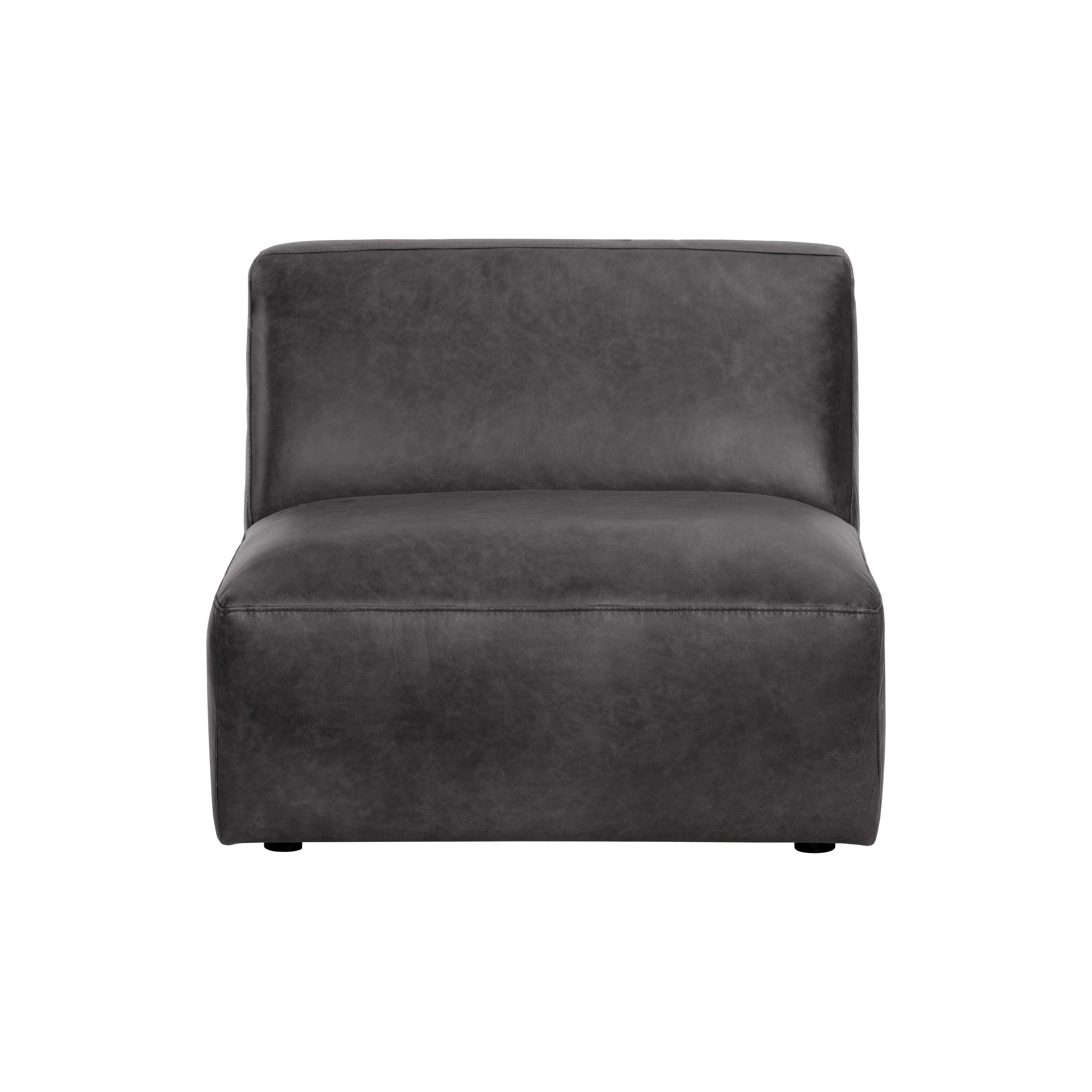 A modular armless chair that was designed to express comfort and creativity. Available in marseille black or camel leather. This piece can be sourced in multiples and with the coordinating Watson corner chair and ottoman. A stylish and comfortable addition to large and small living spaces. Handle with Care: This design has been crafted with 100% buffalo leather. Leather is a natural material; as such, colour variations, markings, wrinkles, grooves and light scratches are acceptable and appreciated characteristics. No two pieces are alike. Visit our Product Care page for more information on how to ensure the lasting beauty of this piece.