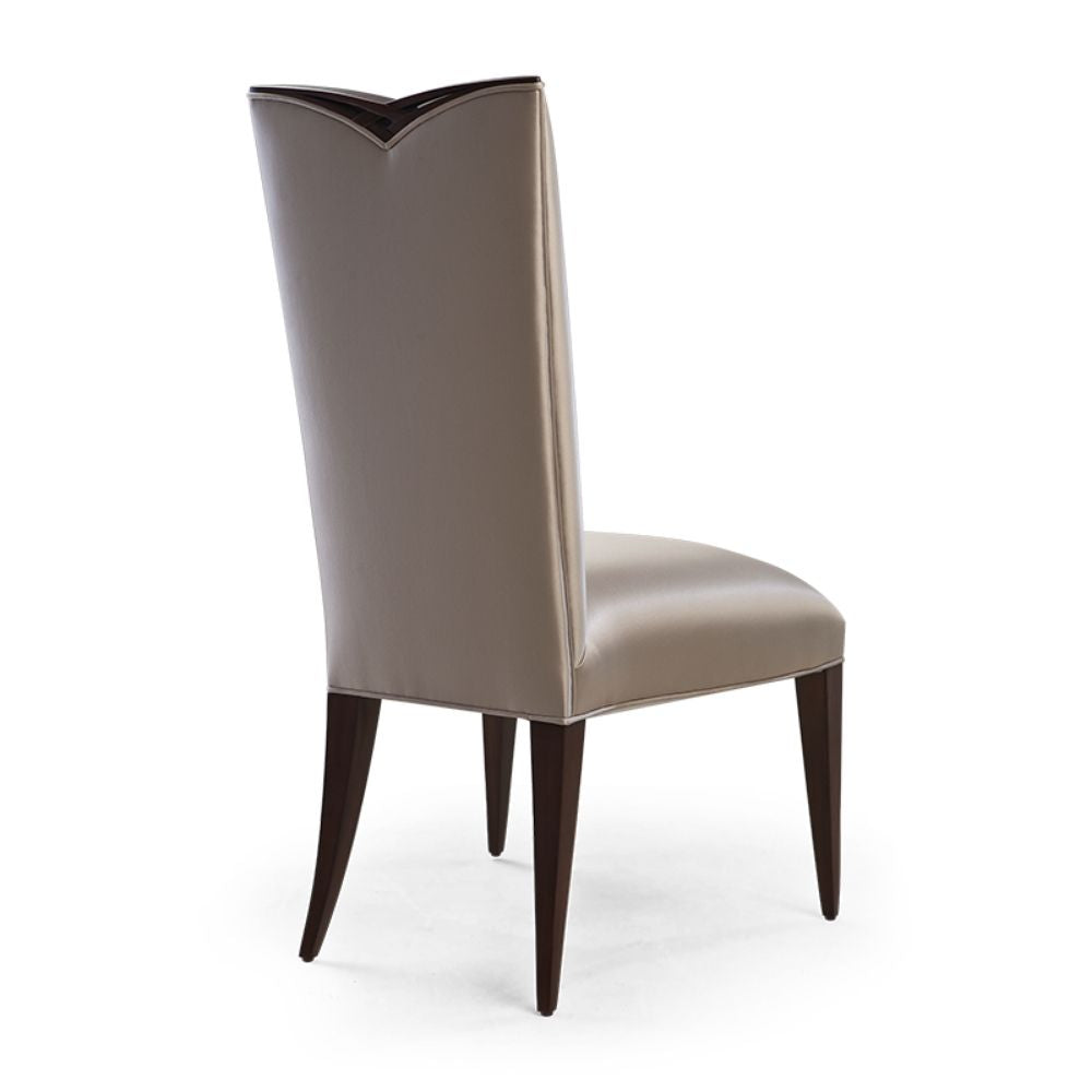 Beautifully simple straight backed VALESKA DINING CHAIR with slightly sabre back legs and keyhole hand carved detailing for a contemporary mood.
